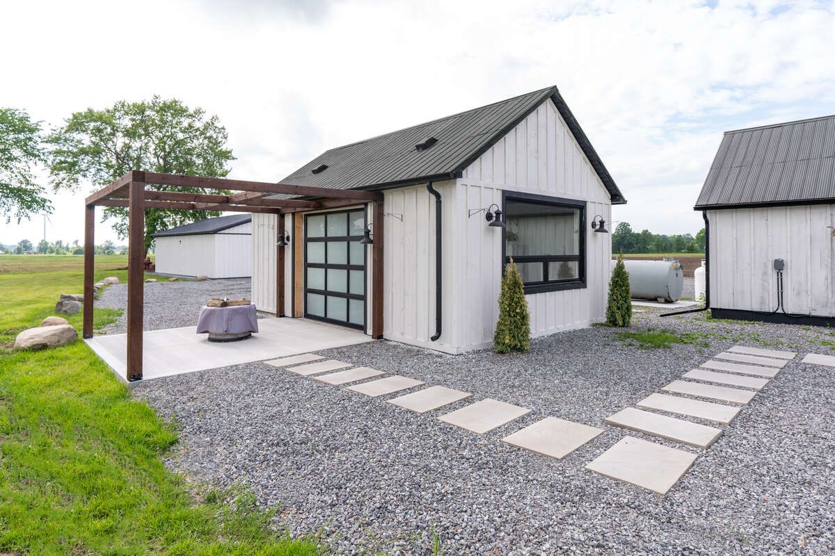 *** visit the realtor website for further information about this listing *** welcome to a rare modern farmhouse estate on 4. 5 fully approved acres, where refined design meets estate-scale versatility. Completely rebuilt and move-in ready, this private retreat offers a brand-new custom home, new 3-car garage, resort-style cabana, renovated legal guest house with loft, and an impressive approx. 6,500 sq ft two-storey post-and-beam barn that is insulated and heated, with concrete floors - each structure fully permitted and professionally finished. The main residence showcases bold black board-and-batten siding, modern rooflines, and oversized architectural windows. Inside, a vaulted great room anchors the home, seamlessly blending kitchen, dining, and living spaces for effortless entertaining. A flexible foyer/flex room, dedicated office/den, full laundry, and powder room enhance everyday function. The private bedroom wing features a serene primary suite with walk-in closet and spa-inspired 5-piece ensuite, plus a second bedroom with its own full ensuite. A sunlit rear deck overlooks peaceful greenery and leads to a picturesque bean-shaped pond with dock - an ideal setting for outdoor dining, fireside evenings, or quiet reflection. Designed for a true live-work lifestyle, the guest house and barn provide exceptional flexibility for studios, offices, creative work, consulting, storage, or income-generating uses (buyer to verify permitted uses). With acres to spread out, the property offers rare separation between living, working, and entertaining spaces. Additional highlights include a premium asphalt driveway, fully fenced grounds with custom gated entry, security monitoring, and upgraded utilities including a new 200 amp service pole. Ideally located minutes to port colborne and wainfleet, with easy access to beaches, golf, marinas, and under two hours from the gta, this estate delivers privacy, luxury, and opportunity - without compromise.