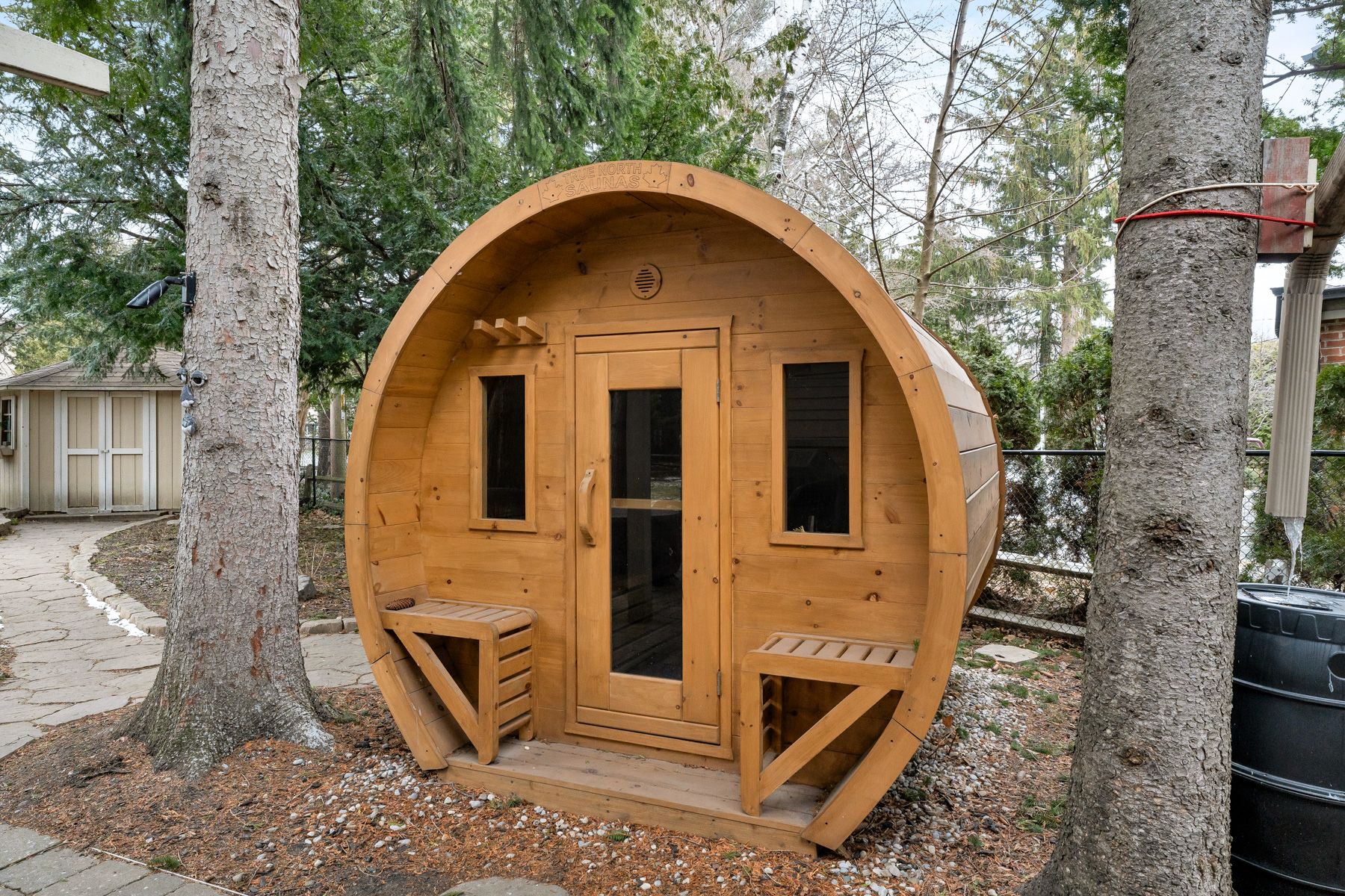 • Private, tree-lined backyard with perennial gardens and a Cedar Sauna.
