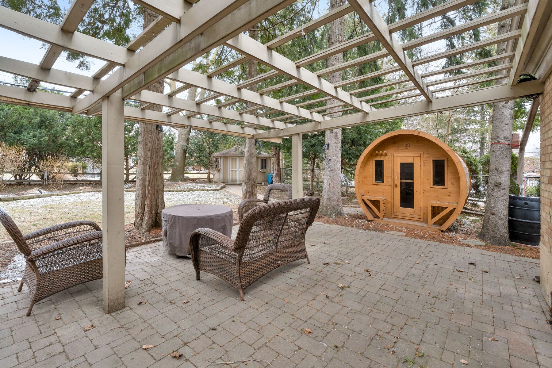 The best homes save their finest surprises for those who look closer. Like a gem just waiting to be uncovered, this lovely home on guthrie lane opens up, layer by layer, to showcase over 3000 sq ft of total living space. With a david small designed rear addition, this home honours the original front facing aesthetic of the neighbourhood, while ensuring you have the space & functionality of a modern 4 bed, 4 bath home. Living here is bliss, far from the pace of everyday life. Being situation on a court, allows special privileges like being able to watch children playstreet hockey while you watch from the comfort of large living room windows. Or turning onto the lane, & having your home situated in the centre, looking back at you like a framed work of art. Outside, a 124ft (rear width)pie-shaped lot encloses a private, tree-lined backyard with perennial gardens, inground sprinkler systems, landscape lighting & cabana shed. An interlocking patio with pergola leads to a spectacular cedar sauna, a perfect outdoor retreat. An entertainers kitchen by mill street kitchens impresses with quality cabinetry, stainless appliances, updated countertops (2022), built-in desk, pantry, & oversized island. The living area features a gas log fireplace, pot lights & a large south facing window. Updated designer picked lighting fixtures grace the home throughout. The primary bedroom offers a brilliant vaulted ceiling with vented skylight ductless ac/heat unit (2024) & heated floors, while hydronic radiant heating warms the basement (2008). Major updates include a high-efficiency furnace with erv/ condensing boiler & humidifier (2020), owned tankless water heater (2020), 200amp, & central vacu throughout. Bonus features: laundry chute, huge mud room, & pocket doors. You can enjoy your home with the comfort of knowing that your neighbourhood is one for the ages. The timeless quality of a place where community still matters. Applewood acres is one of those places. Come & enjoy!