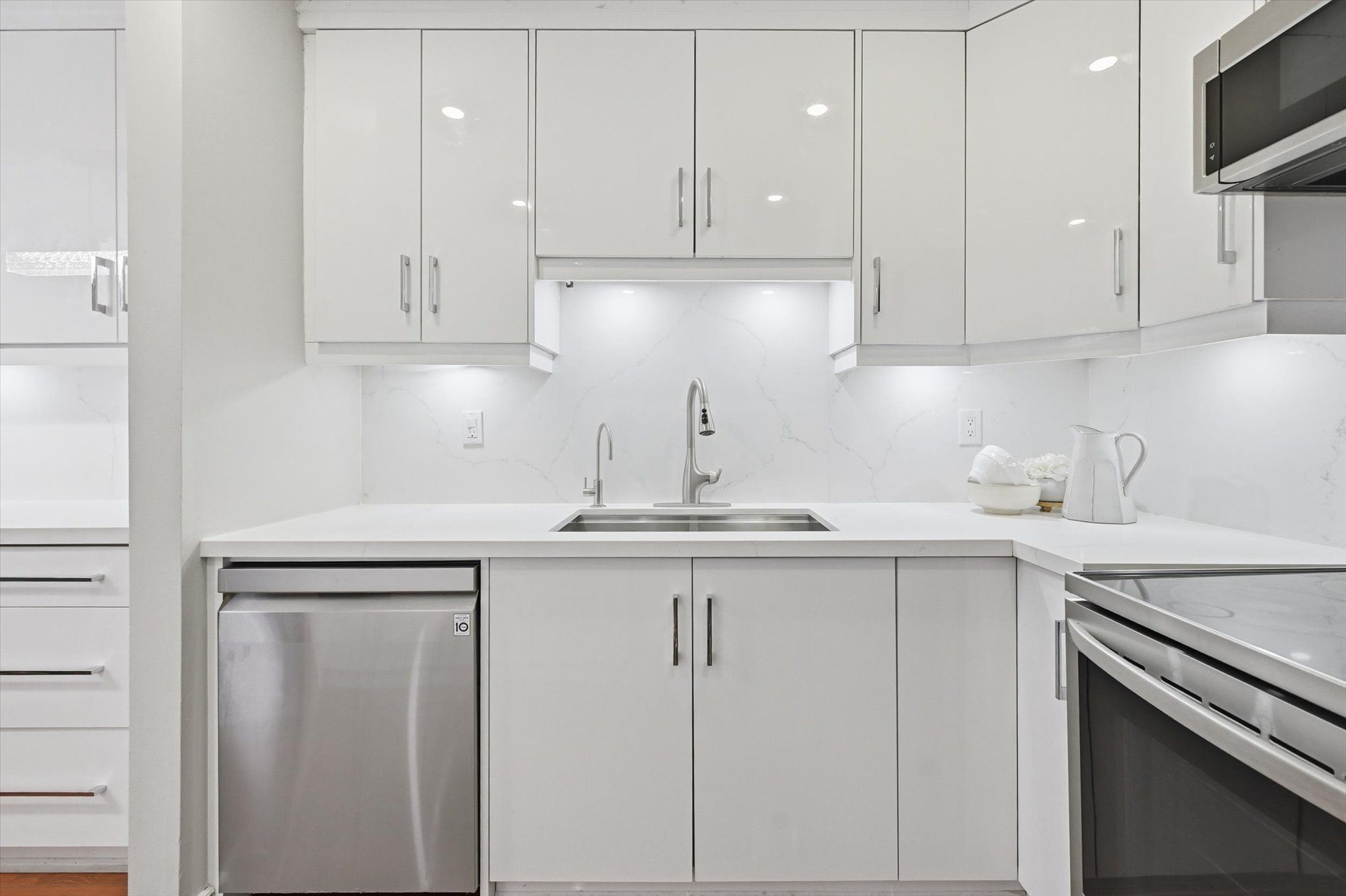 • Updated kitchen with new stainless steel appliances and ample counter space.