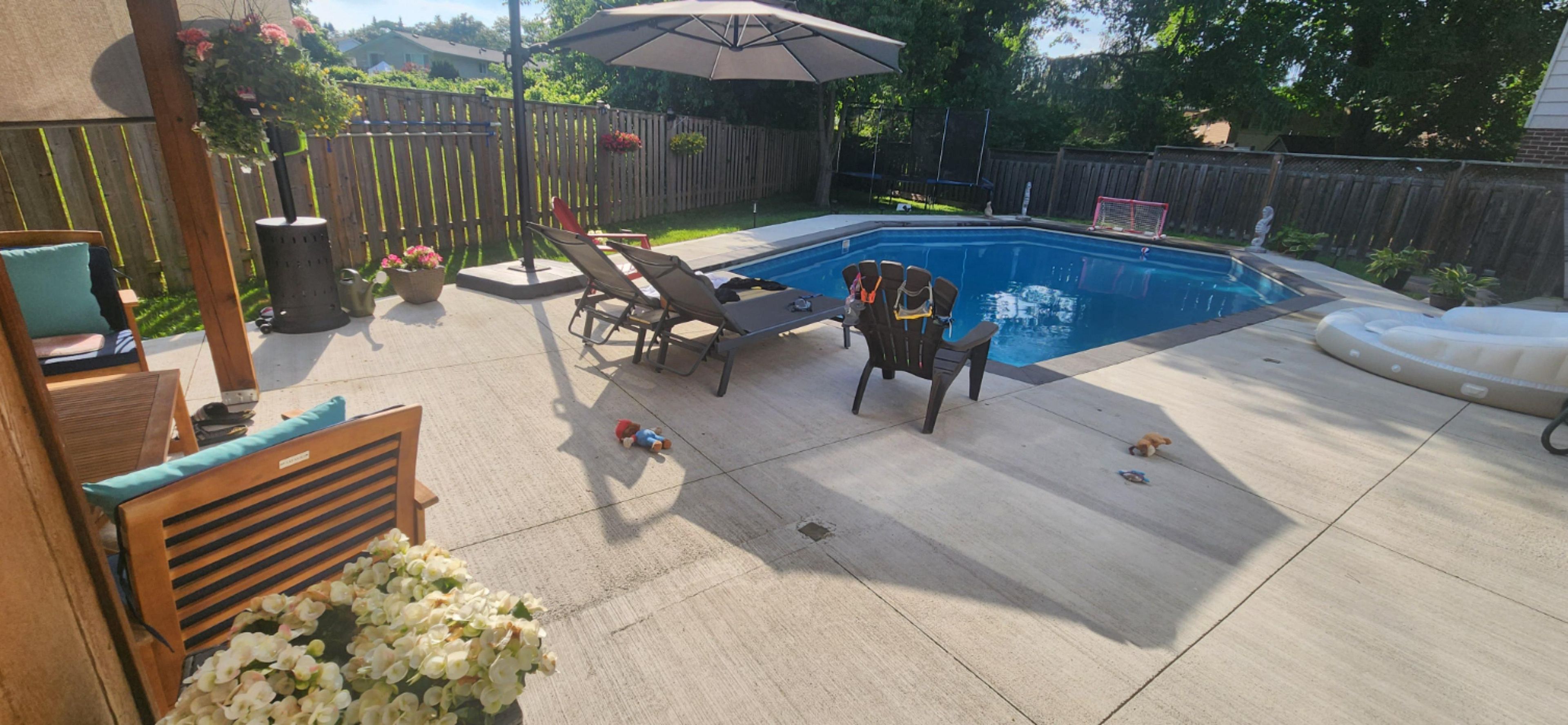 • Backyard oasis with saltwater pool and landscaped area for recreation.