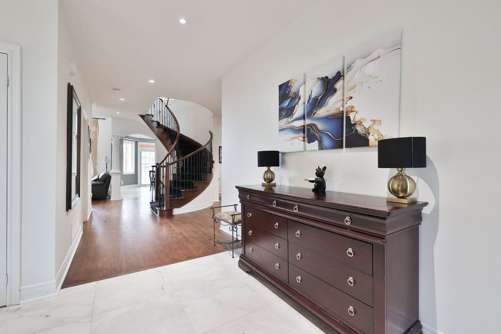 • Upgraded kitchen opens to family room with impressive two-storey ceiling.