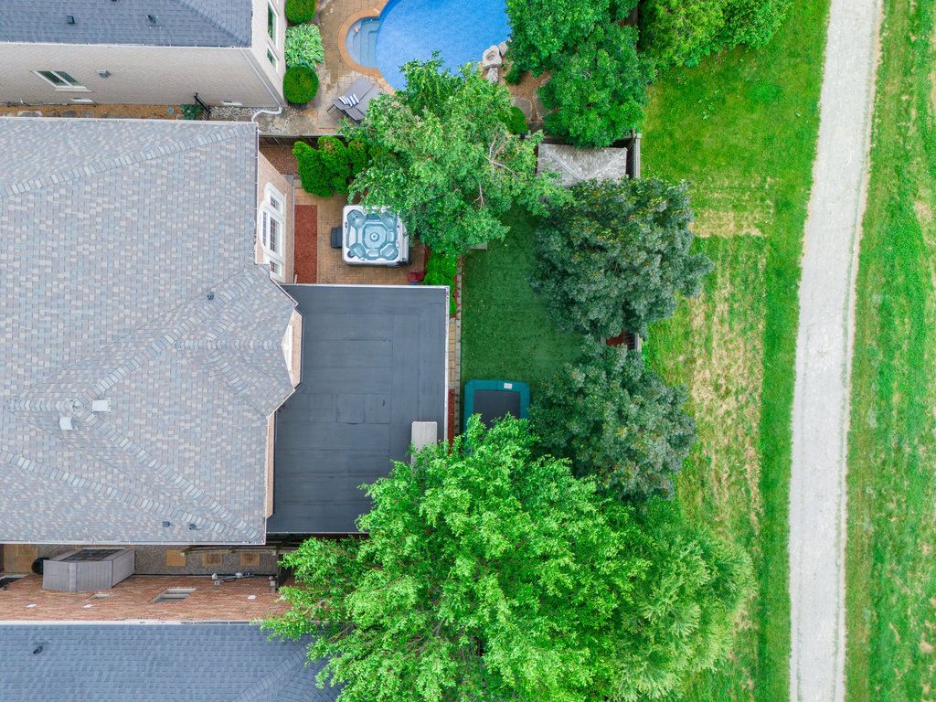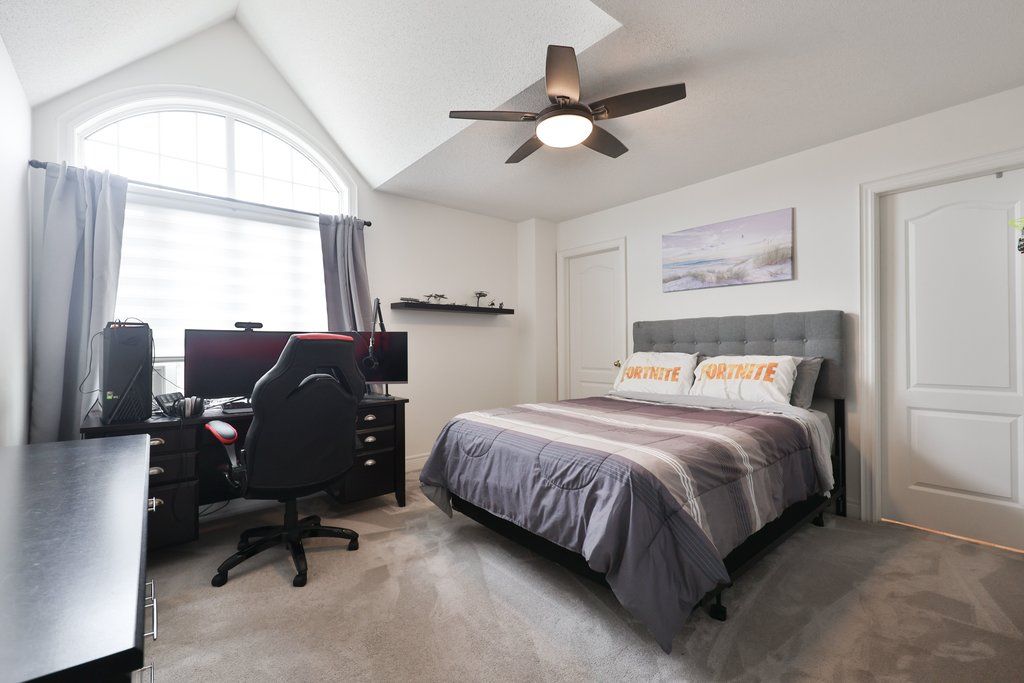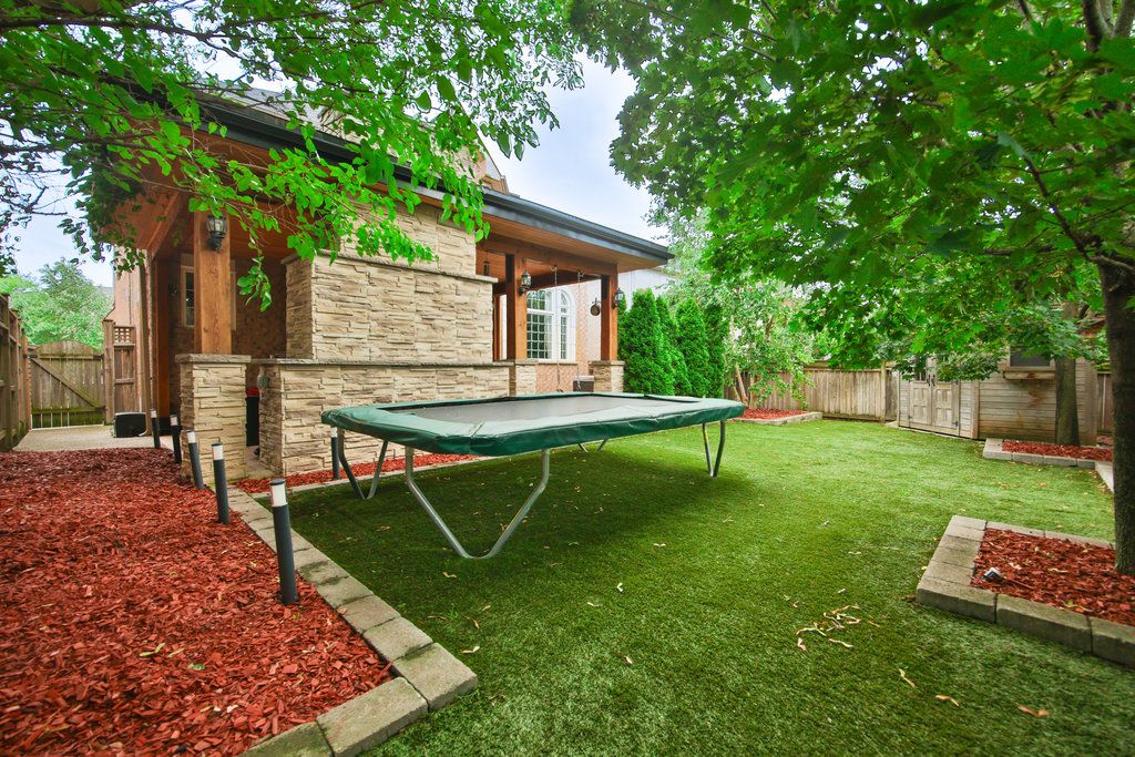 Set on a premium 50' lot backing onto tranquil greenspace, this exceptional 4 bedroom residence offers a rare blend of privacy, elegance and modern comfort. The backyard is a true retreat, thoughtfully designed with artificial turf, a hot tub and a custom covered porch featuring a fireplace and television - perfect for relaxing outdoor enjoyment. The main level showcases a highly desirable layout, highlighted by a beautifully upgraded kitchen that seamlessly opens to the family room with its impressive 2-storey soaring ceiling. Additional principal spaces include a refined main floor den, a vaulted front living room with custom built-ins and a spacious, separate dining room ideal for entertaining. Upstairs, the luxurious primary suite is accessed through double doors and features dual walk-in closets, a cozy sitting area and a fully renovated 5-piece ensuite (2023) complete with a freestanding tub and glass-enclosed walk-in shower. The second bedroom enjoys its own walk-in closet and private 4-piece ensuite, while the third and fourth bedrooms share a comfortable "jack and jill" bathroom. The fully finished lower level extends the living space with upgraded vinyl flooring, pot lights, a bathroom, a recreation/games area, gym space and den that could possibly be used as a fifth bedroom. Additional upgrades include refinished hardwood flooring, neutral broadloom, crown moulding, a 2-sided gas fireplace, updated furnace and a/c, new garage doors and wiring for 2 evs in the garage. With outstanding curb appeal, a covered front entry, professional landscaping and upgraded hardscaping, this home is ideally located within walking distance to schools, parks, shopping and scenic trails.