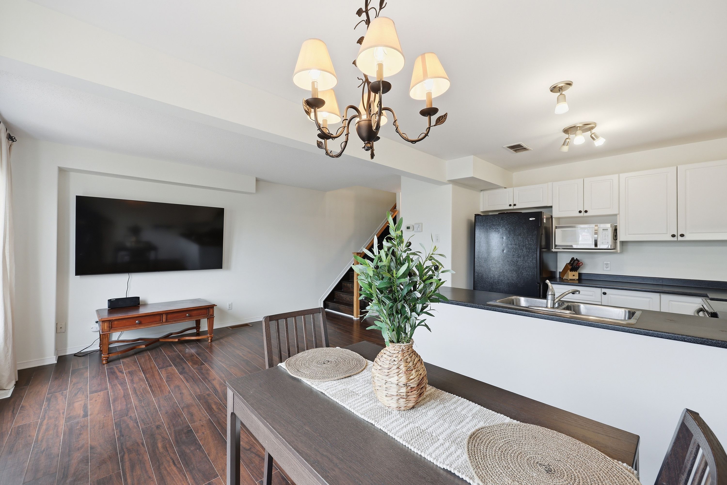 2189 swanfield street is a well-maintained 3 bedroom, 2 bathroom townhouse, ideally located in kingston's west end. The bright and spacious main floor offers an inviting open layout with easy access to the 2-tiered back deck, perfect for modern living and entertaining. This carpet-free home features durable vinyl and laminate flooring throughout, complemented by finished wood stairs on both levels. Upstairs, you'll find three generous bedrooms, including an oversized primary suite complete with a vaulted ceiling, walk-in closet, and a convenient access to the main bath. The lower level provides a large finished rec room with access to the laundry, storage, and mechanical rooms. Additional highlights include a single-car garage with inside entry, a fully fenced backyard, and a welcoming covered front porch. This property is offers easy access to centennial drive, taylor-kidd boulevard, the rio can shopping centre, and is close to all amenities.