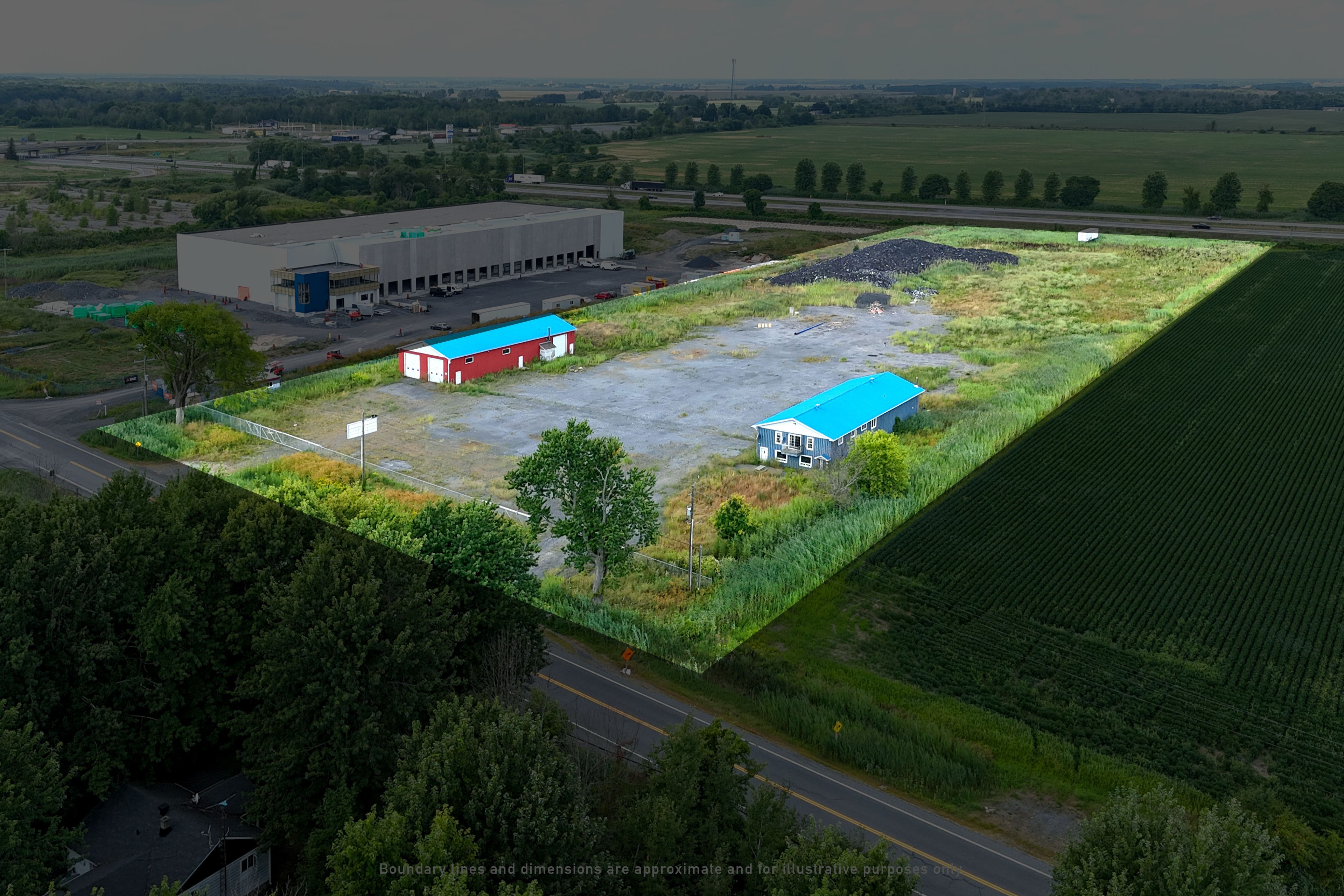 For lease: commercial space with prime highway frontage, offering over 8,000 sq. Ft. Across two industrial buildings with high-clearance warehousing, functional office space, and a showroom on 7. 8 acres of land. The property features multiple drive-in doors, clear heights up to 14'5", and a mix of open warehouse and private office configurations. Positioned in a high-demand corridor, this secured facility provides exceptional accessibility and visibility, making it ideal for logistics, warehousing, and industrial operations. Gross lease, utilities and ground maintenance are tenant's responsibility. Brochure link can be found under property summary.