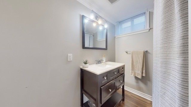 • Well-appointed full bathroom finished in a fresh, modern style.