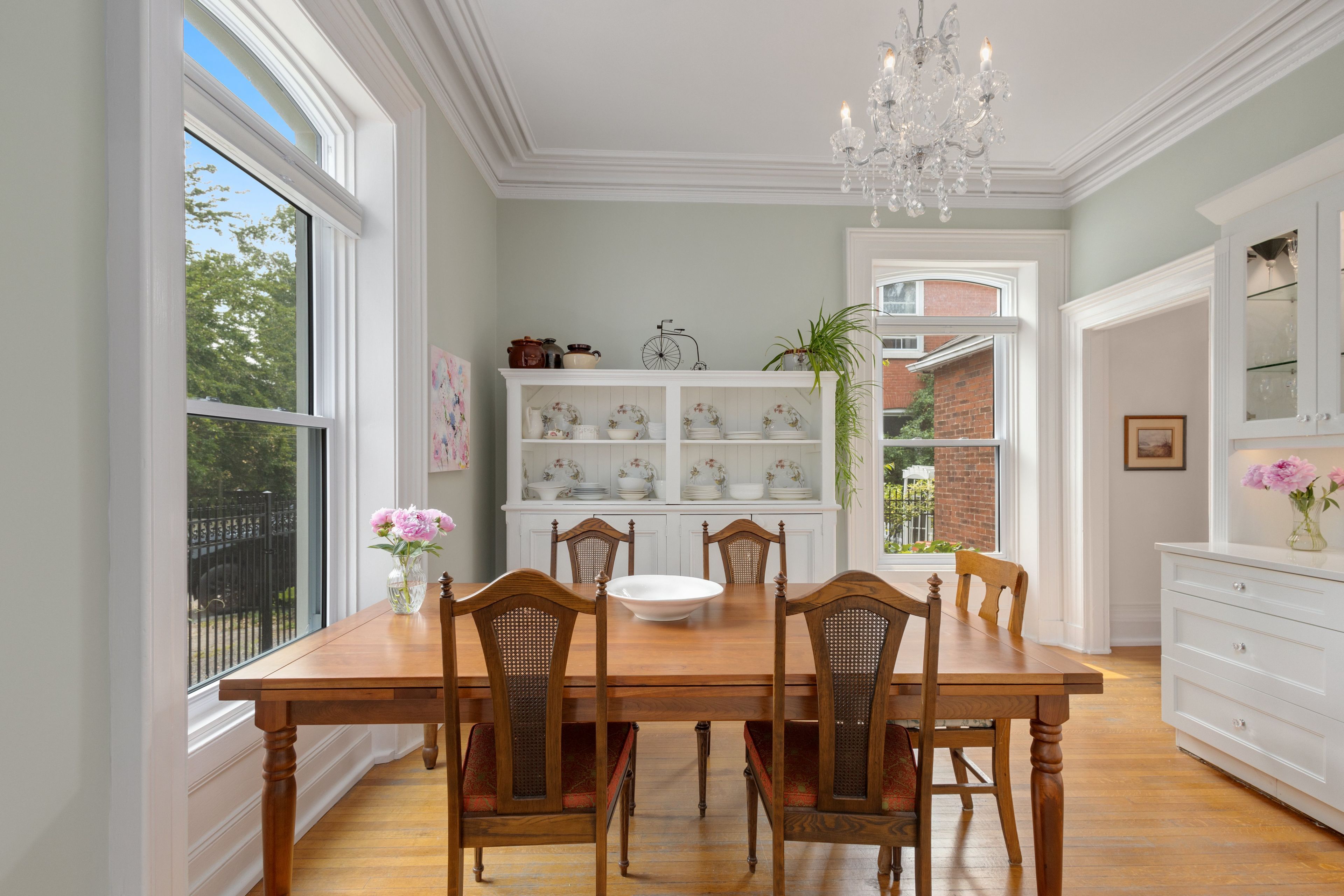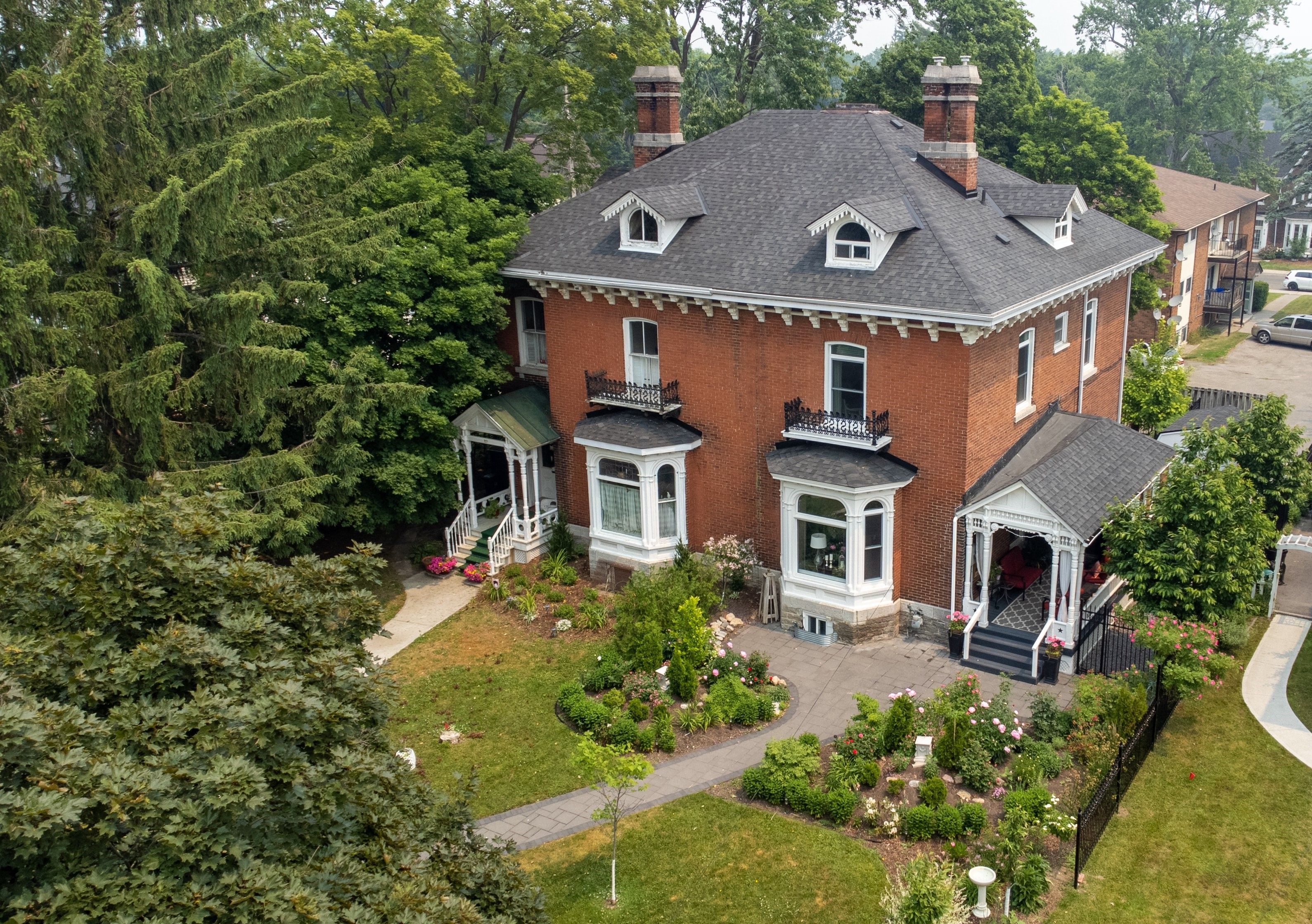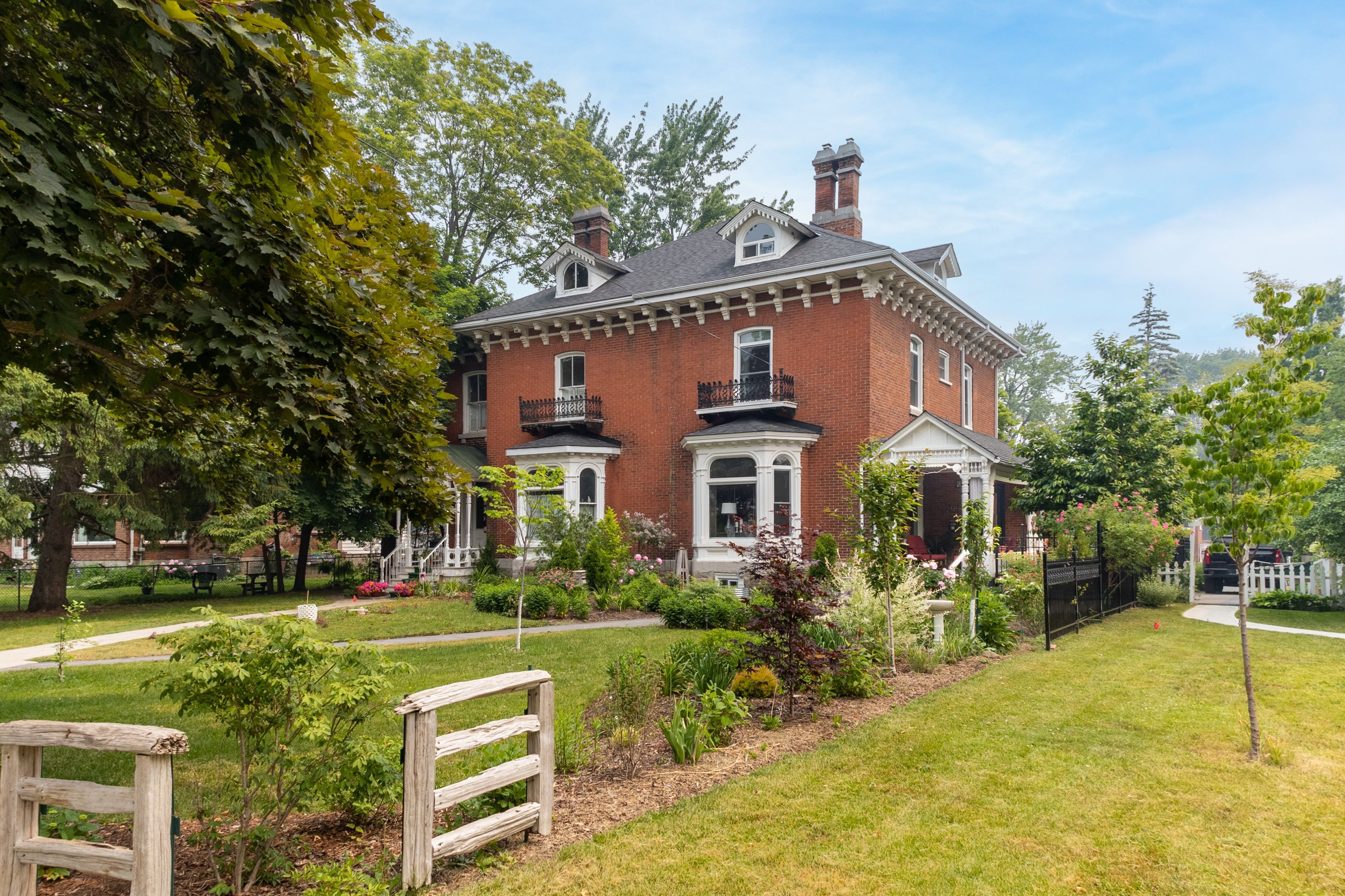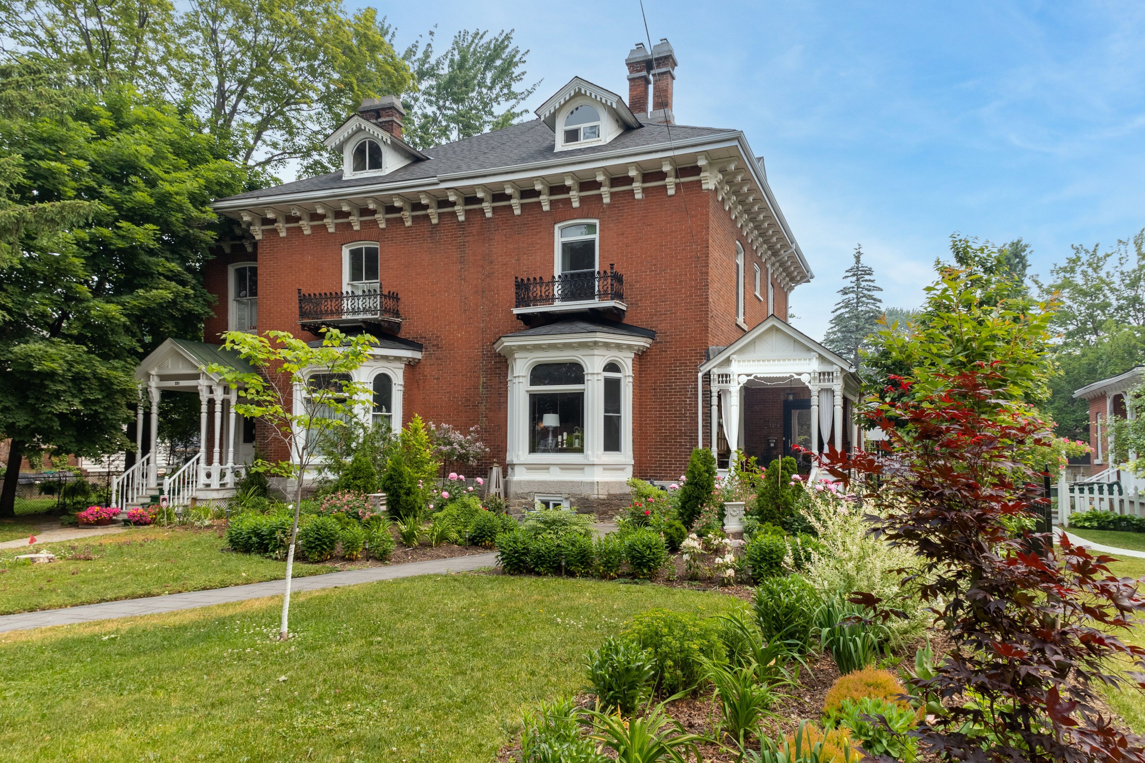 This grand victorian home, built in 1870 by ezra holton, is situated in the much-desired area of old east hill. The home boasts 12-ft ceilings on the first and second levels; exquisite high baseboards, crown mouldings, and trim. Large, elegant living room with original marble fireplace, dining room, kitchen, main hall, powder room, and foyer on main level. The second level offers a generous 3-piece bathroom, three spacious and bright bedrooms with the principal bedroom having floor to ceiling built-in drawers/open shelving as well as a custom walk-in closet. The third level has two additional spaces that are perfect for bedrooms or office and/or multi-media space. The home has been lovingly updated with all the modern amenities while retaining the original character throughout. Both bathrooms newly renovated 2022. Dining room solid wood cabinetry with glass door upper cabinets installed 2022. Hallway closets installed 2022. Quartz countertops throughout. 2022 cellular blinds on main floor. 2022 kitchen appliances. 2022 updated furnace, air conditioner and duct work. Large, elegant double-hung windows with uv protection. Gorgeous crystal chandeliers and lighting fixtures grace the entire home. Stone walkways and patios lead to both front and back doors. Back and side yard fully fenced with novo iron fencing and gates. Have a quiet meal in the intimate backyard, surrounded by beautiful gardens or enjoy afternoon tea on the generous front veranda enjoying the fragrance of the climbing roses that grace the iron fencing and add the perfect backdrop to the gorgeous front gardens. Steps to downtown, shops, restaurants, farmers market, library, theatre, parks, museums, and public gardens. Additional private parking (via driveway off charles street) can be made available through the municipality of belleville. Ask agent for details. This home is a must see!