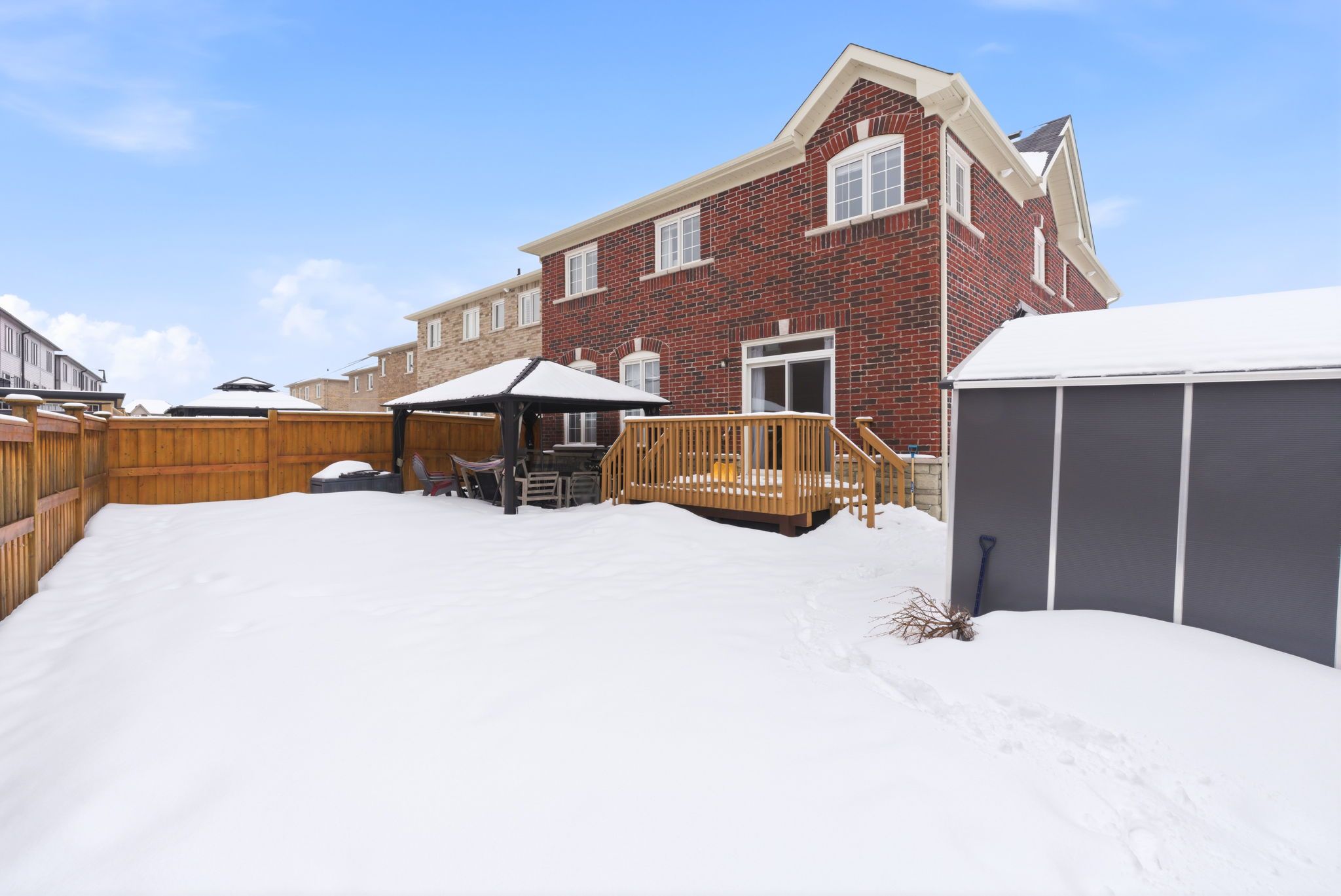 • Private backyard with gazebo, ideal for morning coffee or movie nights.