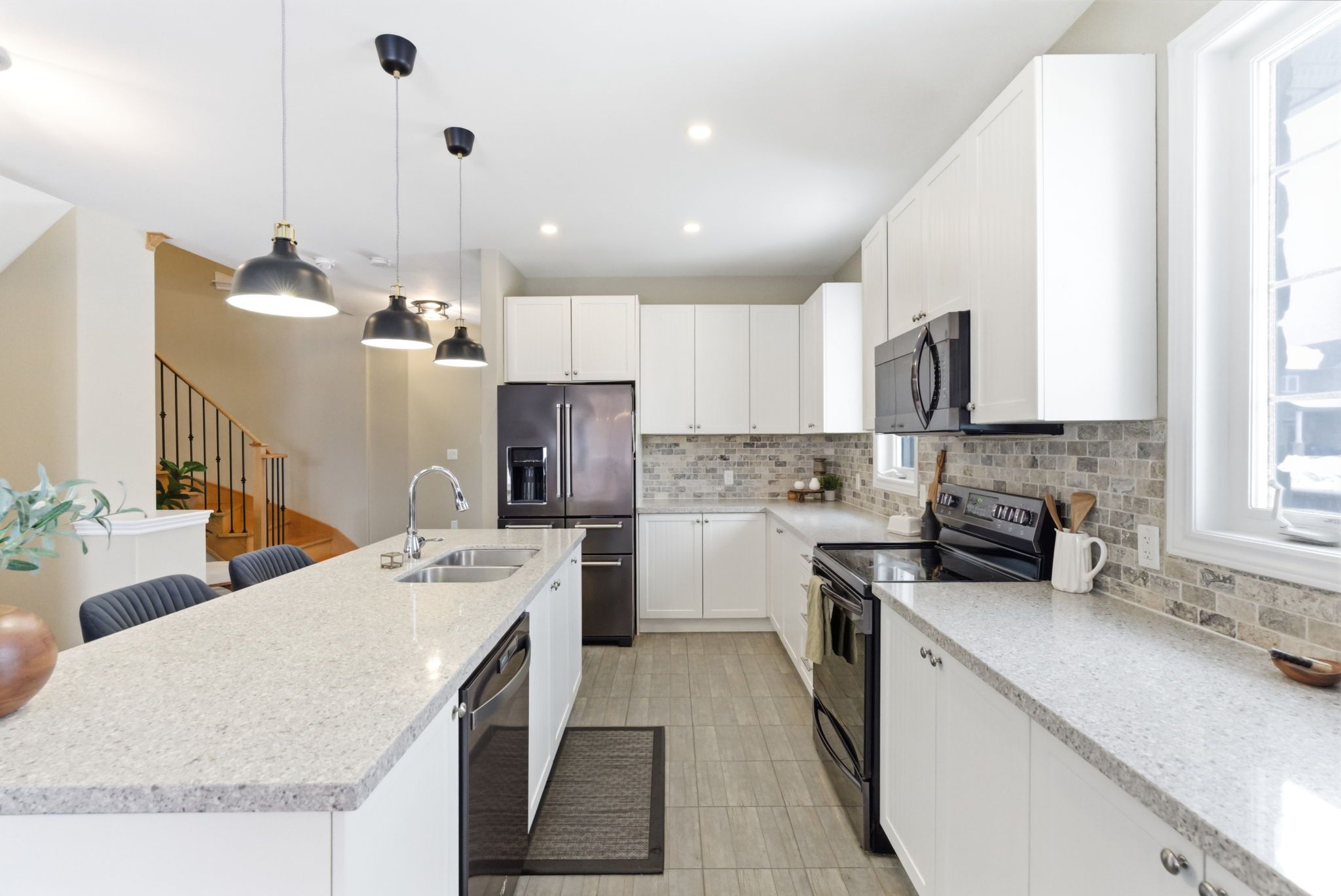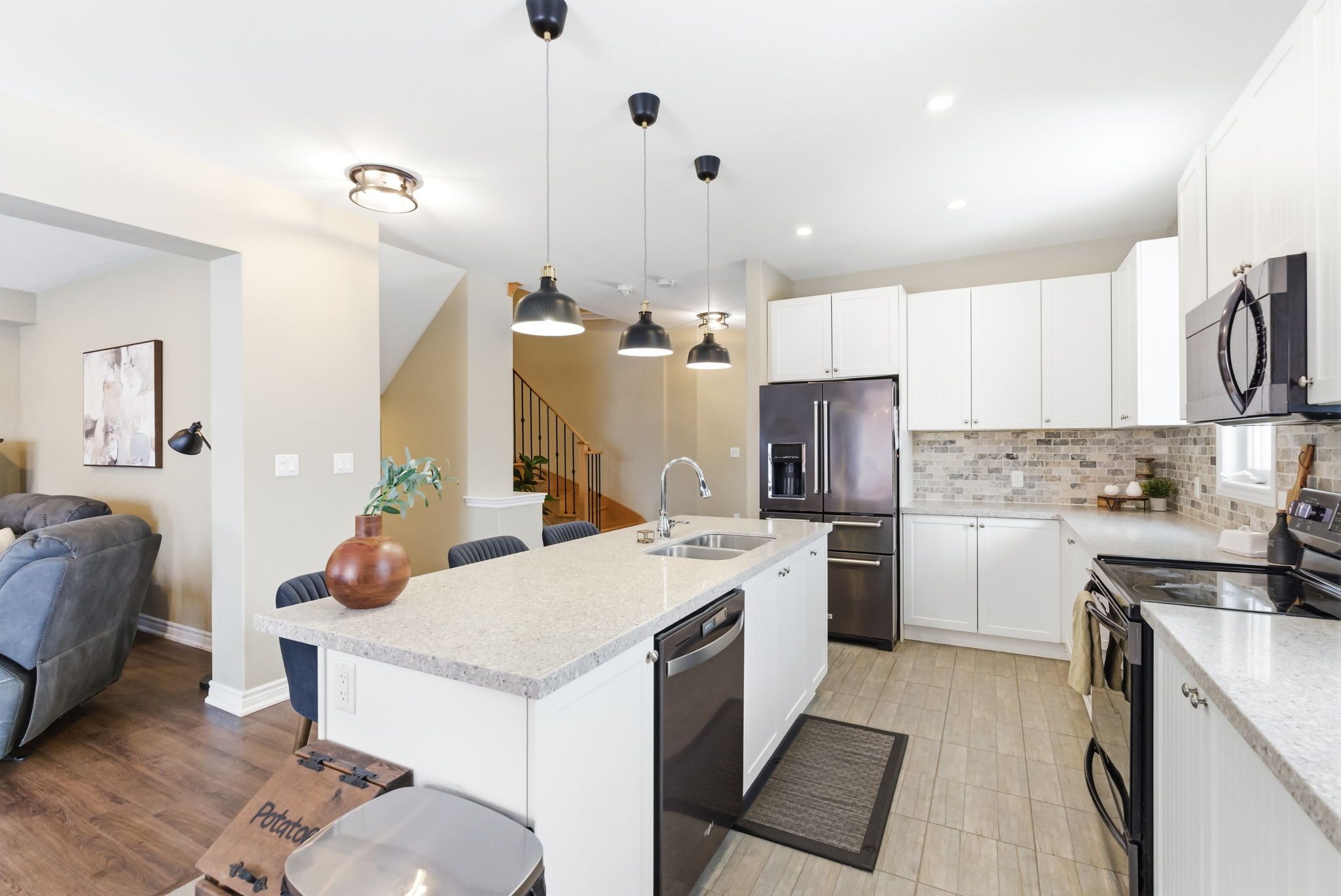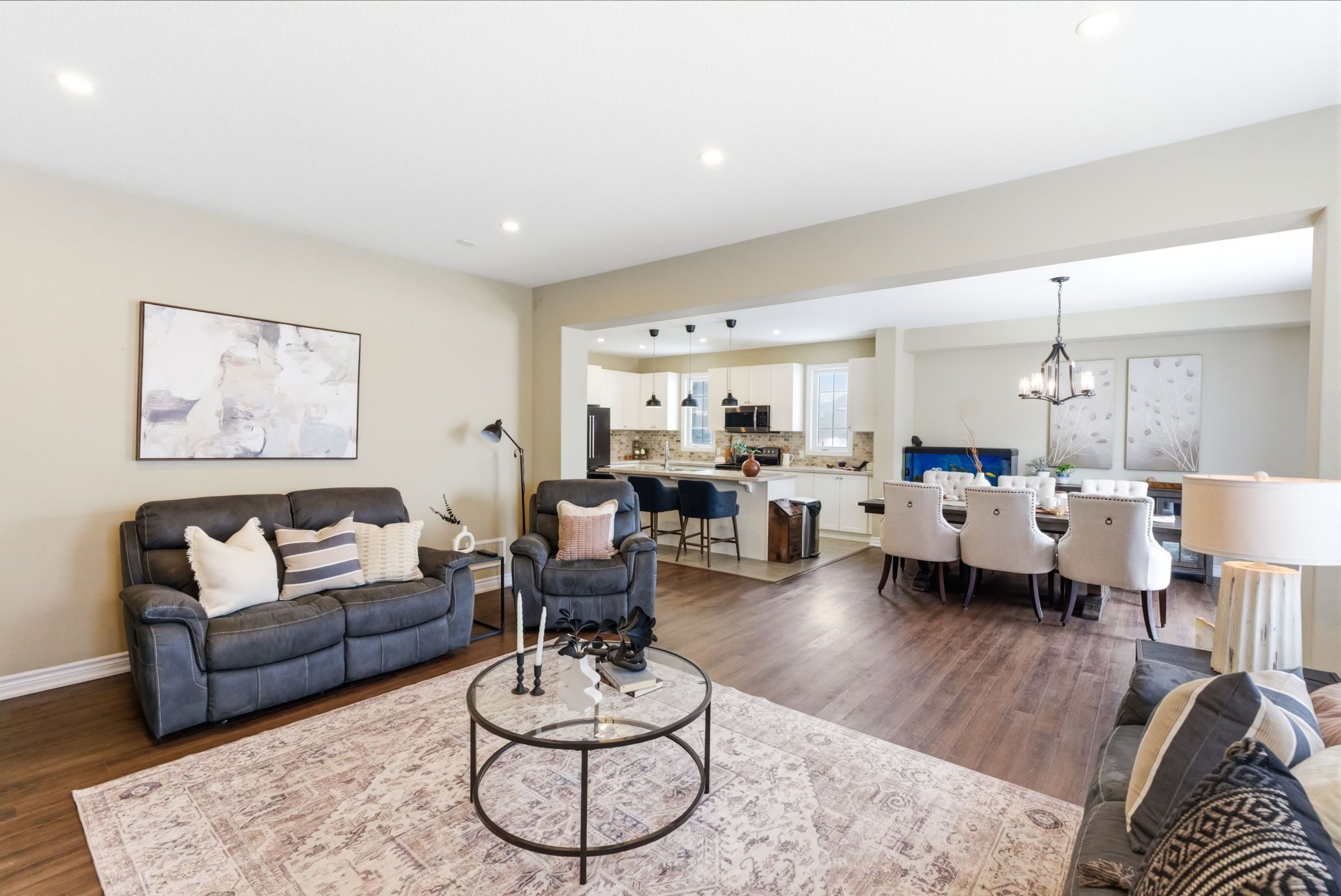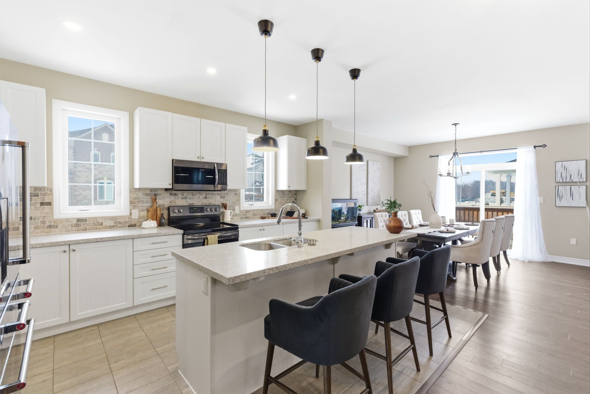 • Open concept main floor features a large kitchen island and dining area.