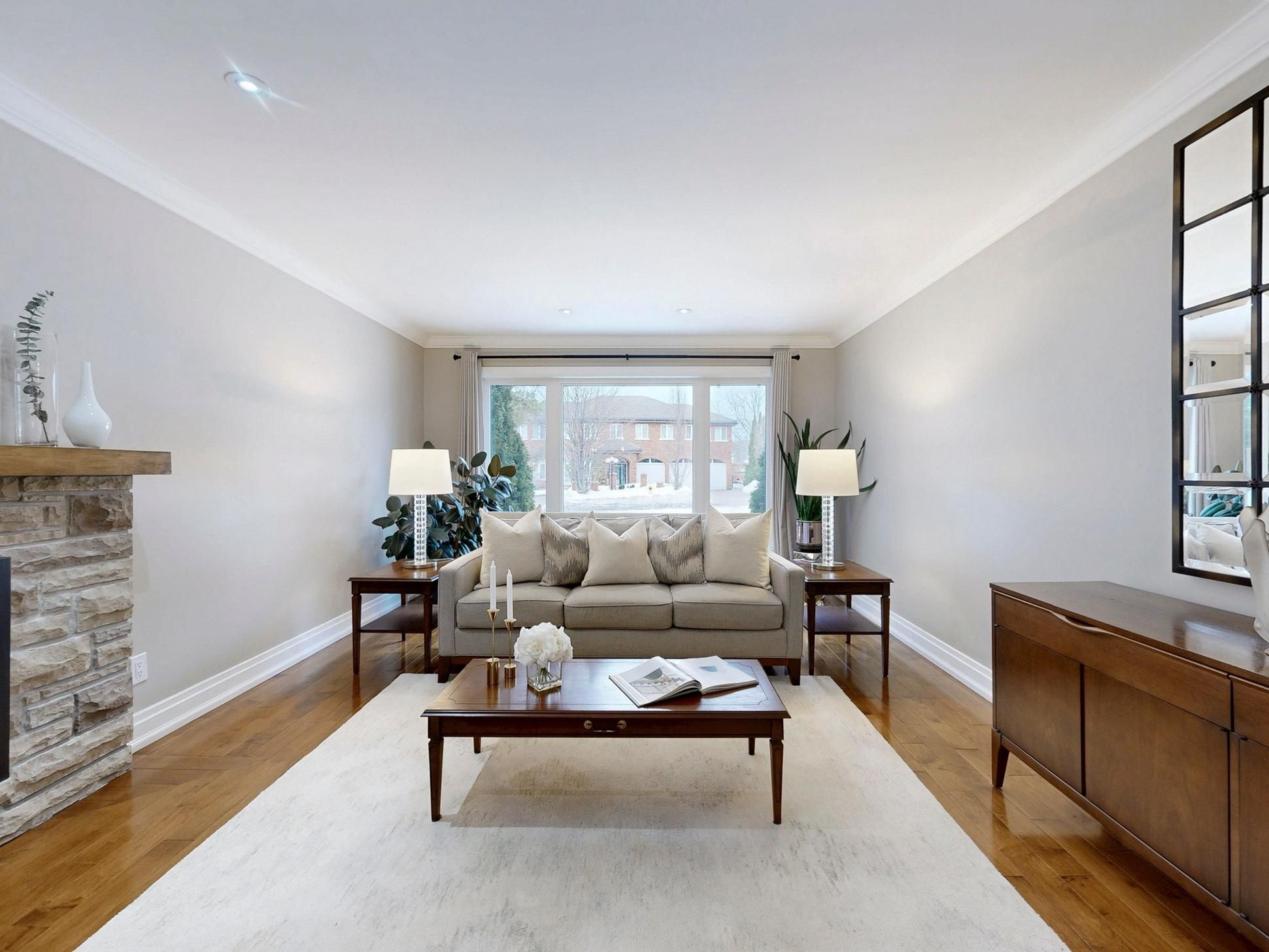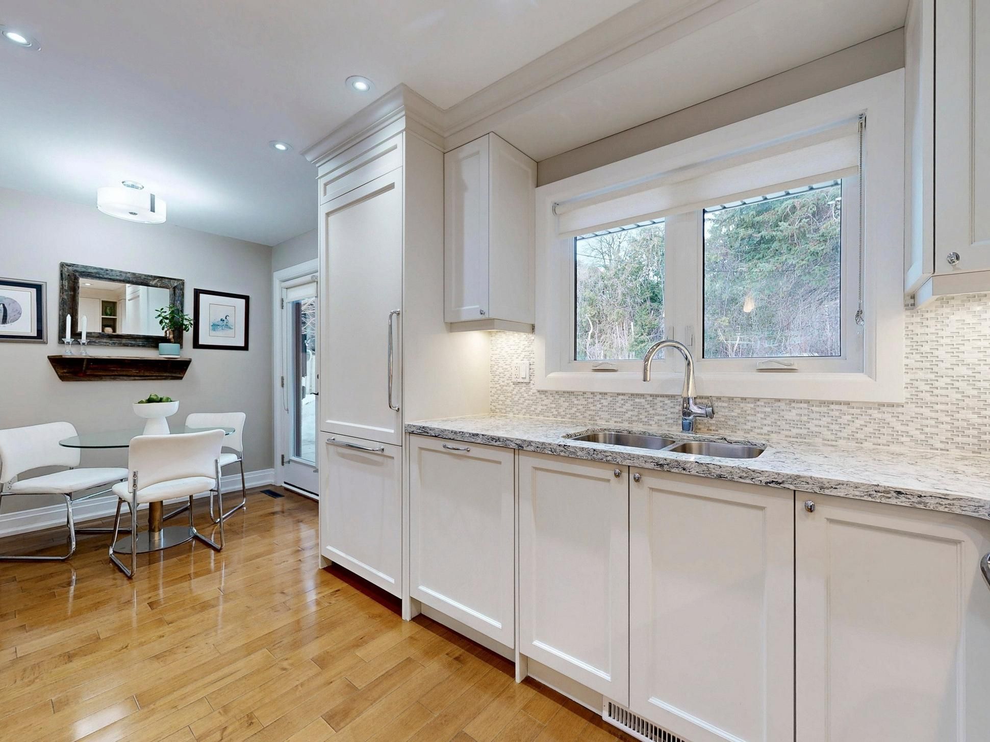 First time offered in over 40 years! Welcome to this beautifully renovated 3+2 bedroom ranch-style bungalow situated on a generous 60 x 125 ft lot. Thoughtfully renovated in 2014, this home offers modern comfort with the convenience of potential barrier-free living thanks to its no-stair entrance, level rear patio door access, and spacious main floor design. The bright main level features maple floors, a cozy gas fireplace, and a stylish modern kitchen with quartz countertops, built-in fridge and dishwasher that blend seamlessly with the cabinetry, and stainless steel stove and microwave. Updated bathrooms feature caesarstone counters, including the primary bedroom ensuite with a walk-in shower. With 3 bedrooms on the main level and 2 additional bedrooms below, the home offers flexible living arrangements for families or multi-generational households. The expansive lower level with a separate entrance provides outstanding potential for an in-law suite, extended family living, or an additional recreational area. The large laundry room has ample cabinetry, a counter for folding, and built-in sink. Step outside to enjoy the large private lot, perfect for entertaining and relaxing. Parking is abundant with a double garage and a driveway for up to 4 additional vehicles. A rare opportunity to own a lovingly updated and meticulously maintained home on a premium lot in a fantastic location.