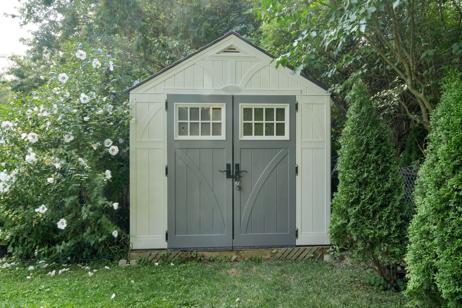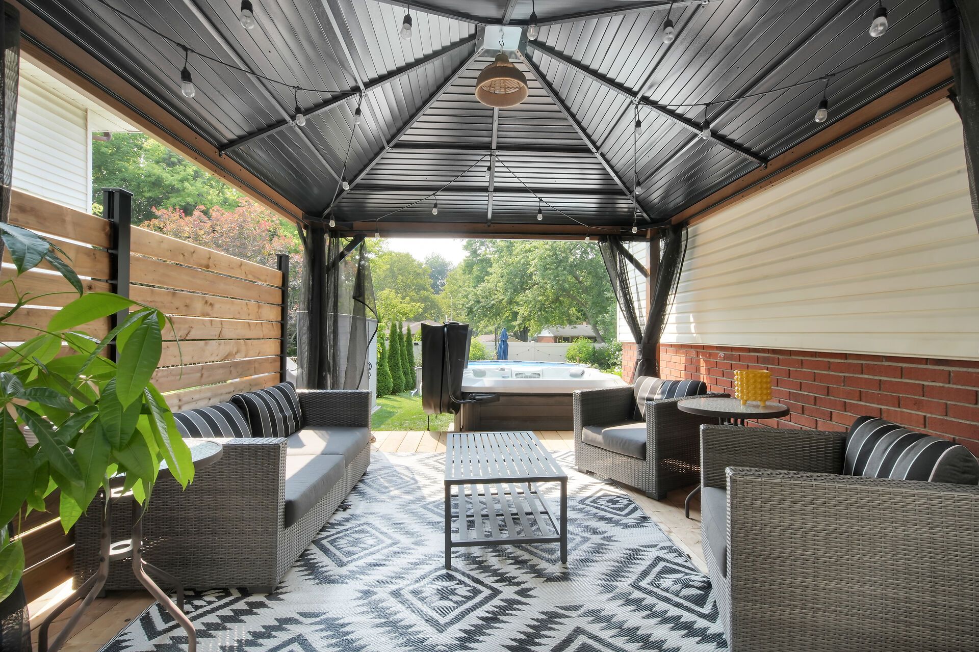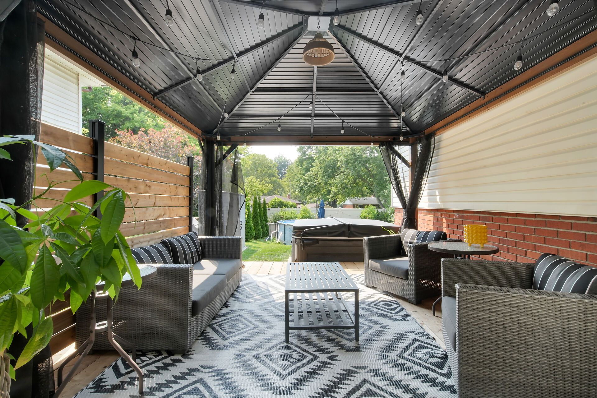 • Large backyard with concrete patio for summer gatherings.