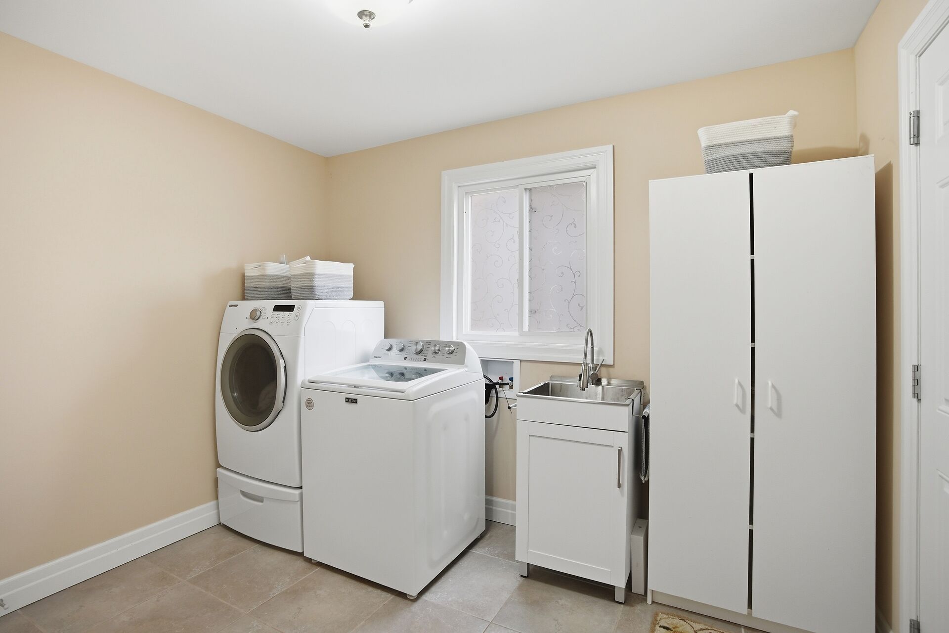 • Lower-level family room with walk-out access to a stamped concrete patio.