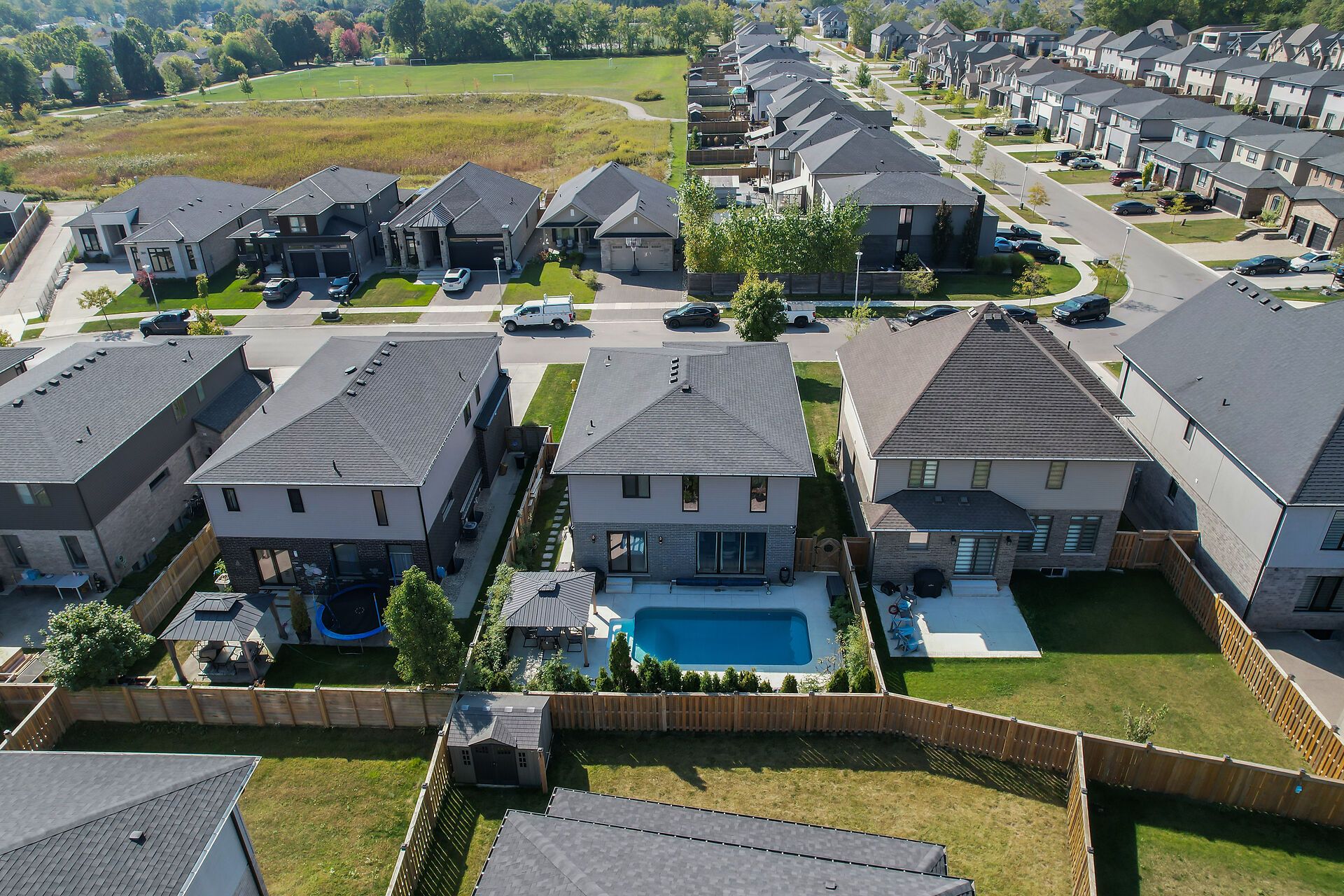 Experience the perfect blend of modern elegance and functional design at 2190 bakervilla street, crafted with attention to every detail. Built in 2017, this home feels timeless yet contemporary - bright, open, and filled with natural light from european windows that accentuate its clean architectural lines and calm sophistication. At the heart of the home is a chef-inspired kitchen featuring custom cabinetry, quartz countertops, top-tier appliances, and a generous island perfect for morning coffee or late-night conversation. The main floor flows seamlessly into spacious living and dining areas made for gathering, complete with a built-in multi-channel home theatre system that turns any evening into an experience. Upstairs, the bedrooms are spacious and serene, while each bathroom feels spa-inspired with elegant finishes and modern design. Step outside to your private retreat - a backyard built for both relaxation and celebration. The heated saltwater pool (2023) is surrounded by lush landscaping and ample space to entertain or unwind. It's a setting that feels both luxurious and effortless, designed for making memories year-round. Located in the sought-after community of lambeth, this property offers the perfect balance of upscale living and small-town charm. With parks, trails, schools, and amenities just steps away - and the 401 and 402 minutes from your door - 2190 bakervilla street delivers the best of modern living in an unbeatable location.