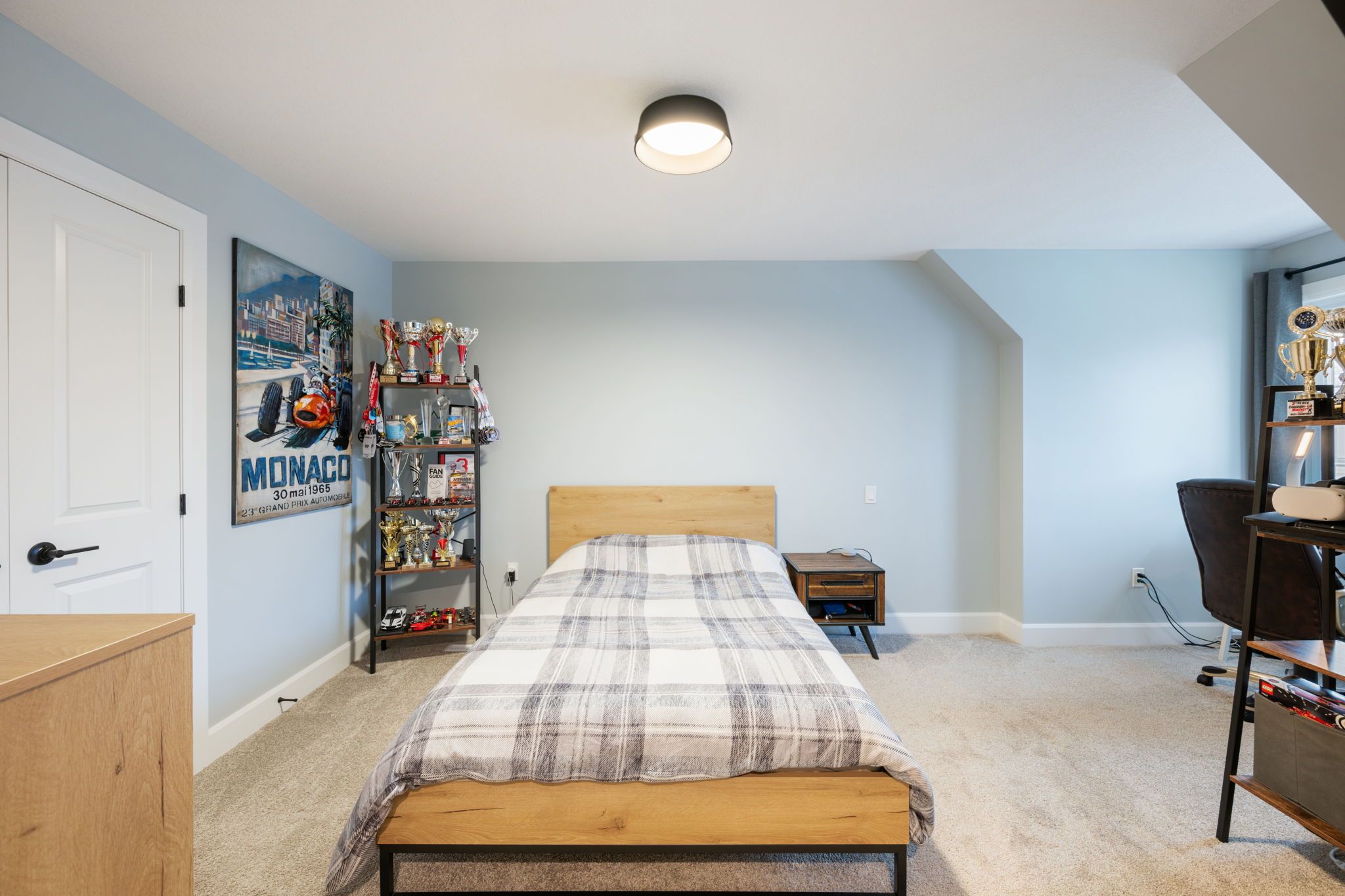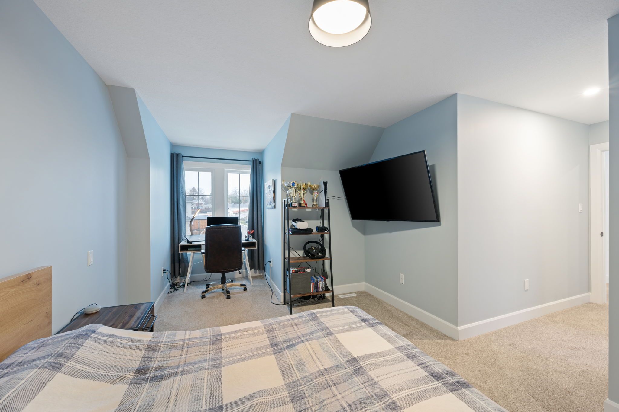 • Gourmet kitchen with a vaulted ceiling and walk-in pantry for ample storage.