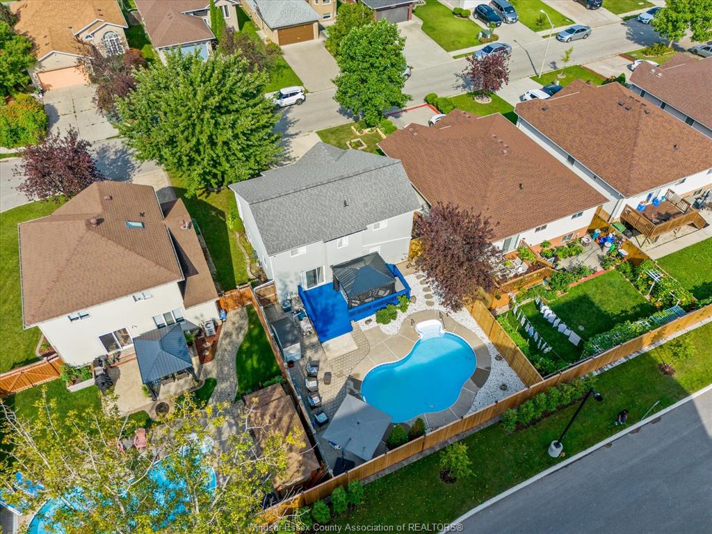 Beautiful 2-story home in highly sought-after south windsor, located near top-rated schools including vincent massey & talbot trail. Just minutes from the 401, e. C. Row, and the windsor-detroit border, delivering space, comfort & functionality across all three levels. Featuring 3+1 spacious bedrooms and 2. 5 baths, the main floor boasts a bright living/dining combo, powder room, main floor laundry, and a cozy family room with fireplace & kitchen perfect for entertaining (bar is movable) . Upstairs includes 3 generous bedrooms and full updated bath. The fully finished basement offers family room, bedroom /office & full bath. The entertainer's dream backyard includes outdoor seating, an inground pool, and professional landscaping. Located in a family-friendly neighborhood close to all amenities this home checks all the boxes! Notable updates & features include: air conditioner & furnace (5 years) , laundry room (2024) , fence (2024), basement (2024) , electrical fixtures (2024) furnace & hot water tank (2016), shed (2017), front door (2019) , all updated light fixtures. Nothing left to do, but enjoy this wonderful home.