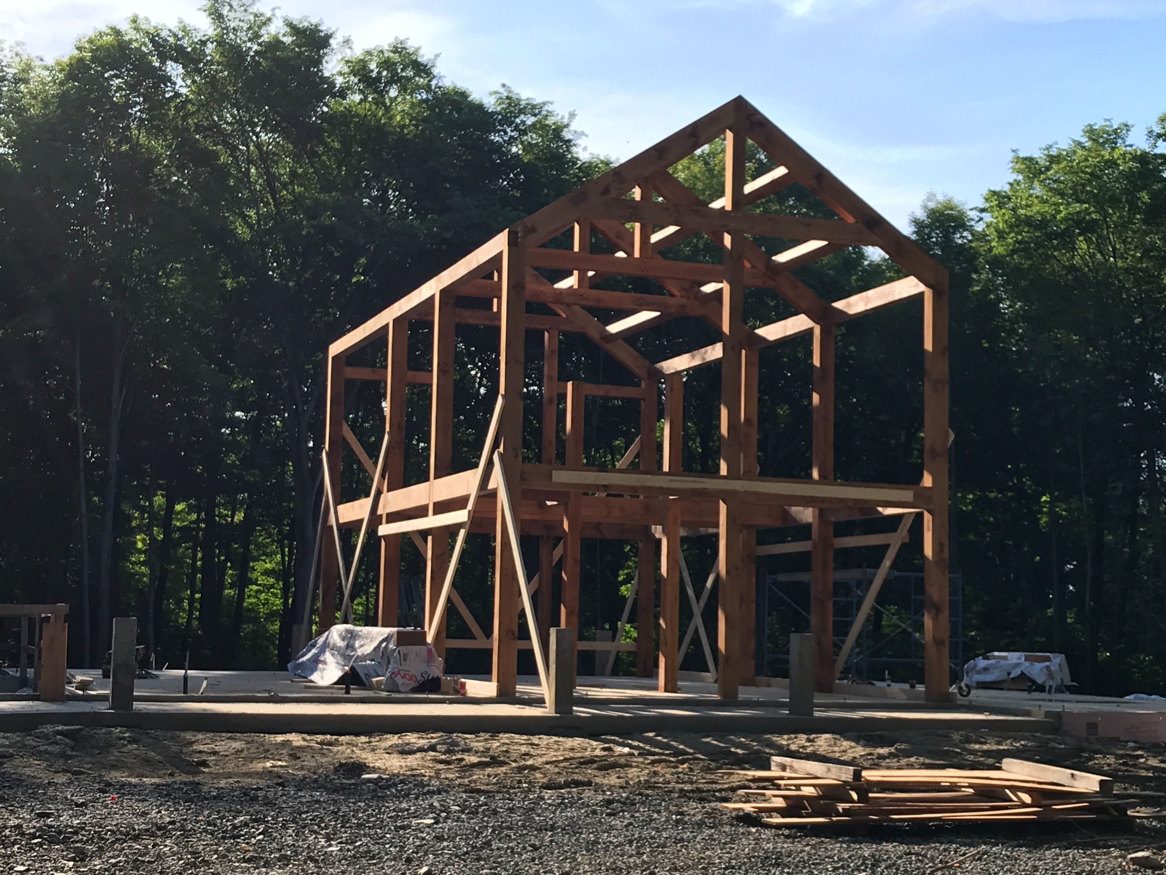 Welcome to this breathtaking genuine timber frame home masterfully built by jackson hill timber frames and proudly featured on their website. Offering over 3,800 sq ft of living space, this exceptional property combines a perfect blend of refined craftsmanship and peaceful country living, just 1 hour from montreal, ottawa, and the laurentians. A winding private driveway leads to your 80-acre treed sanctuary with mature tappable maple trees, perennial berry gardens, grapevines, abundant wildlife, private hiking and snowshoeing trails, and a charming chicken coop. Step inside and prepare to be impressed by the soaring 25-ft cathedral ceilings, spectacular exposed timber beams, a central walkway, and floor-to-ceiling windows that fill the open-concept main floor with natural light. A dream kitchen features an oversized island and walk-through pantry, while a two-faced high-efficiency wood fireplace connects the living area to a relaxing 3-season sunroom. Comfort includes in-floor heating on the main level, powered by a wood and propane boiler (wood optional). The home offers a main floor primary suite with walk-in closet and spa like ensuite bathroom featuring therapeutic bath and double shower, main-floor laundry, and a dream mudroom with extensive storage. A solid wood open staircase leads to the second level where you will find three additional bedrooms, a full bathroom, and den/office space. An extra-large recreation room above the oversized double garage is perfect for family room, play room, home gym or all of the above! This is more than a home, it's a lifestyle. Whether you envision maple syrup production, hobby farming, outdoor adventures, or simply privacy and tranquility, this rare timber frame estate offers unmatched beauty and opportunity. Experience country living at its finest without sacrificing proximity to the city.