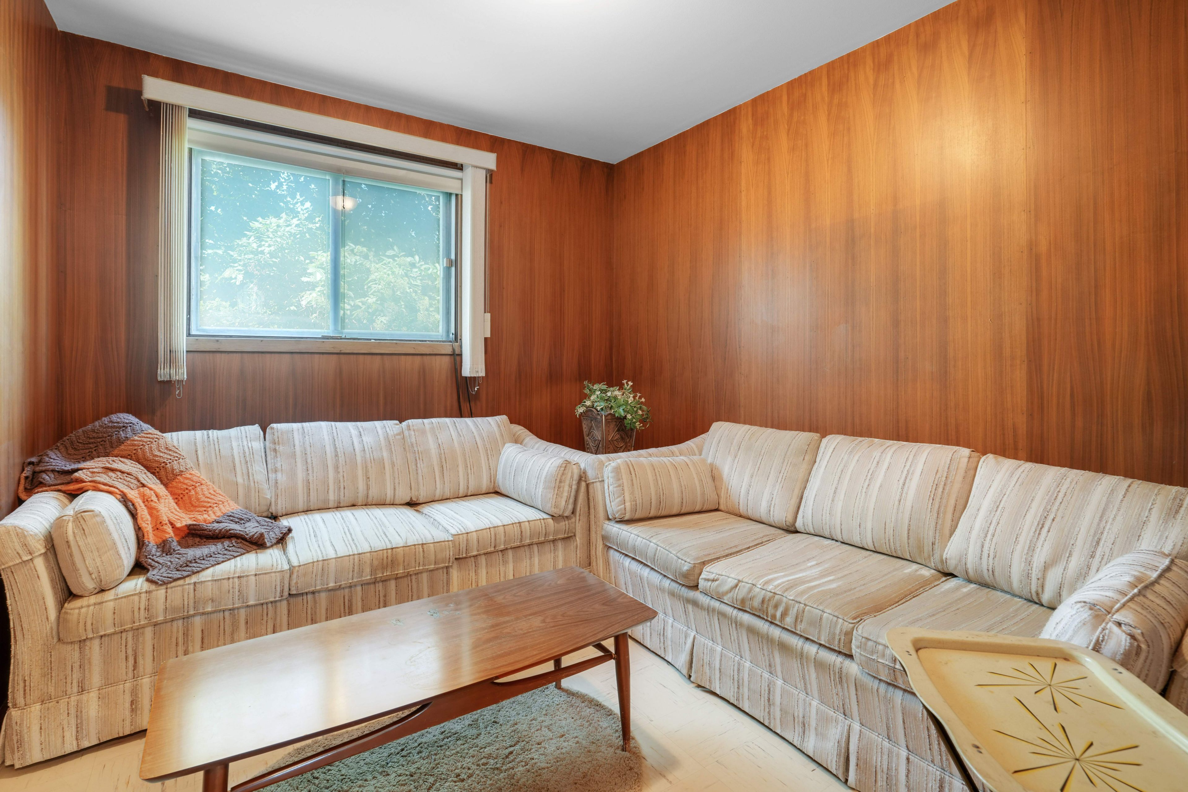 • Bright living room with large window, perfect for entertaining.