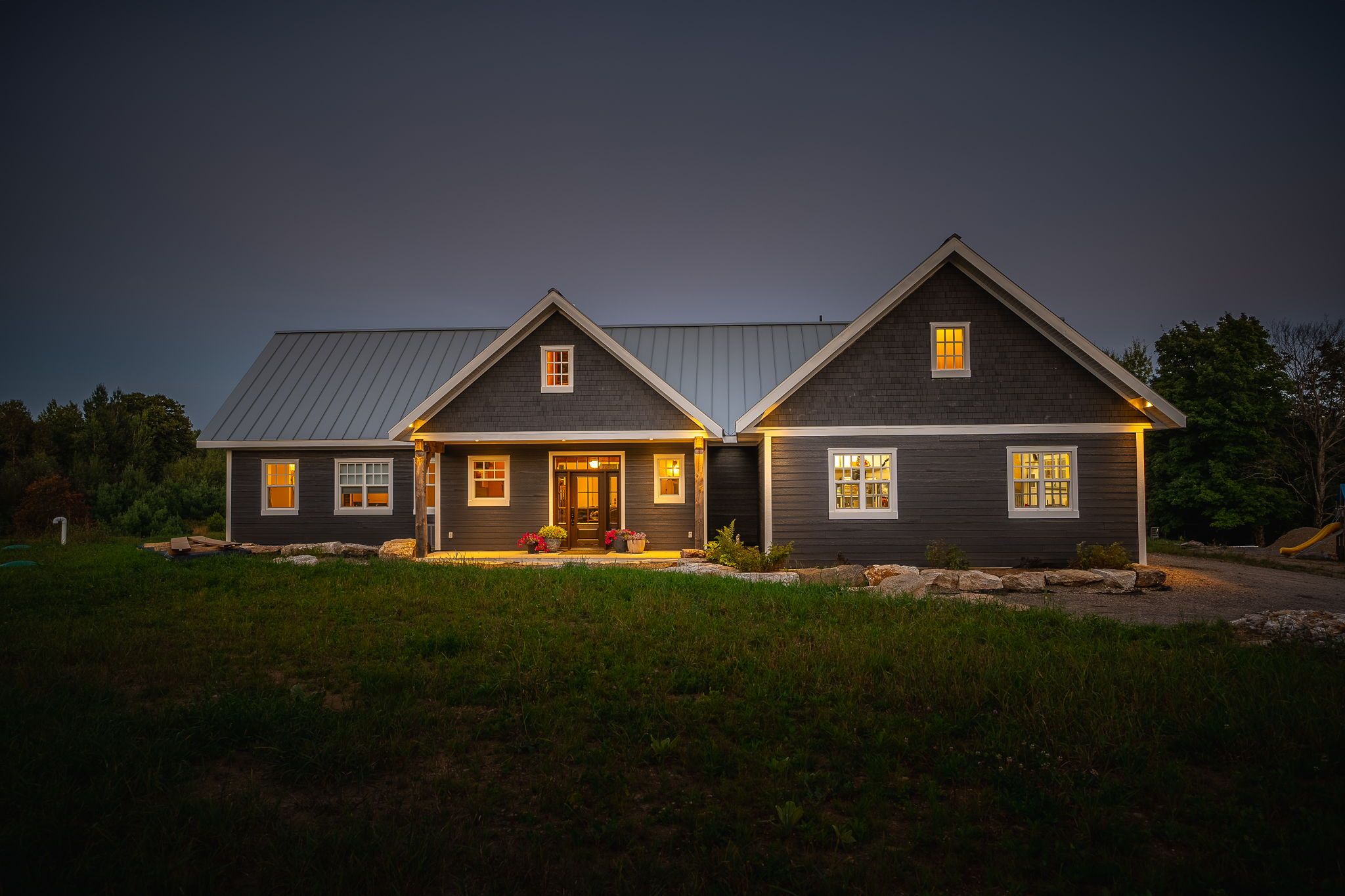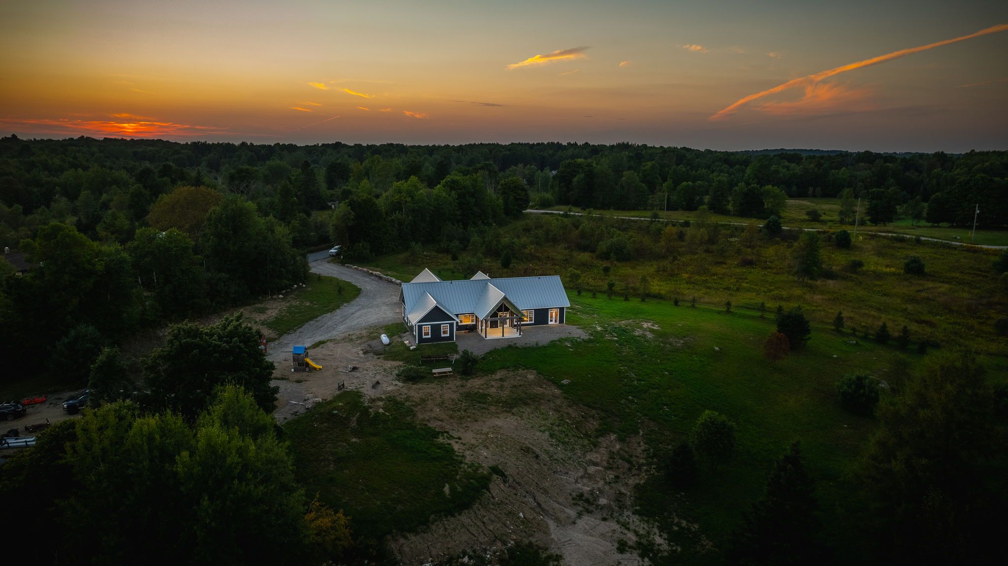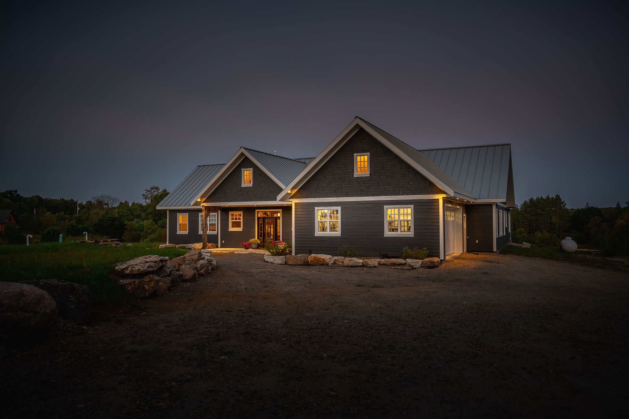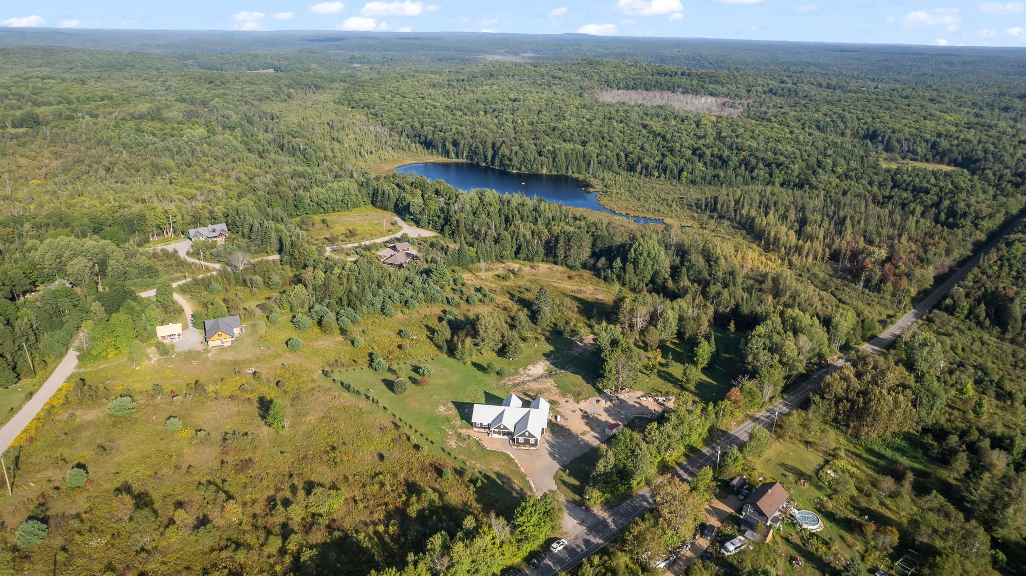 Experience luxury and tranquility in this meticulously crafted home, nestled on 4. 5 acres just minutes from haliburton in the exclusive gainforth estates neighbourhood. Completed in 2022, this 4 bedroom and 2. 5 bathroom bungalow has been built using only the finest materials, with no detail overlooked and no expense spared. This property offers a serene escape with direct access to 41 acres of adjacent shared parkland including trails and a beautiful deep water pond for swimming, fishing, canoeing and kayaking - a nature lovers paradise! With nearly 3000 square feet of refined living space on one floor, this home exudes both grandeur and warmth. A spacious foyer leads into the the open concept living space which was designed for entertaining with its impressive 10-foot ceilings, bespoke millwork, timber-frame accents, floor-to-ceiling propane fireplace and extensive windows and multiple walk-outs for easy access to the covered porch and bright, southerly views over the stunning property. The custom kitchen offers quartz counters, built-in panelled appliances, an oversized island with seating for 5 and the bonus of a butler's pantry with laundry for additional storage and prep space. The primary suite features an office space, walk-out to the backyard and an extraordinary spa-like ensuite with curbless shower, dual sinks and freestanding soaker tub. Three additional spacious bedrooms and a 5-piece guest bath complete this perfectly laid-out home. This home is also wheelchair accessible. Additional features include: engineered hardwood and tile floors throughout with radiant in-floor heat, forced air propane furnace and central air, oversized septic and dug spring-fed well for exceptional water quality and supply. An attached garage provides convenient parking, additional storage and direct access to the mud room. Enjoy this perfect blend of luxury and nature for years to come.