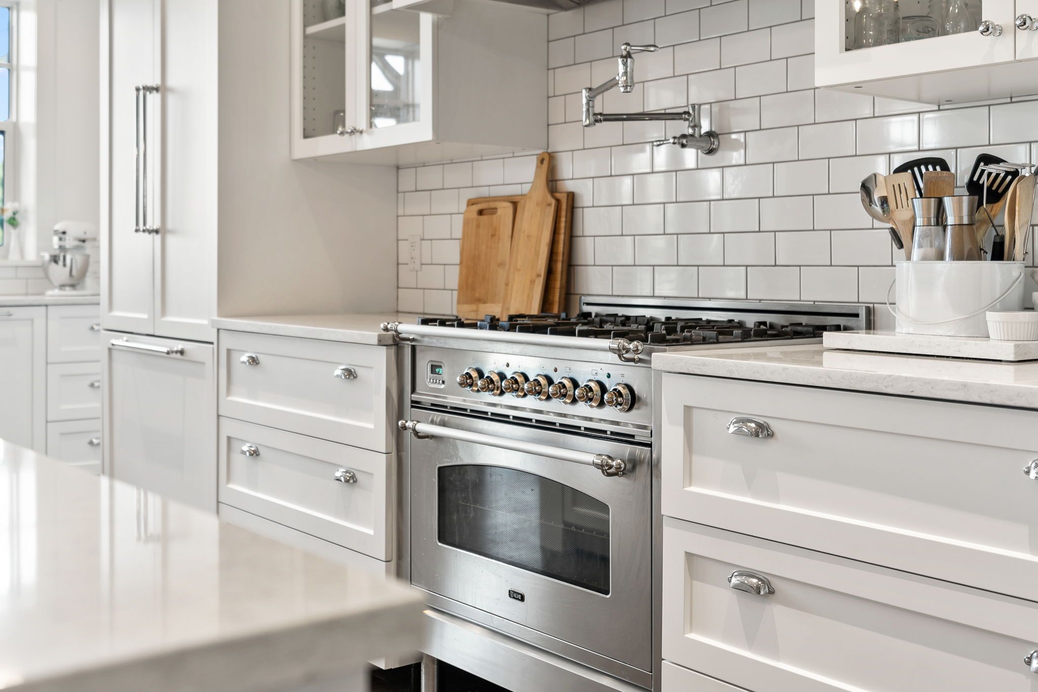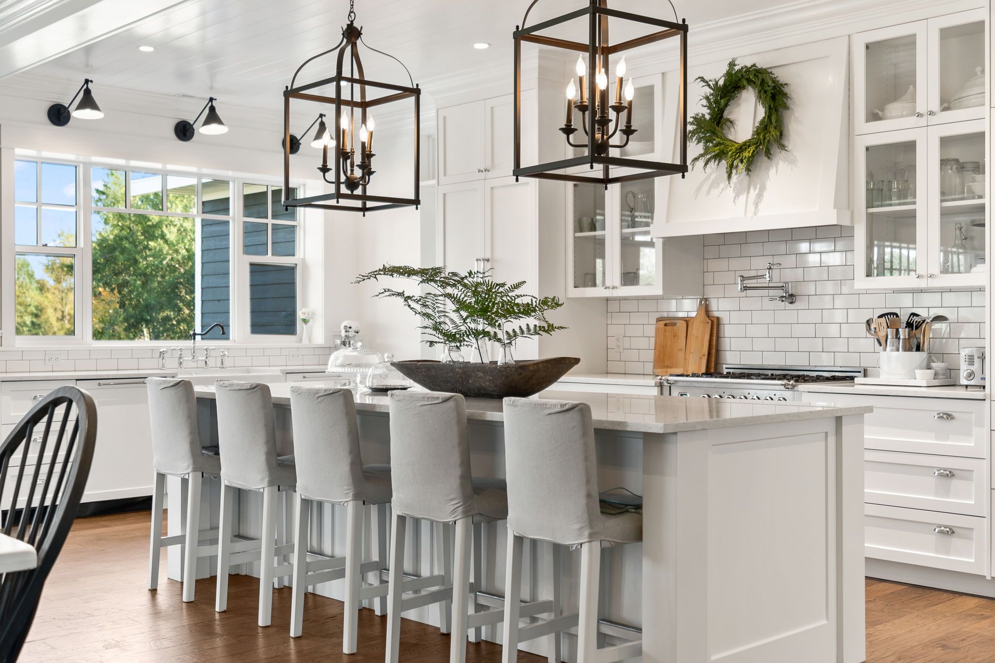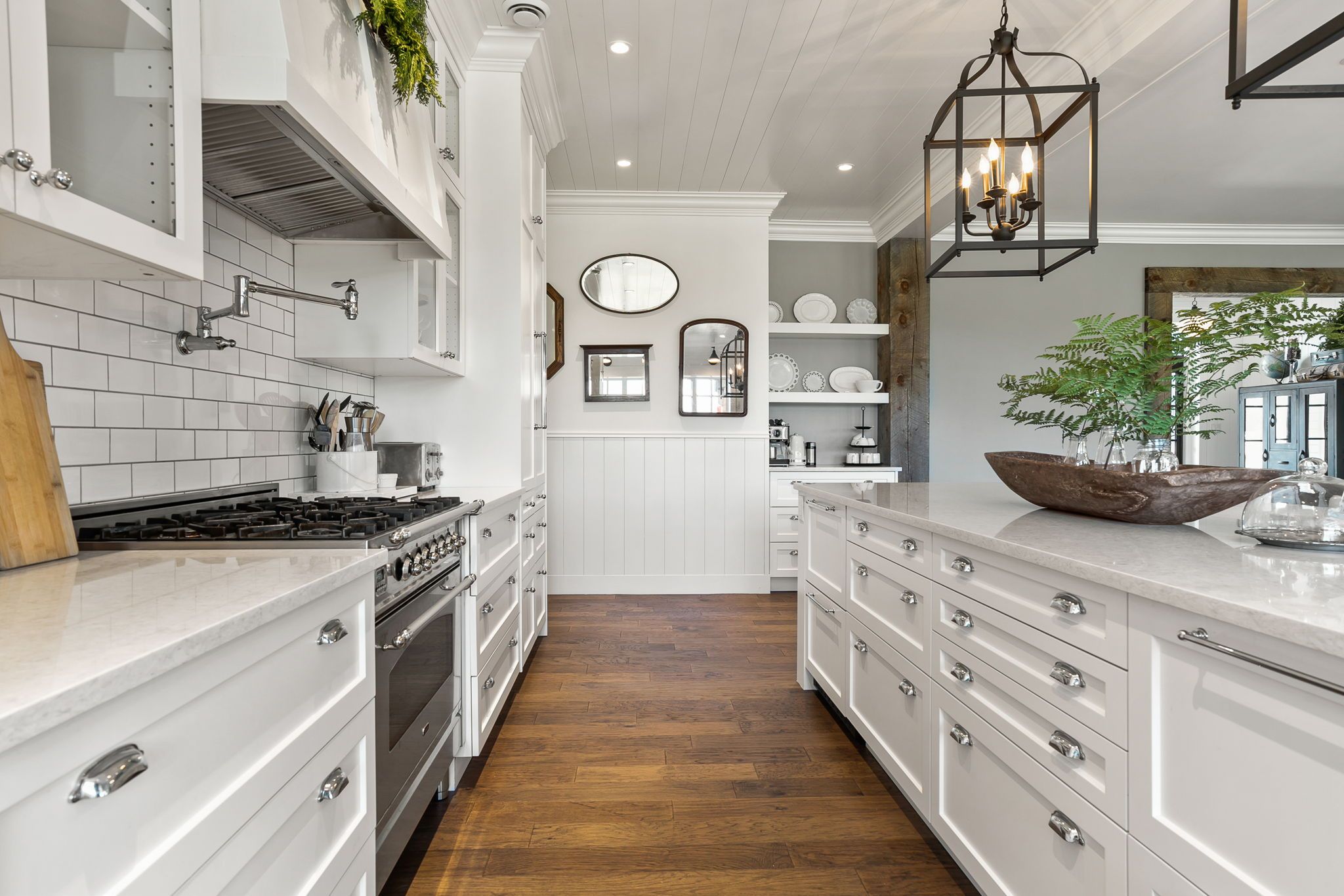 • Custom kitchen with oversized island and butler's pantry for added convenience.