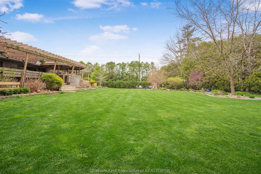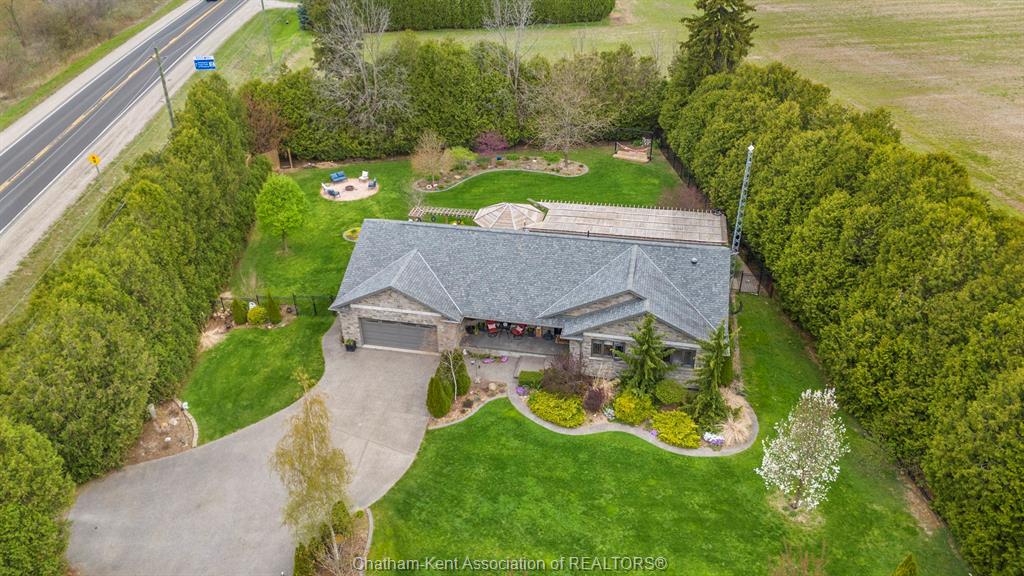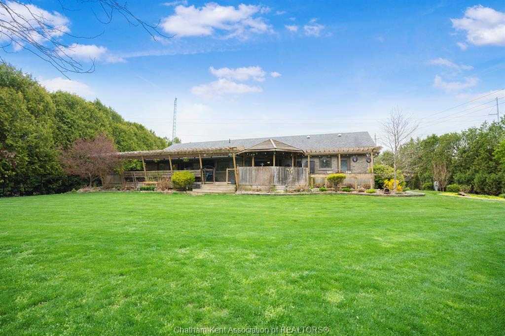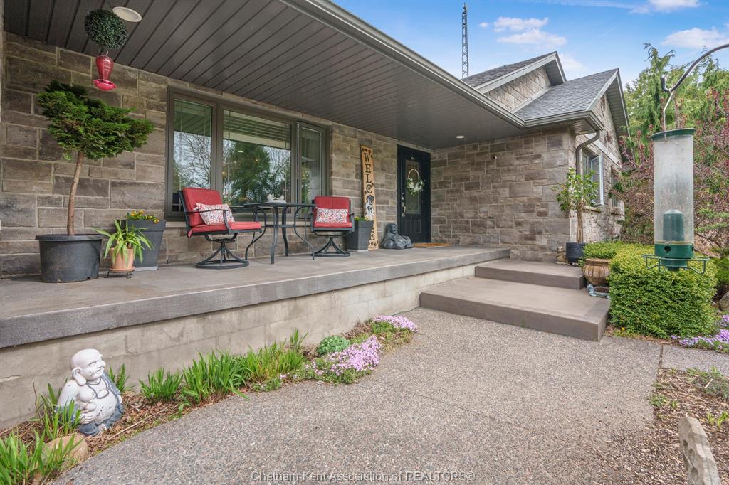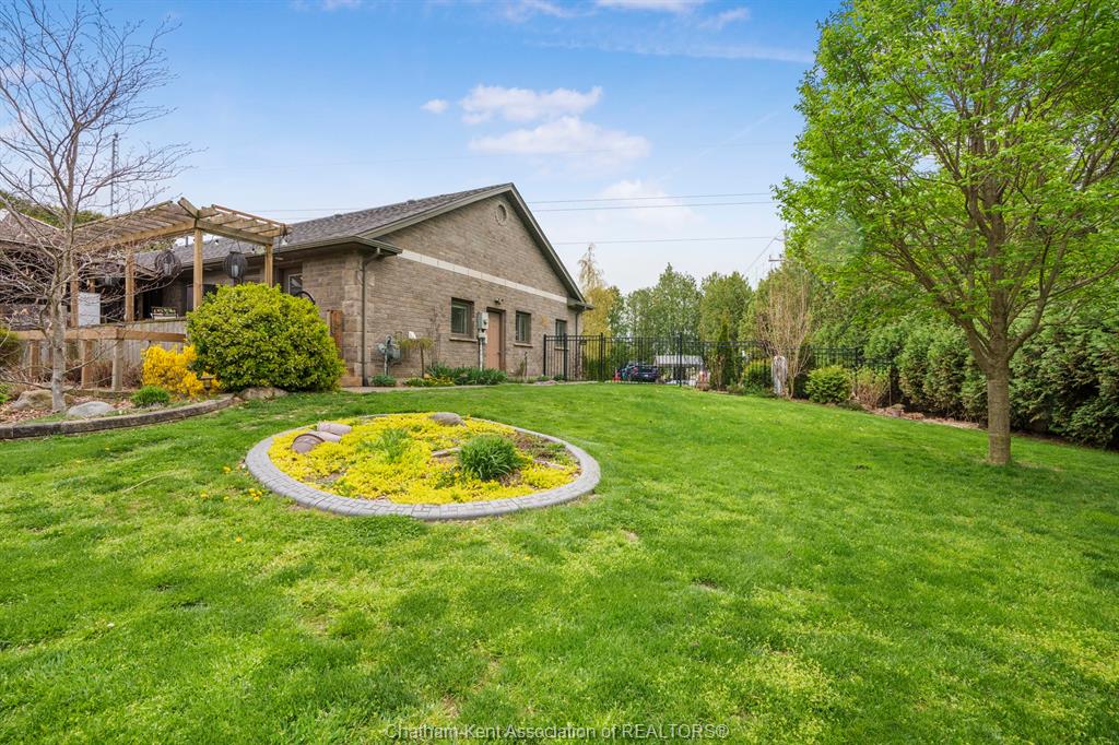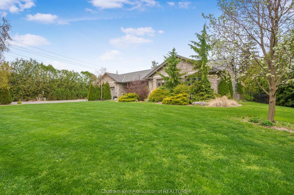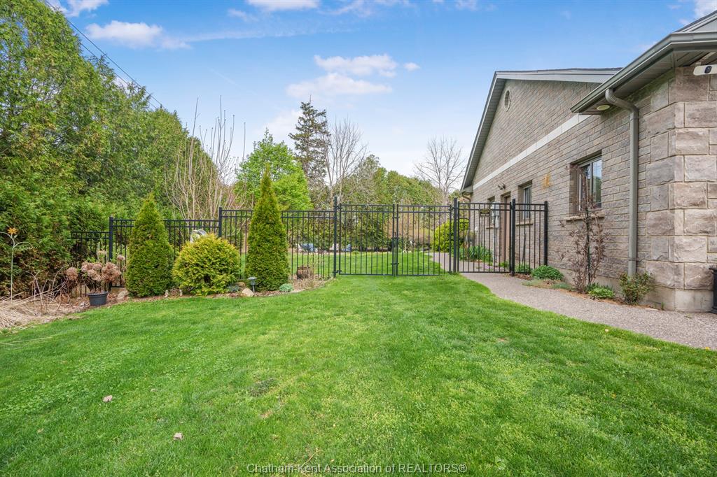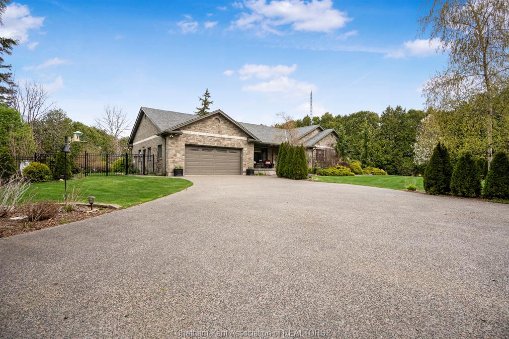Welcome to your dream country escape! This all-brick rancher sits on just under 1 acre of private, cedar-wrapped land, offering 3 spacious bedrooms and 4 updated bathrooms. One of the main floor bathrooms features a luxurious freestanding soaker tub and heated floors for ultimate comfort. A double-car attached garage adds convenience, while the fully finished massive basement offers endless storage and living space. Relax or entertain on the expansive covered patio, complete with an outdoor kitchen style and bbq setup, perfect for summer evenings. The fully fenced yard and scenic walking path around the home create a peaceful retreat. Surrounded by towering cedars for seclusion, this property combines privacy, modern updates, and country charm all in one beautiful package. Don’t miss this rare opportunity to enjoy the best of rural living with all the comforts of home! This home is located on the southside of chatham only seconds from hwy 401.