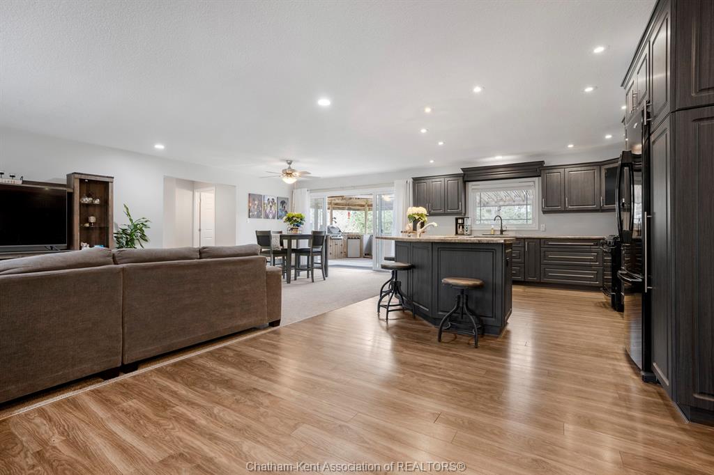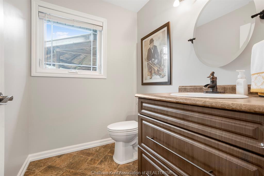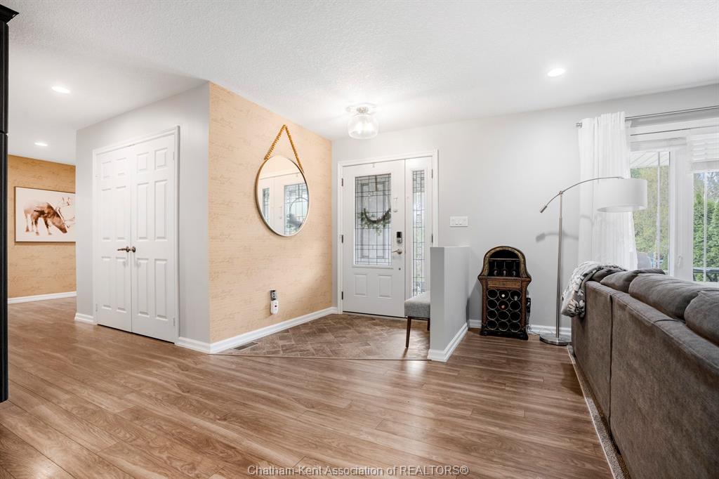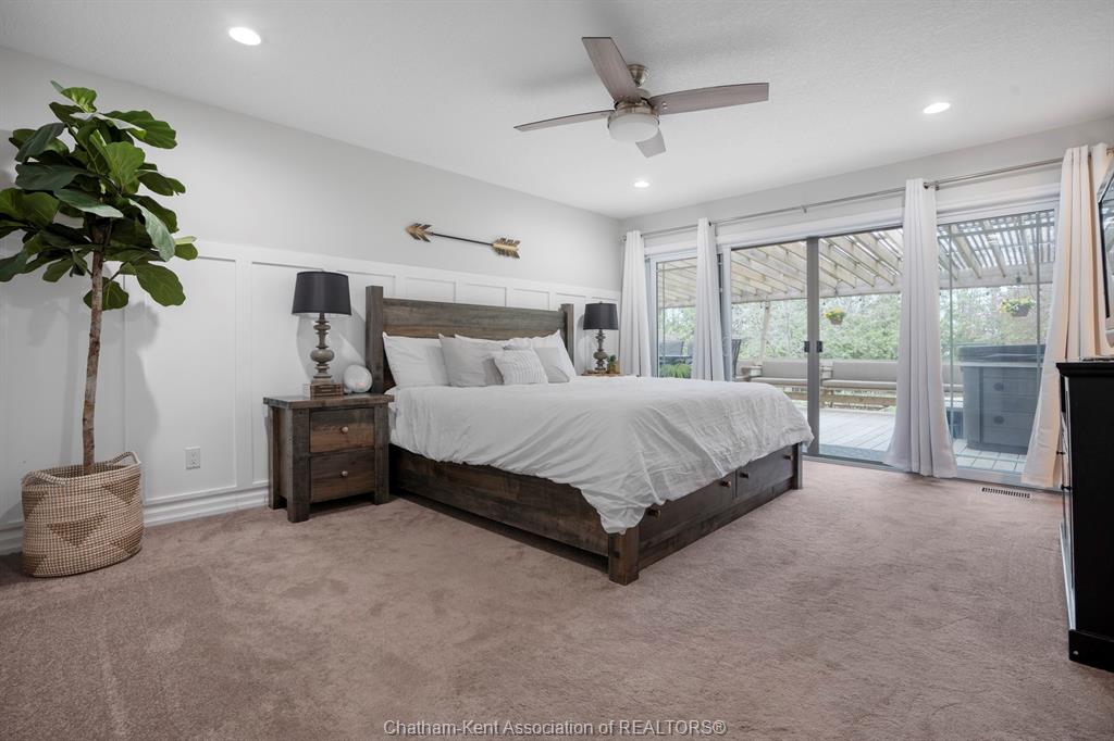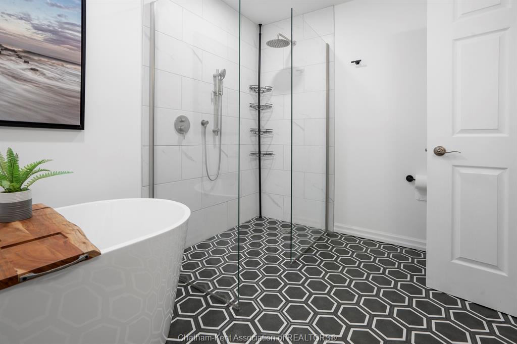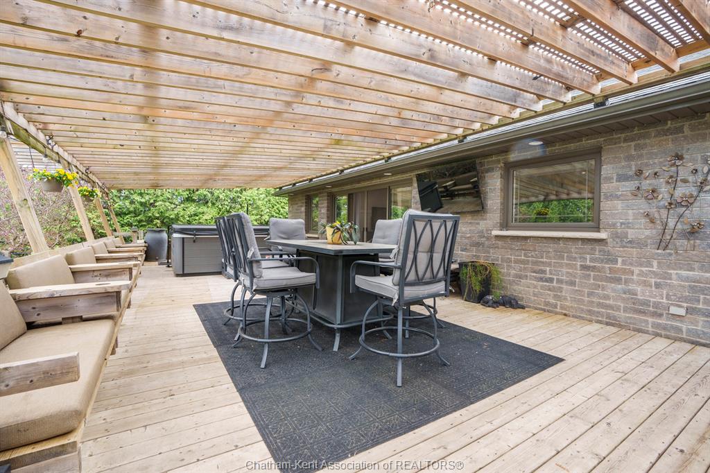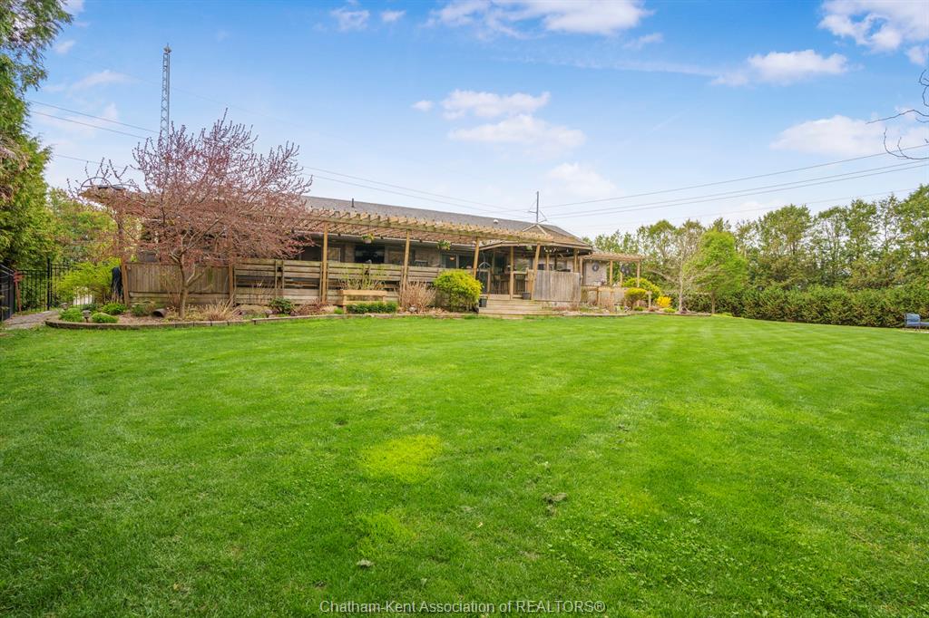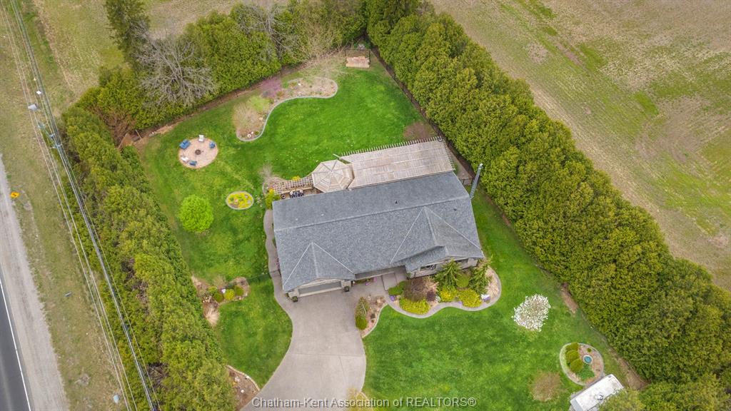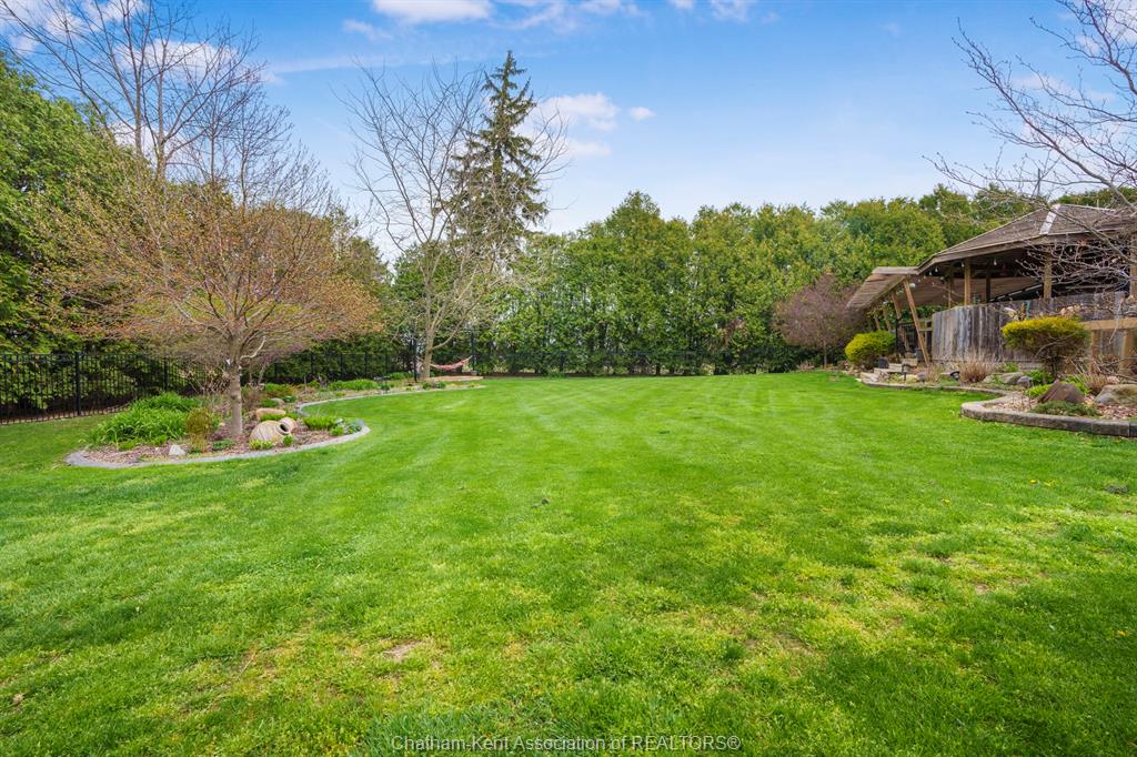 Welcome to your dream country escape! This all-brick rancher sits on just under 1 acre of private, cedar-wrapped land, offering 3 spacious bedrooms and 4 updated bathrooms. One of the main floor bathrooms features a luxurious freestanding soaker tub and heated floors for ultimate comfort. A double-car attached garage adds convenience, while the fully finished massive basement offers endless storage and living space. Relax or entertain on the expansive covered patio, complete with an outdoor kitchen style and bbq setup, perfect for summer evenings. The fully fenced yard and scenic walking path around the home create a peaceful retreat. Surrounded by towering cedars for seclusion, this property combines privacy, modern updates, and country charm all in one beautiful package. Don’t miss this rare opportunity to enjoy the best of rural living with all the comforts of home! This home is located on the southside of chatham only seconds from hwy 401.