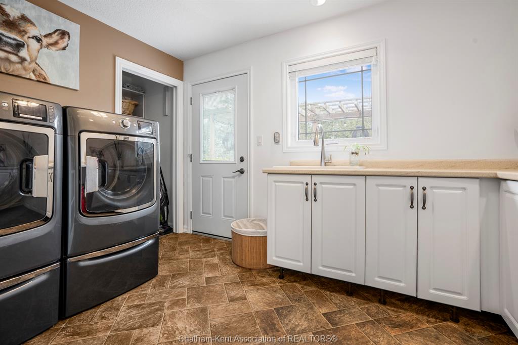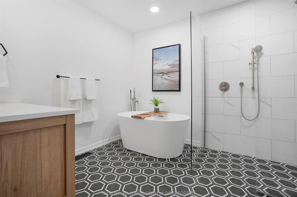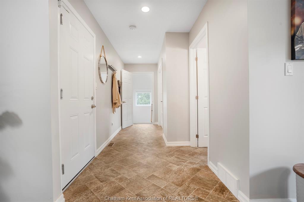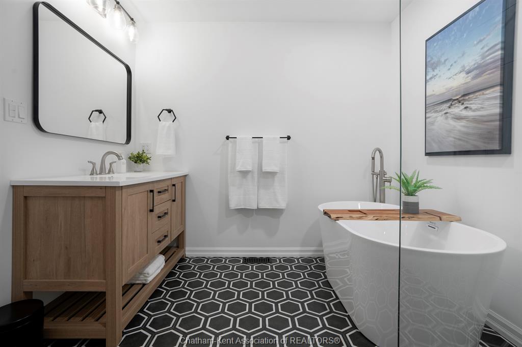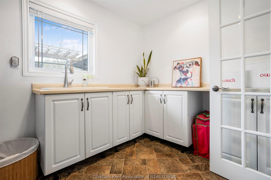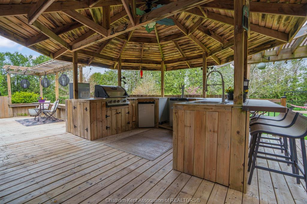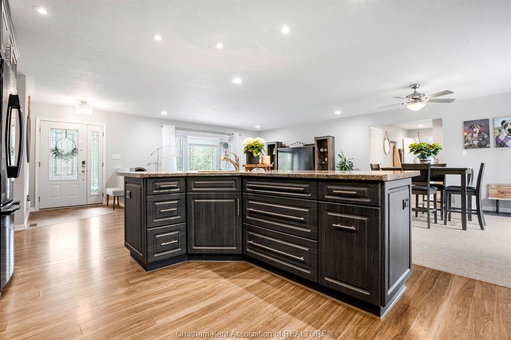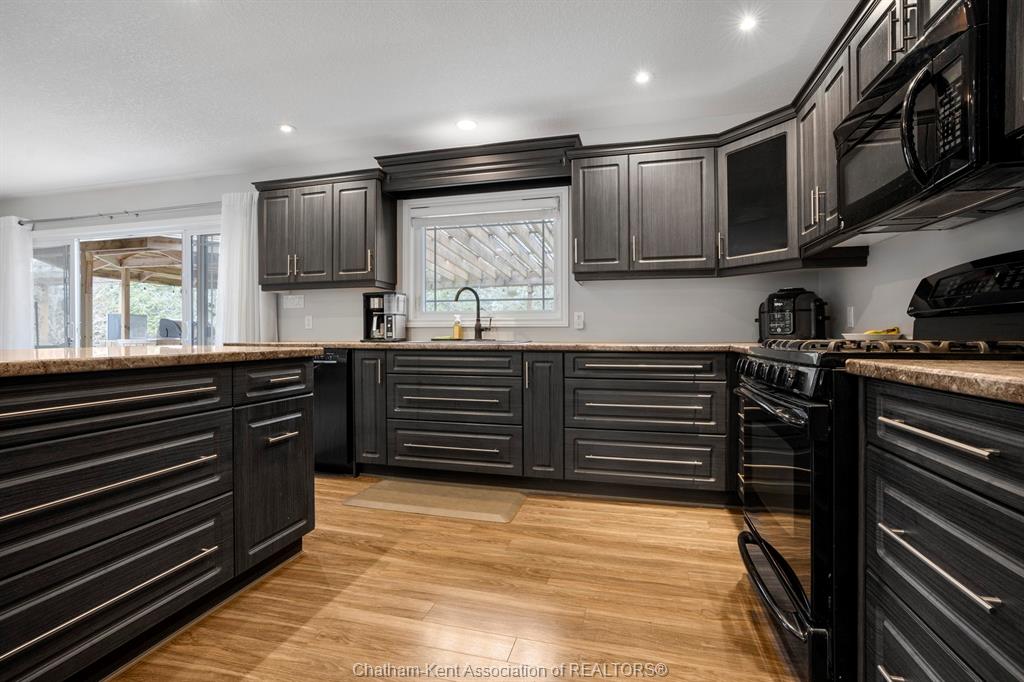 Welcome to your dream country escape! This all-brick rancher sits on just under 1 acre of private, cedar-wrapped land, offering 3 spacious bedrooms and 4 updated bathrooms. One of the main floor bathrooms features a luxurious freestanding soaker tub and heated floors for ultimate comfort. A double-car attached garage adds convenience, while the fully finished massive basement offers endless storage and living space. Relax or entertain on the expansive covered patio, complete with an outdoor kitchen style and bbq setup, perfect for summer evenings. The fully fenced yard and scenic walking path around the home create a peaceful retreat. Surrounded by towering cedars for seclusion, this property combines privacy, modern updates, and country charm all in one beautiful package. Don’t miss this rare opportunity to enjoy the best of rural living with all the comforts of home! This home is located on the southside of chatham only seconds from hwy 401.