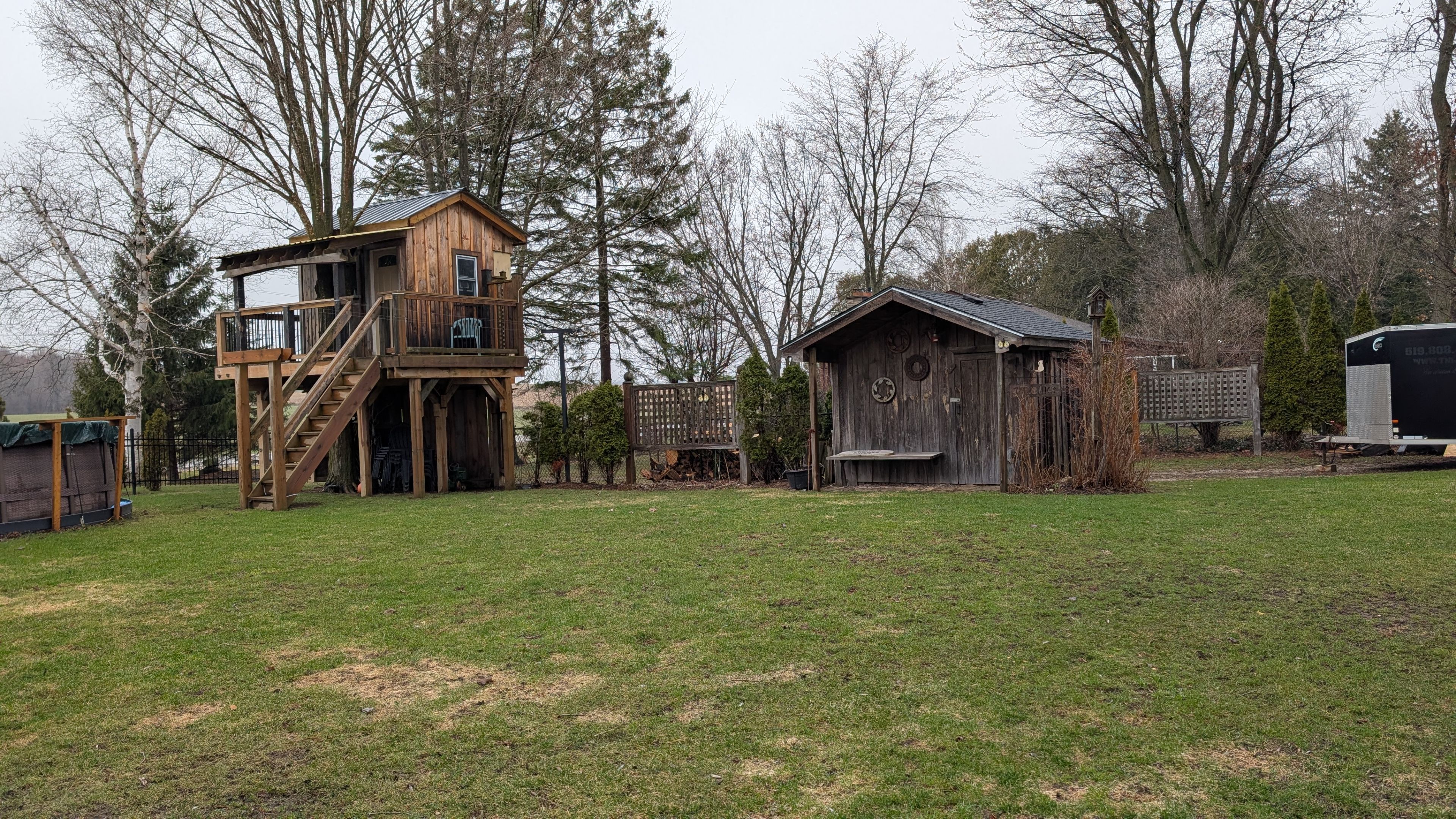 • Unique treehouse and spacious shop workshop ideal for creativity and projects.
