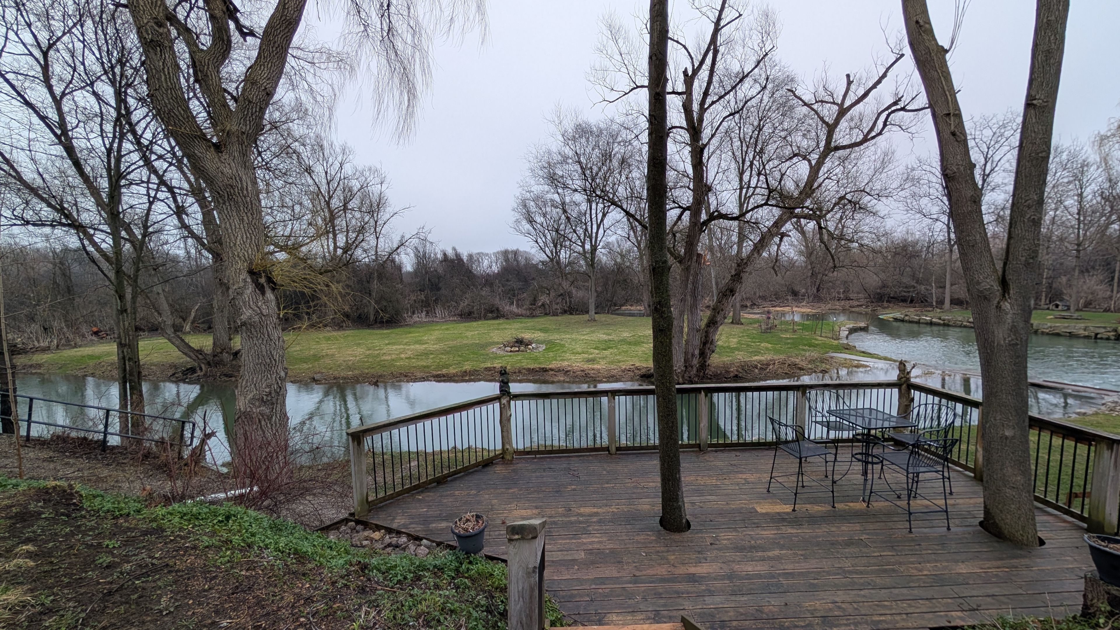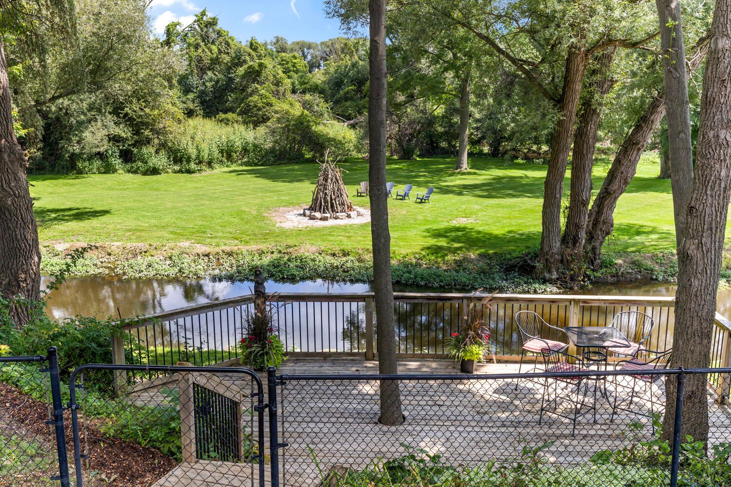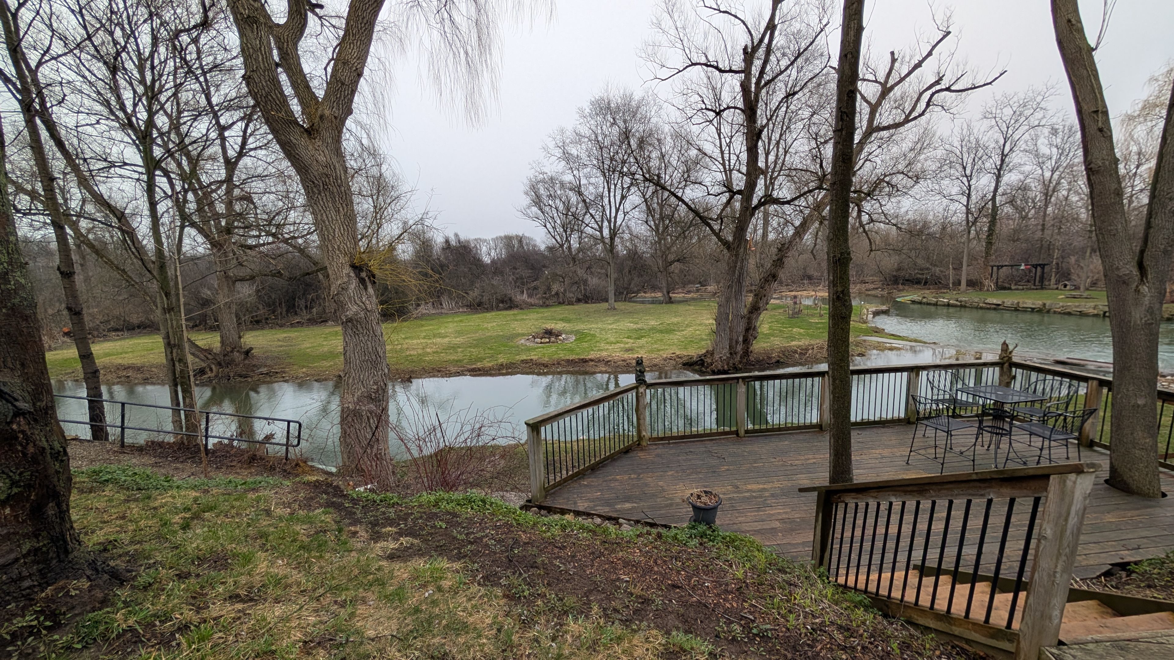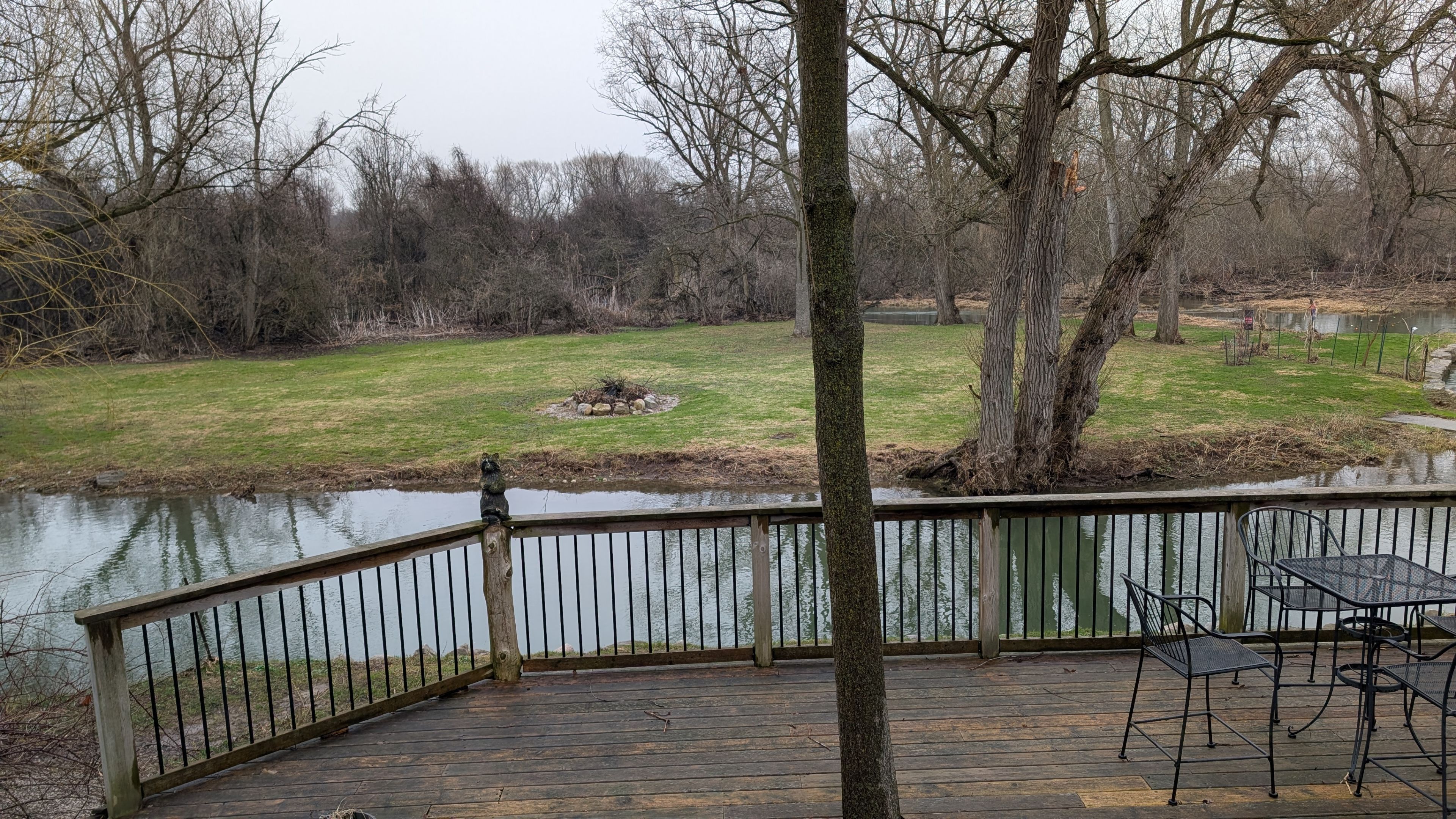• Oversized sundeck offers picturesque views of the creek and trees for relaxation.