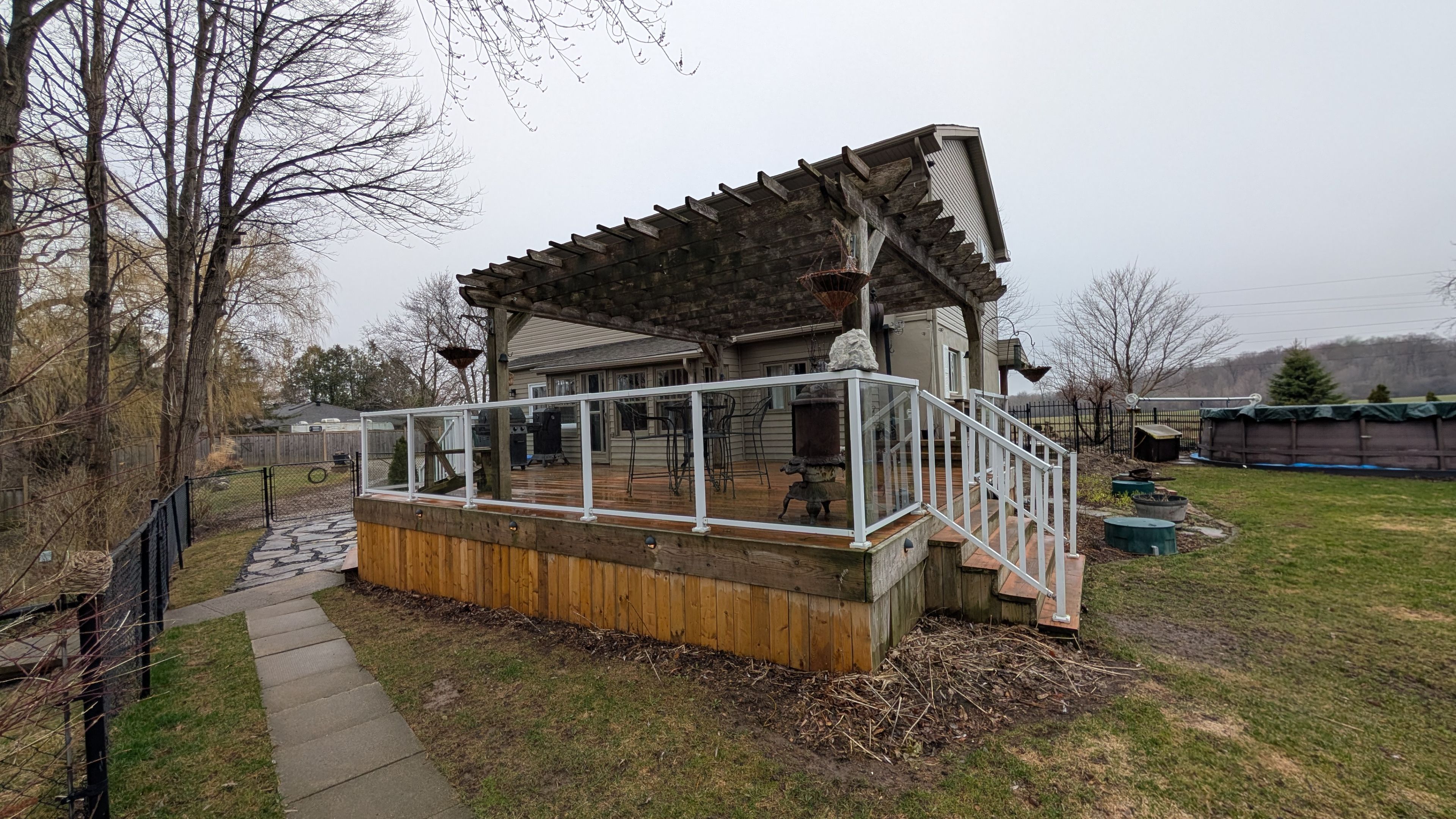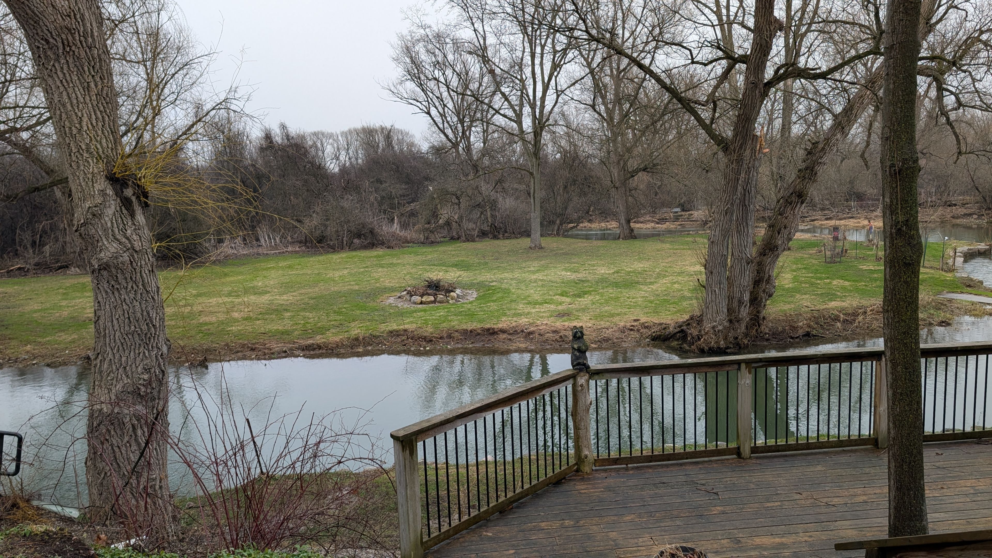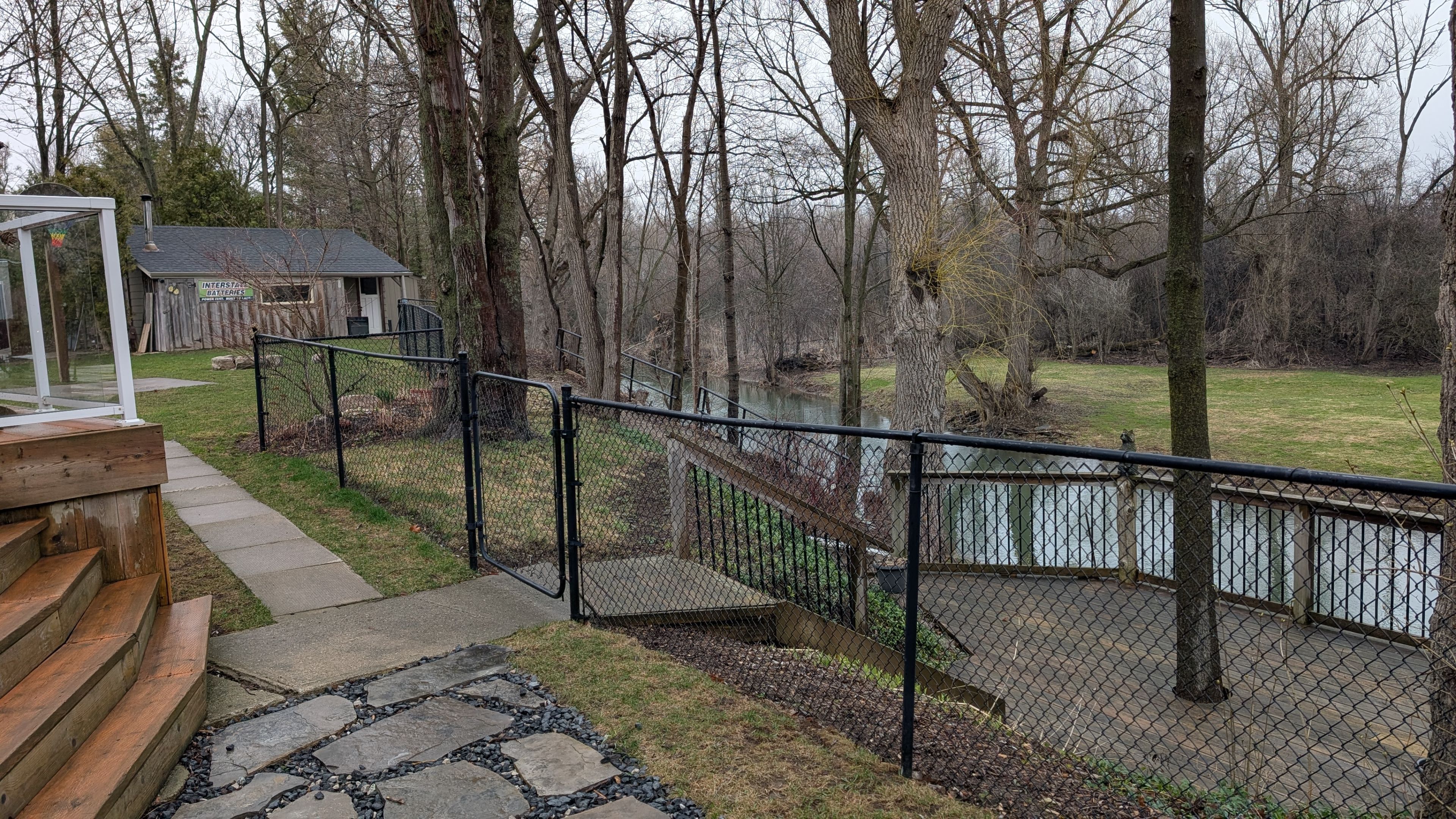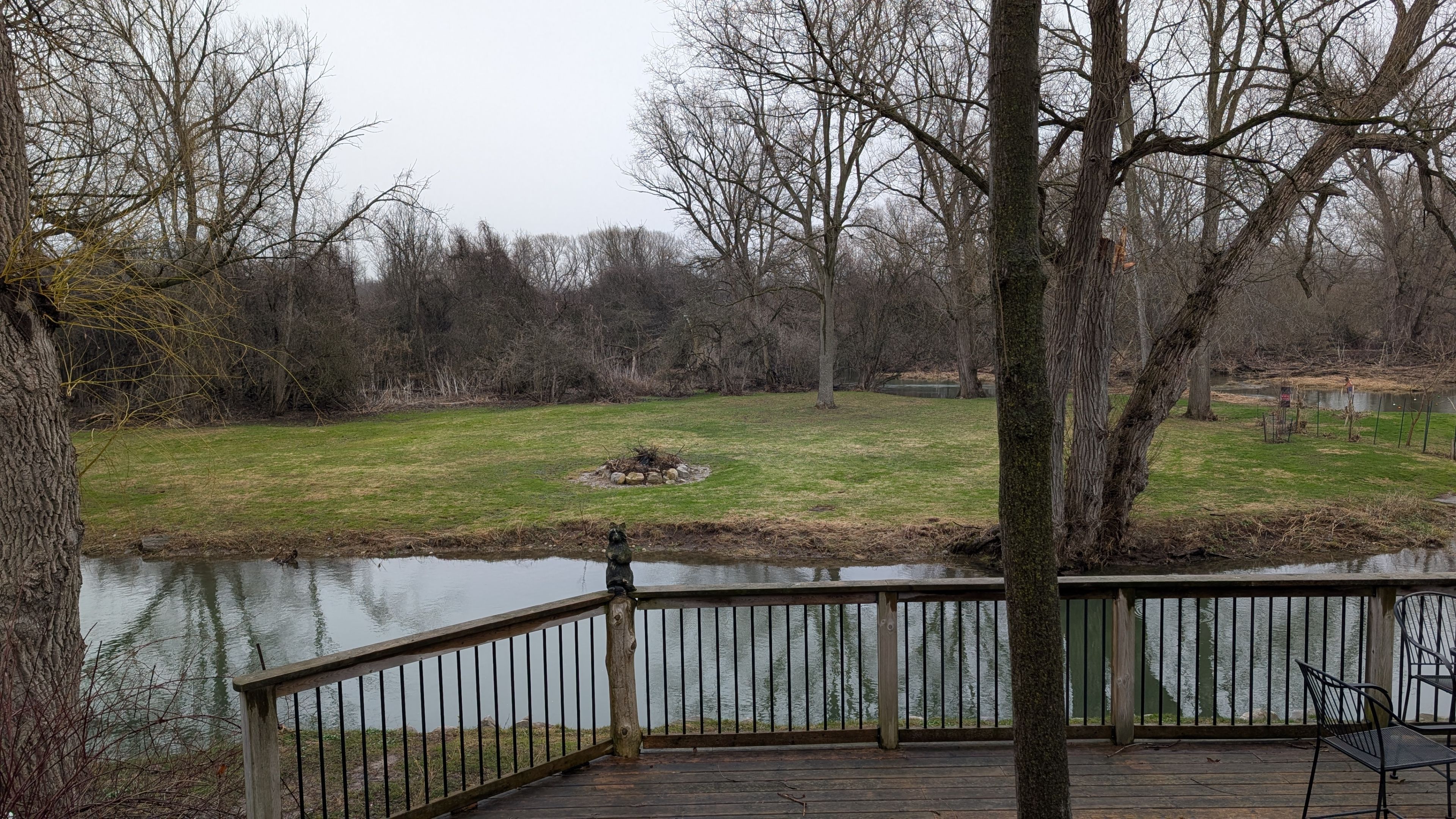 • Oversized sundeck offers picturesque views of the creek and trees for relaxation.