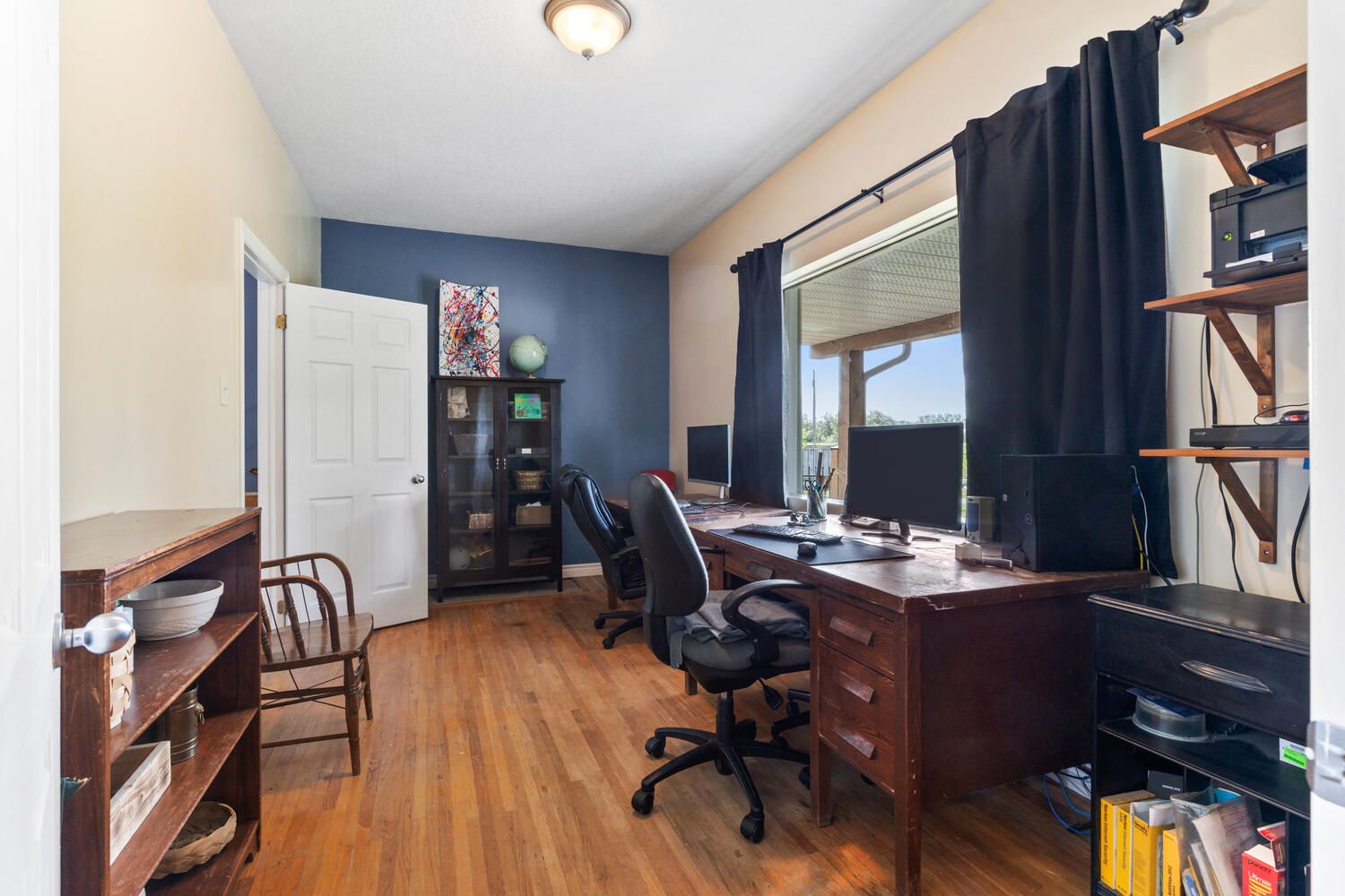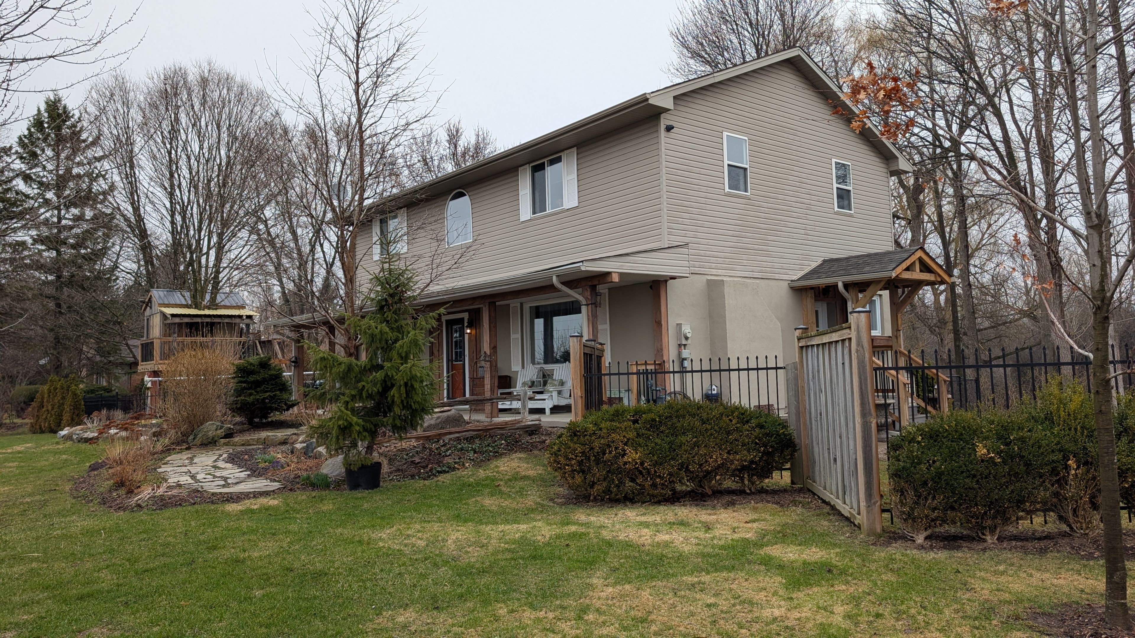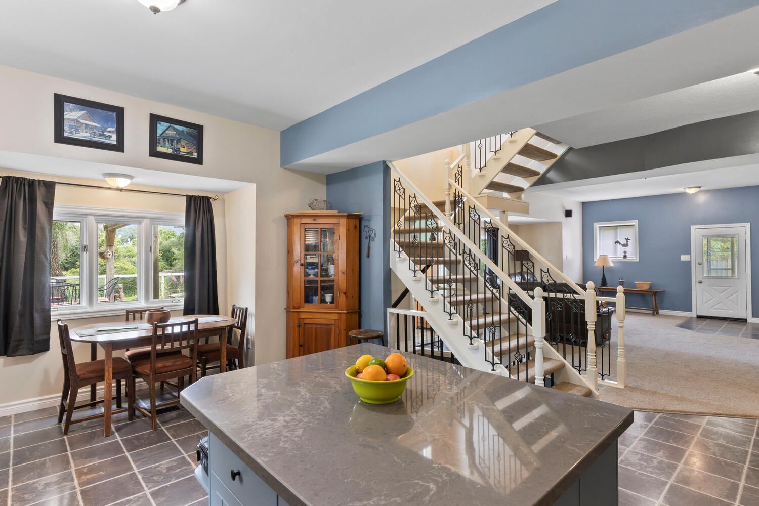 The perfect balance of nature and convenience. Experience the best of both worlds on this exceptional 1. 57-acre property, where serene country living is ashort drive to urban convenience. Backing onto a picturesque creek, the property features an oversized sundeck overlooking a quiet creek and trees-what a great spot for your morning coffee! Inside, the home the large country kitchen offers abundant storage and workspace, while the open-concept living area provides another view of the backyard. A dedicated main-floor office ensures a quiet, professional environment for remote work. The upper level has three generous bedrooms, including a primary with a walk-in closet and the potential to add a private ensuite. Oversized main bathroom with soaker tub. The lower level adds additional living space with a cozy family room with an electric fireplace, plus a flexible walk-out room ideal for a guest suite or hobby space. And don't forget all the room for storage! Exterior highlights:the treehouse: a unique, recently built structure perfect for a creative studio or guest getaway. The shop: a 16' x 24' garage/workshop for the dedicated hobbyist. Accessibility: dual driveways provide effortless parking for multiple vehicles.