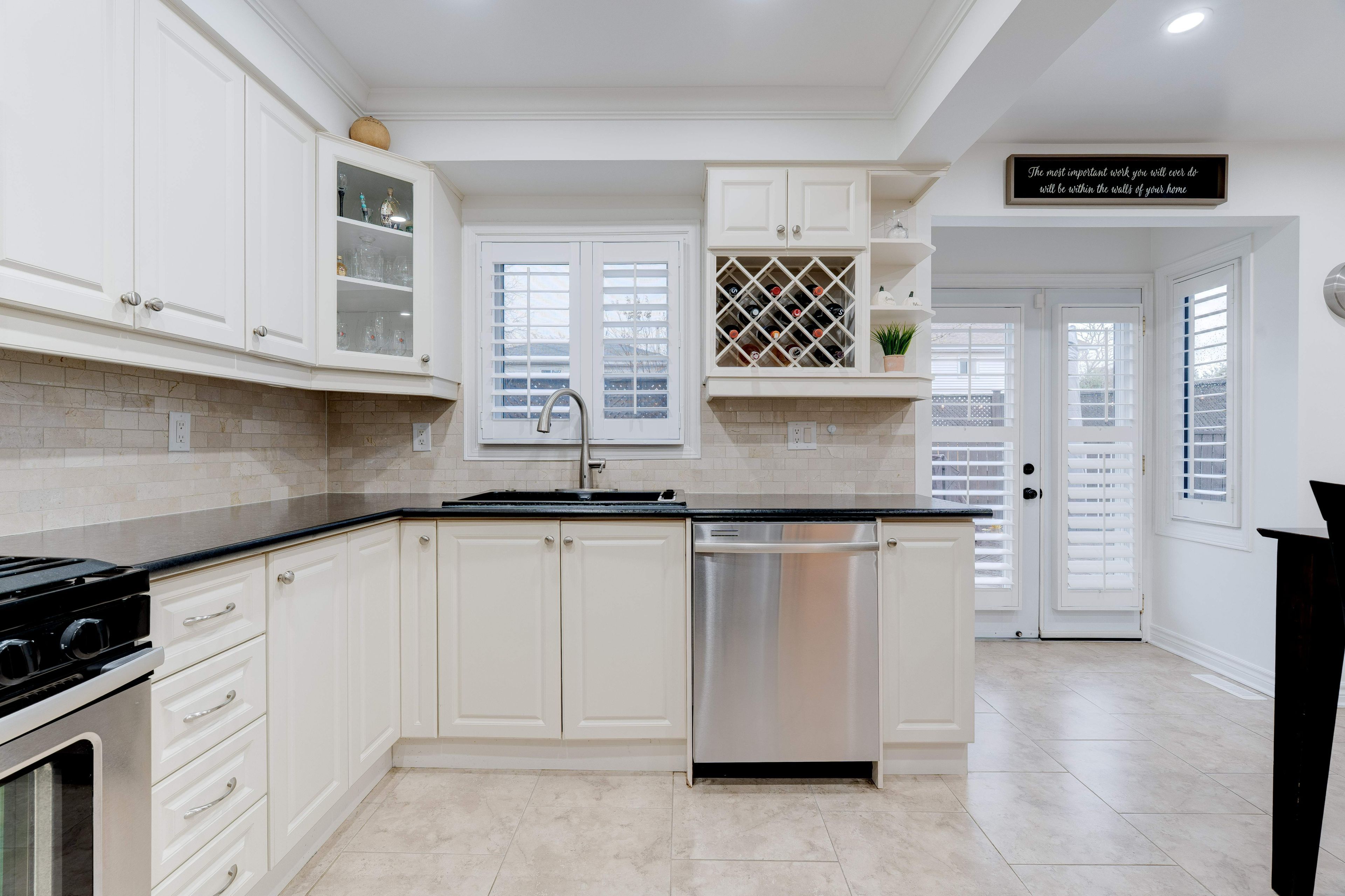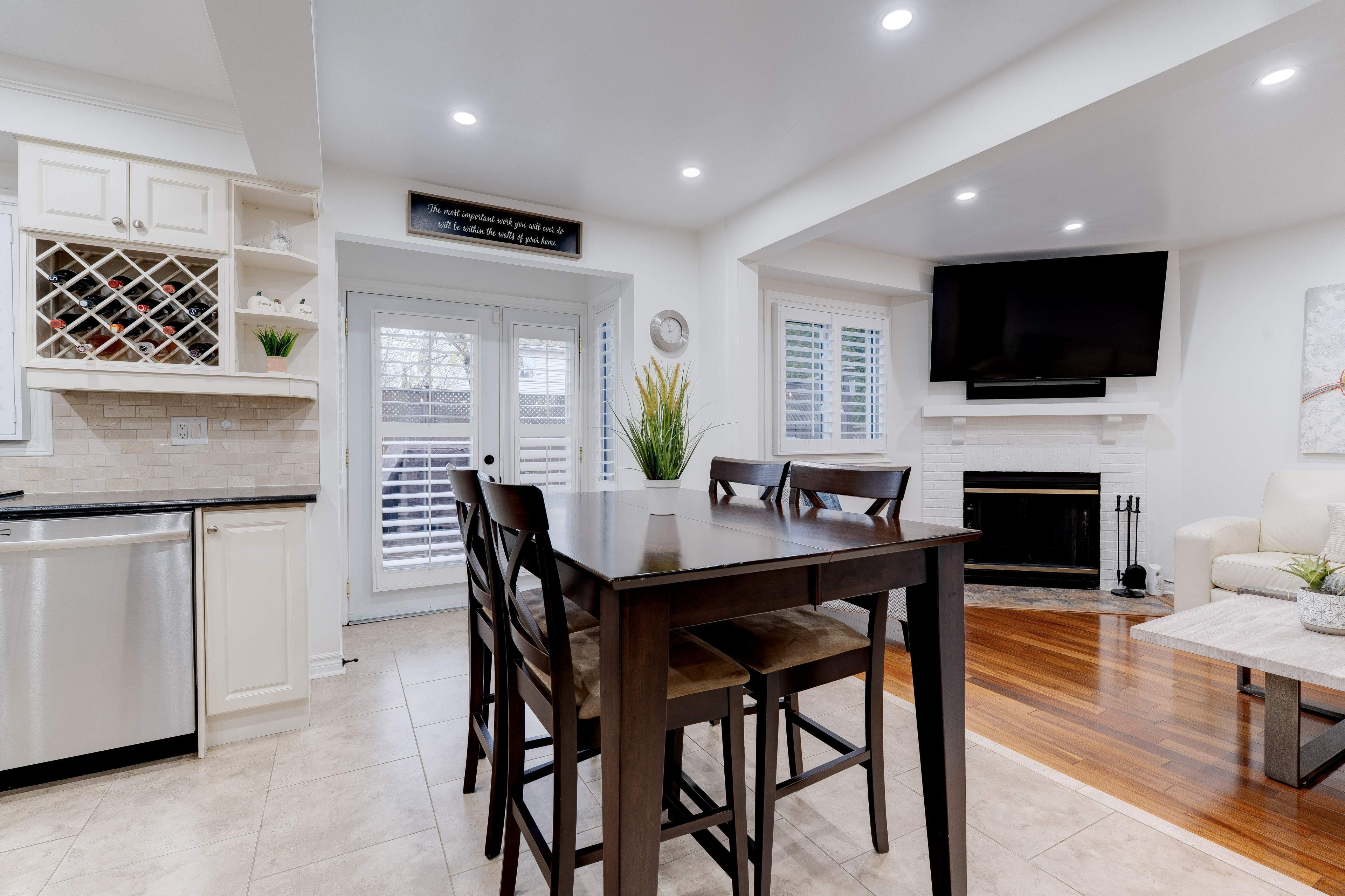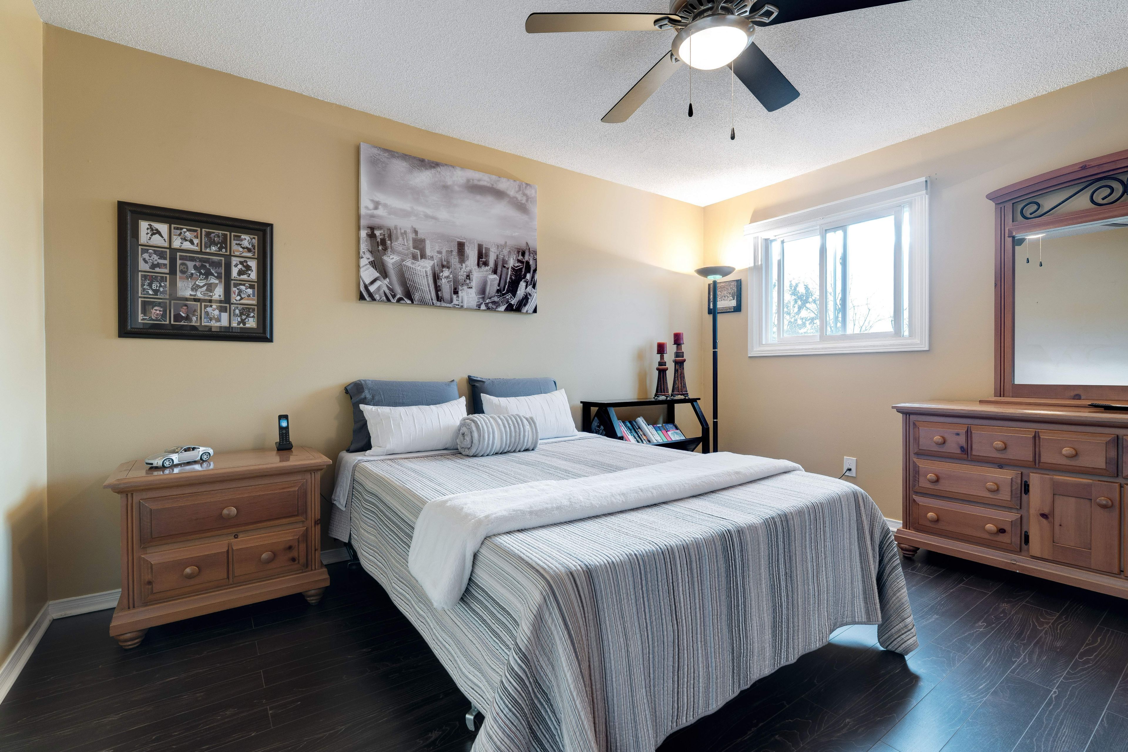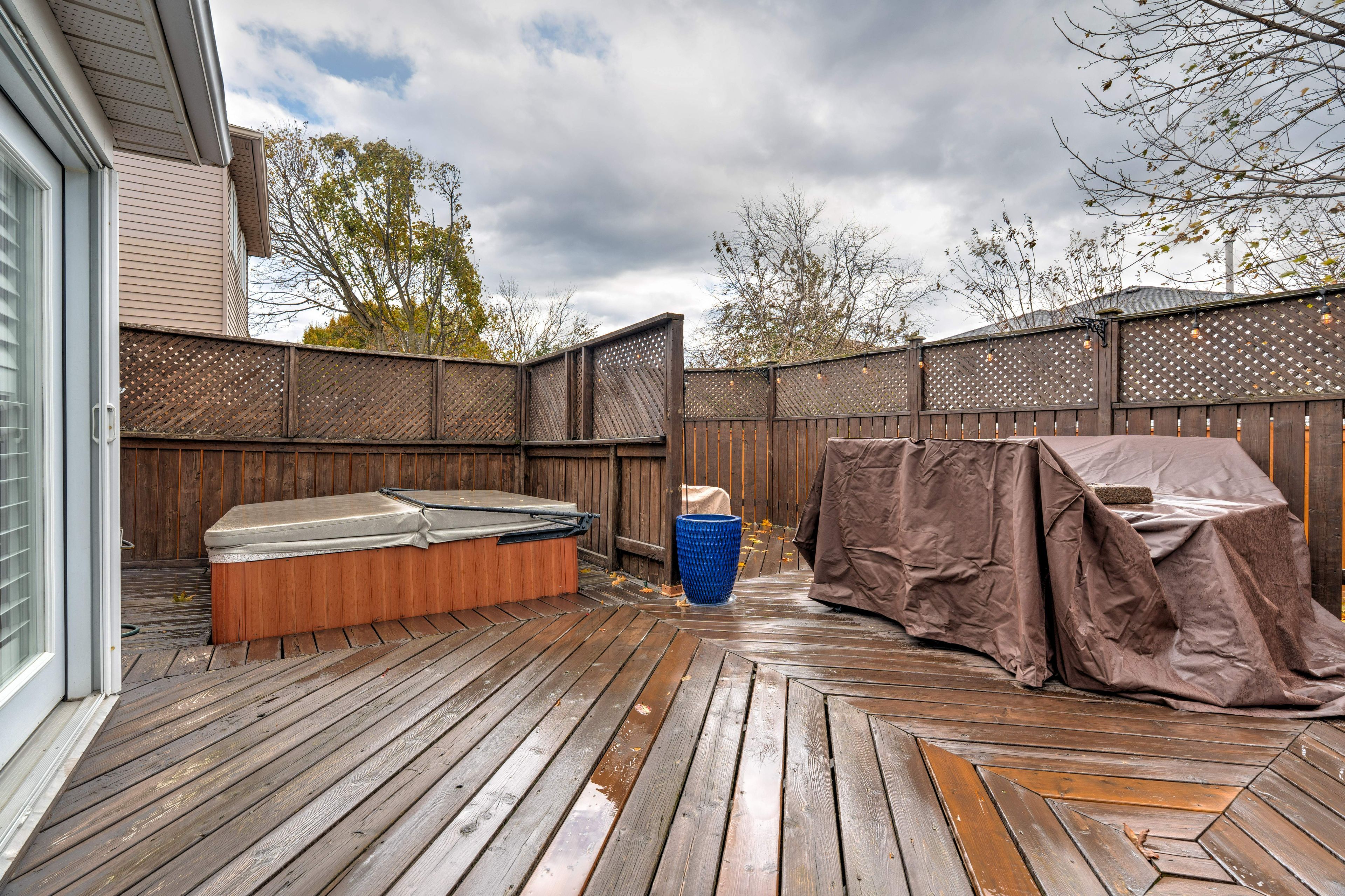 Welcome to this well maintained three bedroom home ideally situated on a quiet, family friendly cul-de-sac. As you step into the foyer, you are greeted by a sun filled living room and dining room. The main floor continues with an open concept kitchen and great room with woodburning fireplace; perfect for every day living and entertaining. Upstairs features three spacious bedroom, including a primary suite with its own en suite bath and walk in closet. The finish lower level provides a generous recreation room and a separate office area. Step outside to a private, oversize deck ideal for relaxing or hosting family and friends. This home is located close to top rated schools, walking distance to many amenities including shopping, schools, parks, bus access, restaurants, close to golf courses and easily accessible to qew/407