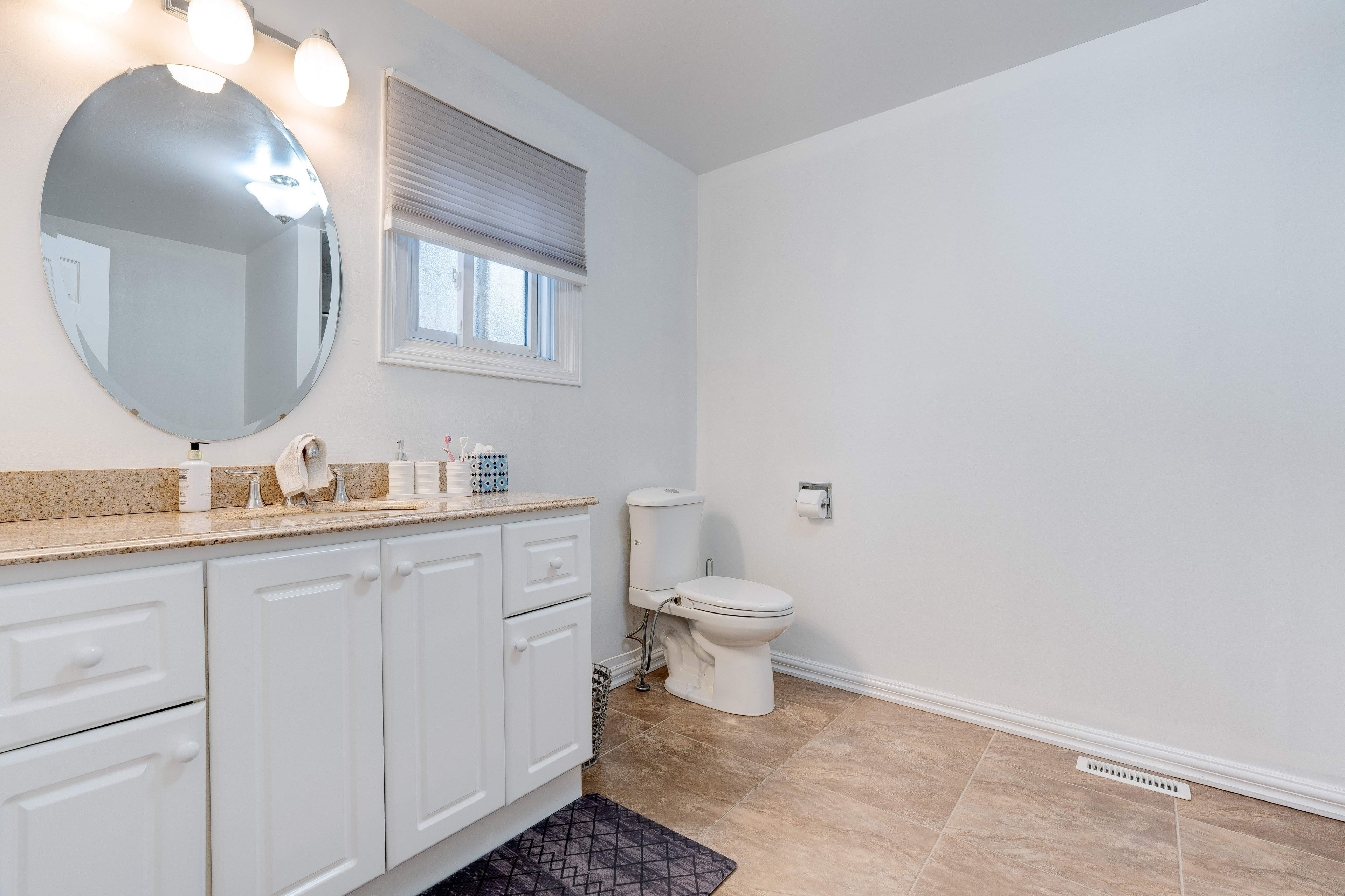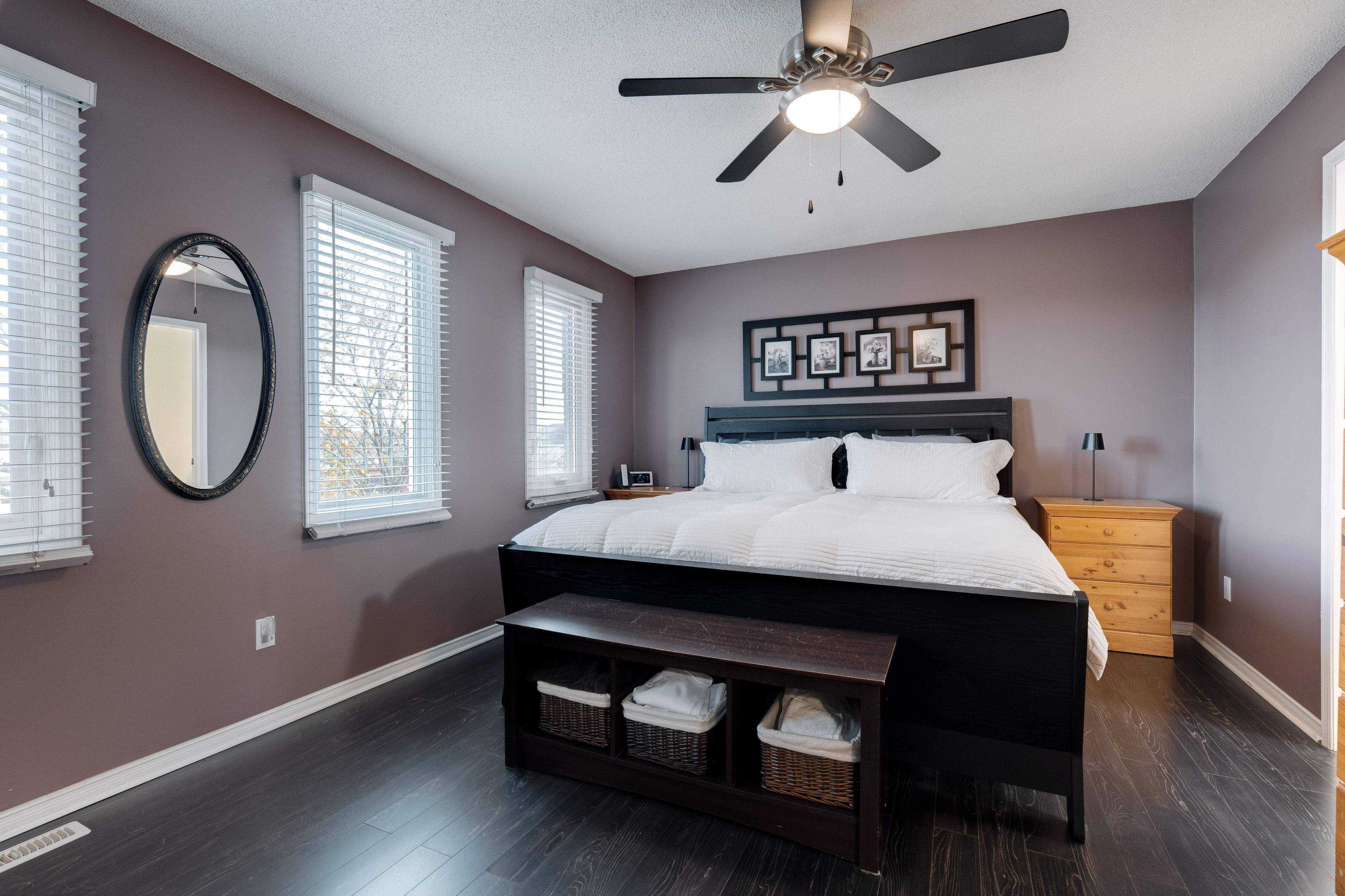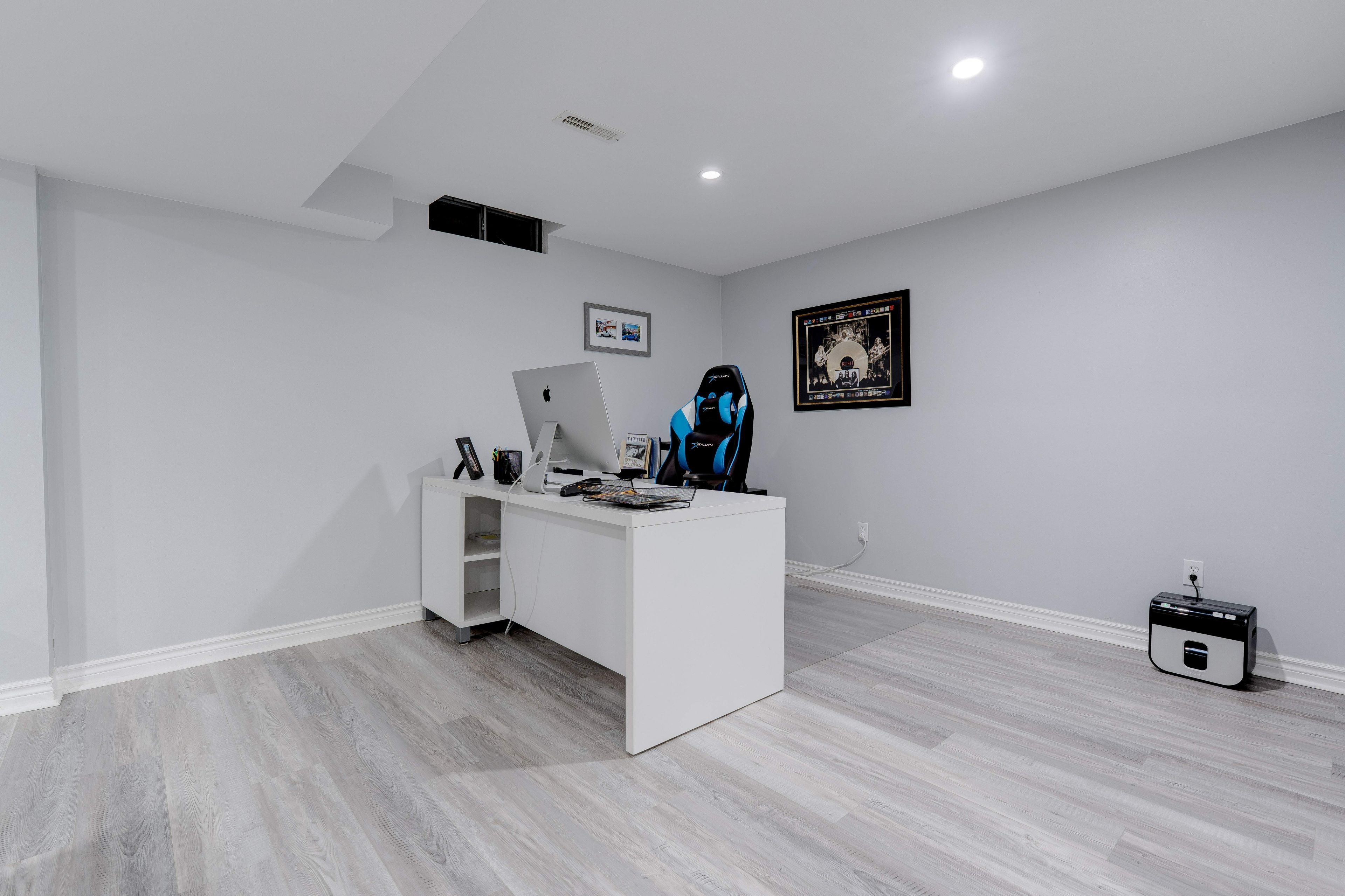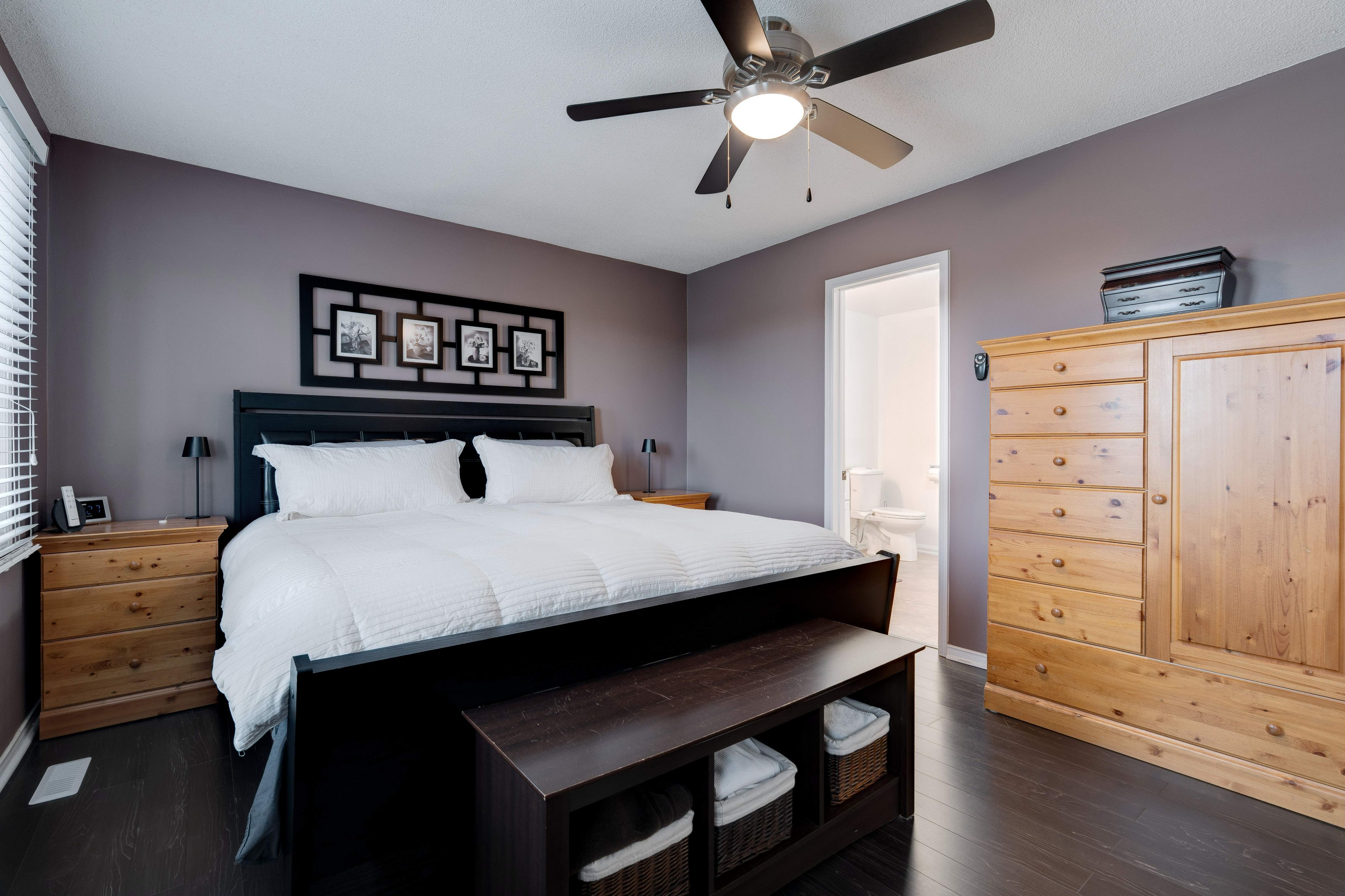 Welcome to this well maintained three bedroom home ideally situated on a quiet, family friendly cul-de-sac. As you step into the foyer, you are greeted by a sun filled living room and dining room. The main floor continues with an open concept kitchen and great room with woodburning fireplace; perfect for every day living and entertaining. Upstairs features three spacious bedroom, including a primary suite with its own en suite bath and walk in closet. The finish lower level provides a generous recreation room and a separate office area. Step outside to a private, oversize deck ideal for relaxing or hosting family and friends. This home is located close to top rated schools, walking distance to many amenities including shopping, schools, parks, bus access, restaurants, close to golf courses and easily accessible to qew/407