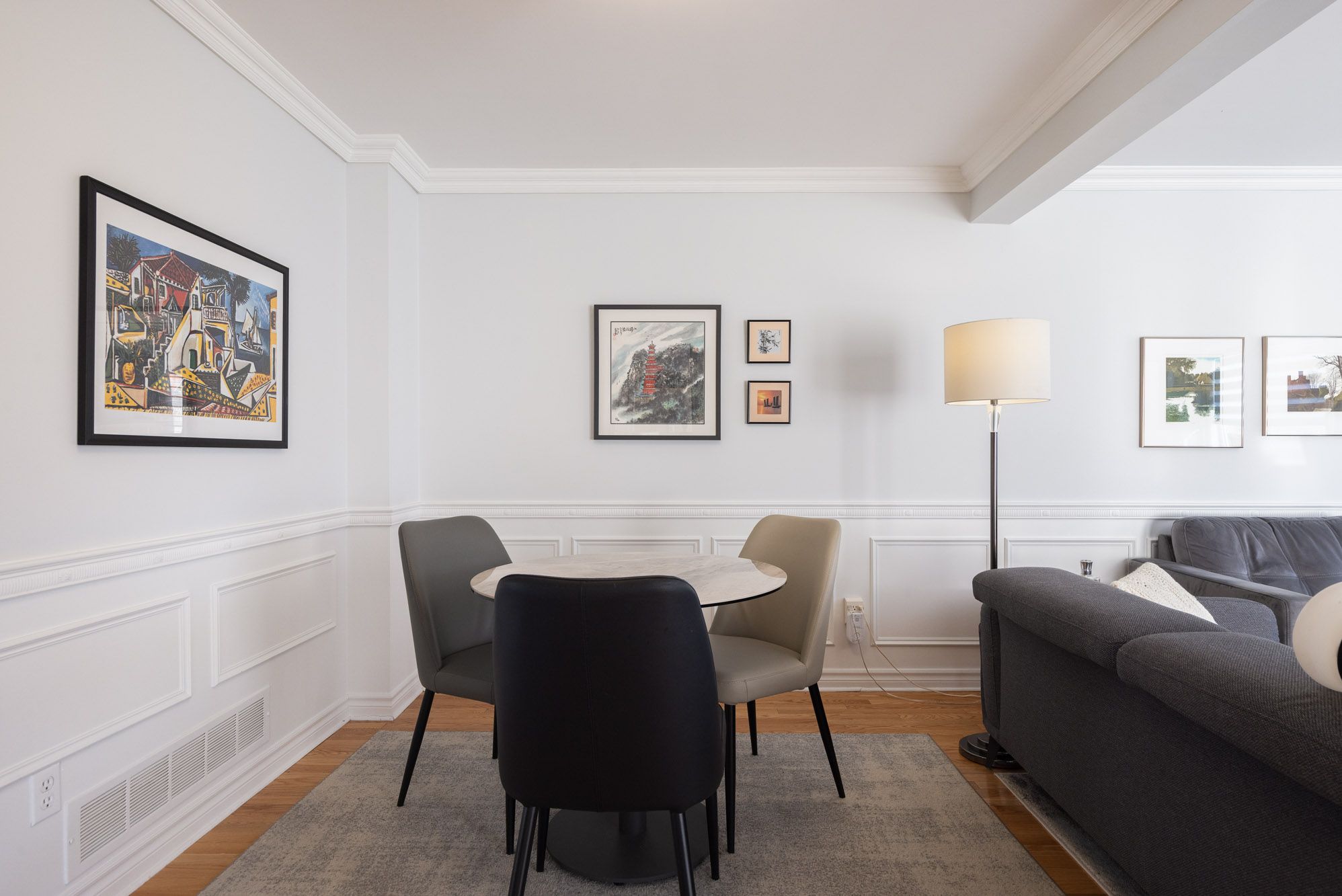 • Cozy gas fireplace and quality hardwood flooring throughout main level.