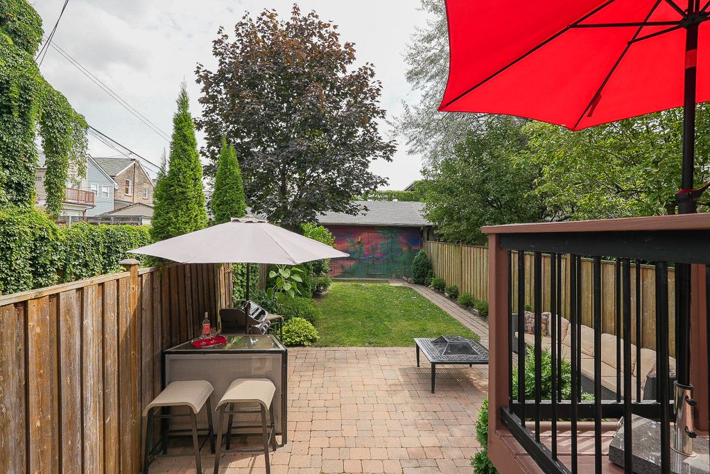 • Private backyard oasis with deck, patio, and green space for relaxation.