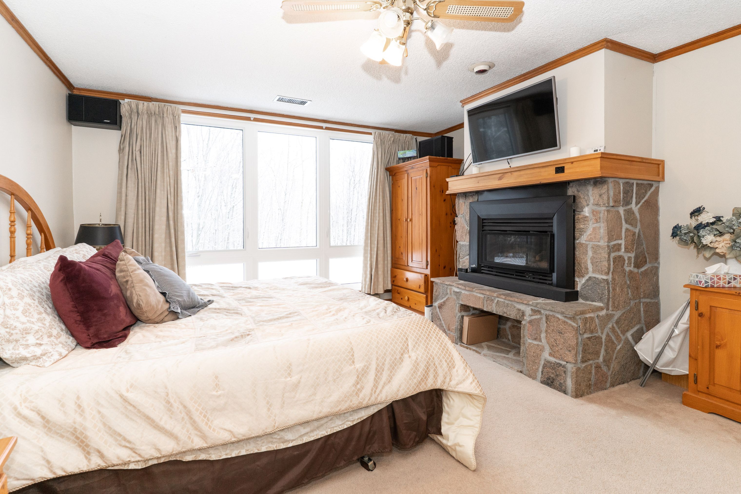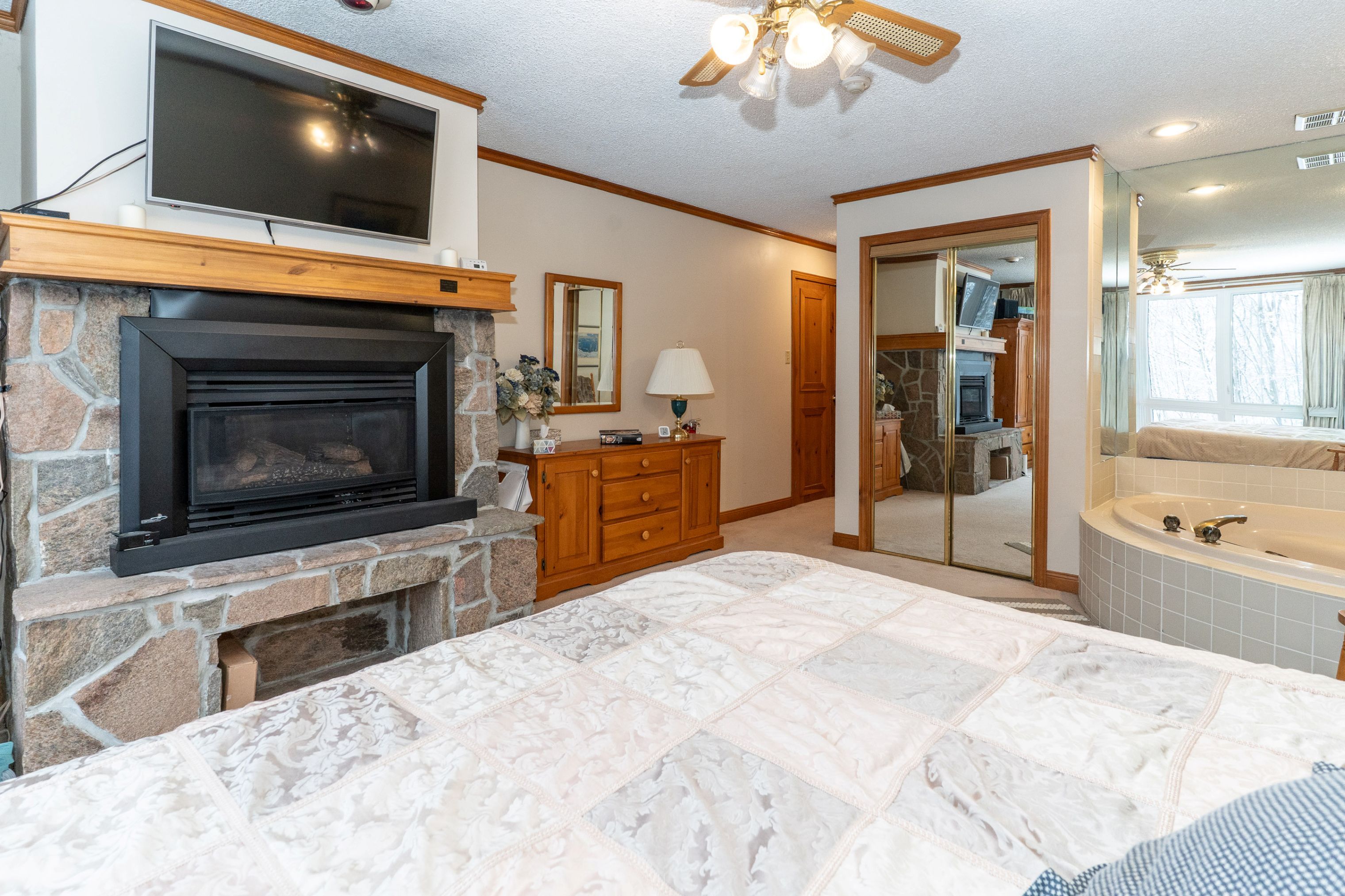 Embrace the ultimate resort lifestyle on peninsula lake wake up to breathtaking lake views from this private luxury waterfront condominium nestled on the prestigious grounds of deerhurst resort. This two-bedroom, two-bathroom retreat spans an impressive 1,518 square feet of thoughtfully designed living space where comfort meets sophistication. Step inside to discover an inviting living room anchored by a cozy natural gas fireplace, perfect for those crisp muskoka evenings. The kitchen features a convenient sit-up bar that flows seamlessly into a separate dining area, ideal for entertaining guests. Perhaps the most captivating space is the sun room and covered deck area, offering panoramic views of peninsula lake that will leave you speechless every single morning. There is direct access from the deck to a large grassed area that overlooks the lake. The generous primary bedroom serves as your personal sanctuary, complete with its own natural gas fireplace and private ensuite bathroom. A second bedroom with full bathroom ensures guests enjoy their own comfortable retreat. This turnkey property comes fully furnished and includes designated parking and in-suite laundry. As a resident, you'll enjoy access to world-class amenities including indoor and outdoor pools, pristine beaches, scenic trails, two golf courses, and multiple dining options. Peninsula lake connects to over forty miles of boating adventures, allowing you to cruise directly into downtown huntsville. With arrowhead provincial park just minutes away and algonquin provincial park a short drive beyond, outdoor enthusiasts will find paradise here. Schedule your private showing today and discover why resort living changes everything.