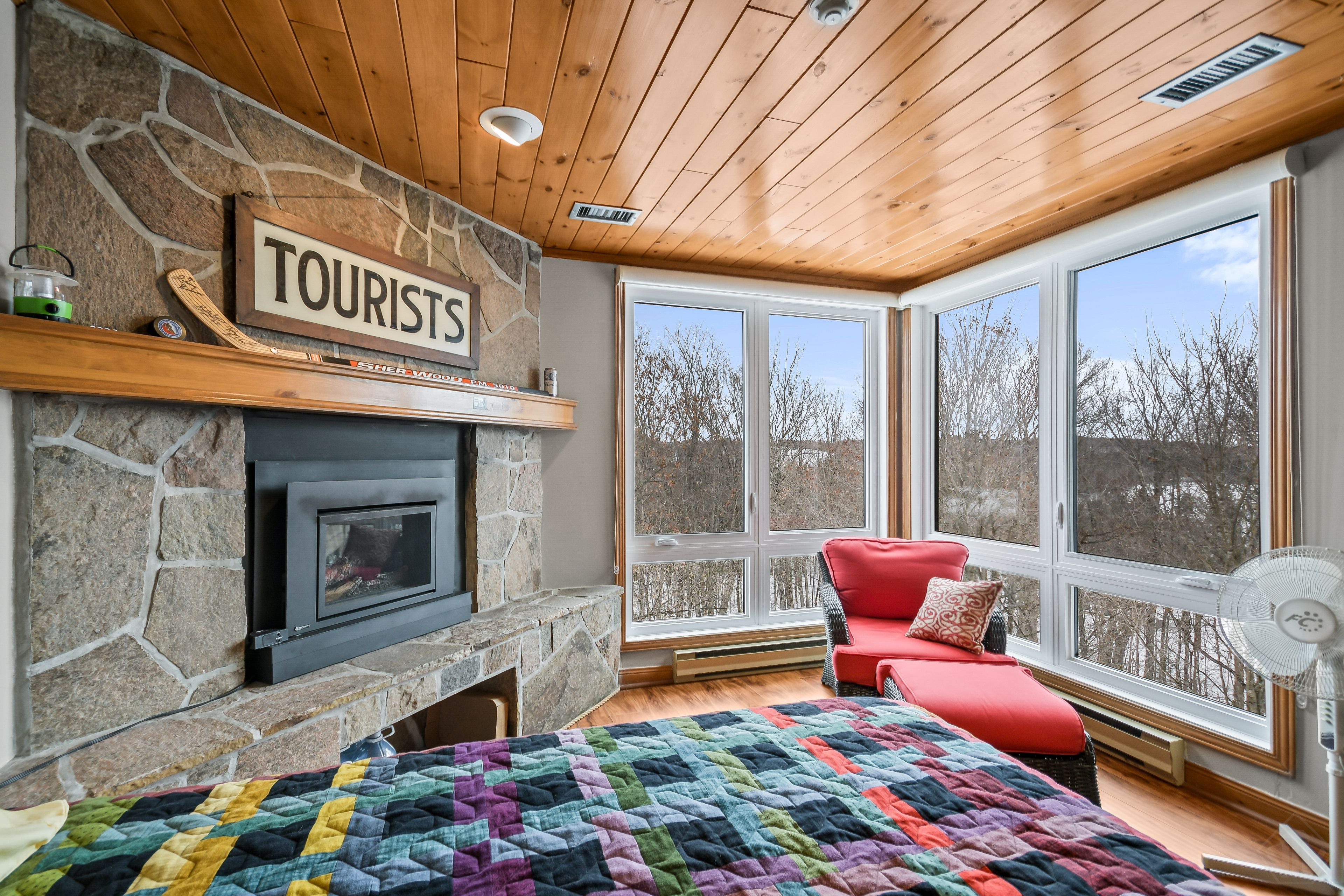 Top-floor condo with cottage charm at deerhurst resort. Experience the perfect blend of resort luxury and relaxed cottage living in this stunning top-floor 2-bedroom condo overlooking beautiful peninsula lake. With vaulted ceilings and a warm, inviting aesthetic, this residence offers an airy, open feel complemented by three cozy, granite gas fireplaces-creating the ultimate muskoka retreat for every season. This condo features two spacious bedrooms, each with its own private ensuite and gas fireplace, top-floor location hardwood floors throughout with tile accents in a quiet, well-maintained building. As part of the deerhurst property, enjoy full access to an incredible array of amenities; beachfront access on peninsula lake, outdoor pools, championship golf course, tennis and pickleball courts, cross-country skiing & skating, downhill skiing next door, scenic hiking trails, exceptional on-site dining and restaurants. Whether you're searching for a four-season getaway, investment opportunity, or full-time residence, this condo offers the rare opportunity to enjoy muskoka's natural beauty with unmatched resort amenities at your doorstep. Condos like this one do not come available often - don't miss out on this opportunity.