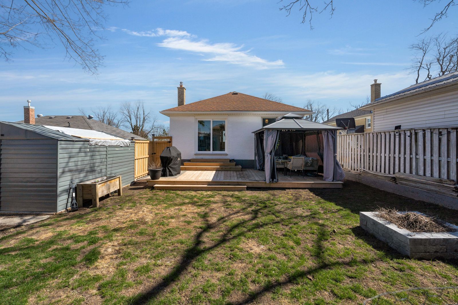 • Spacious backyard with a deck, ideal for barbecues and relaxation.