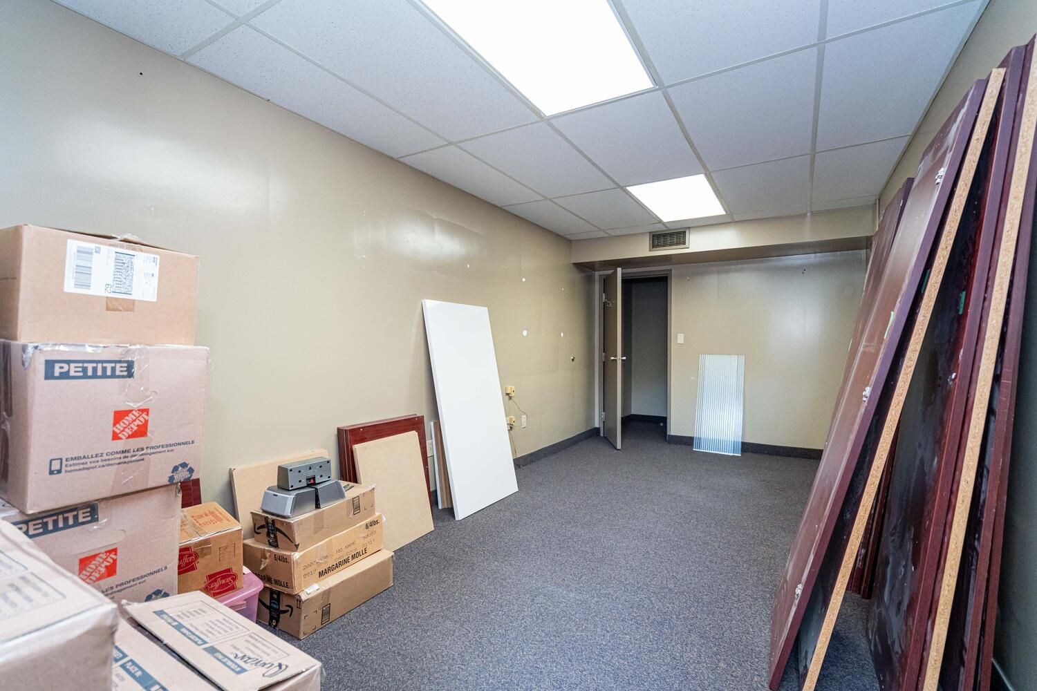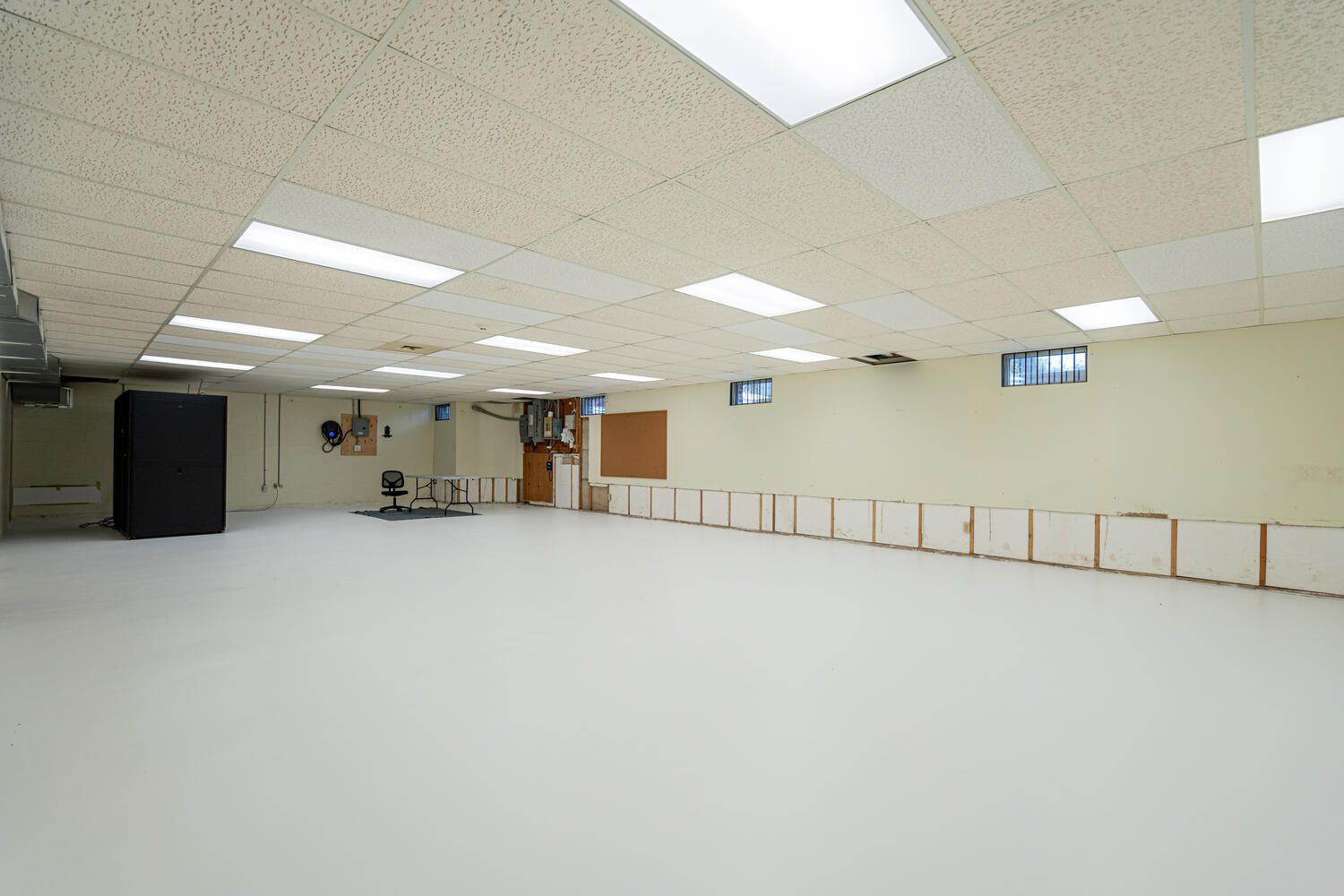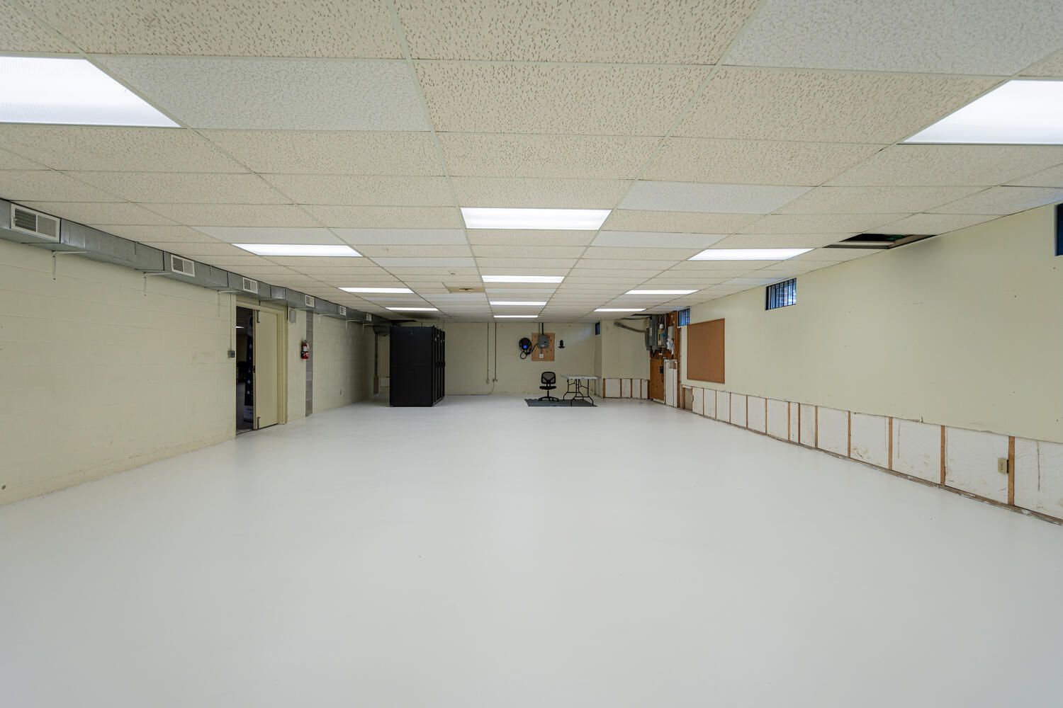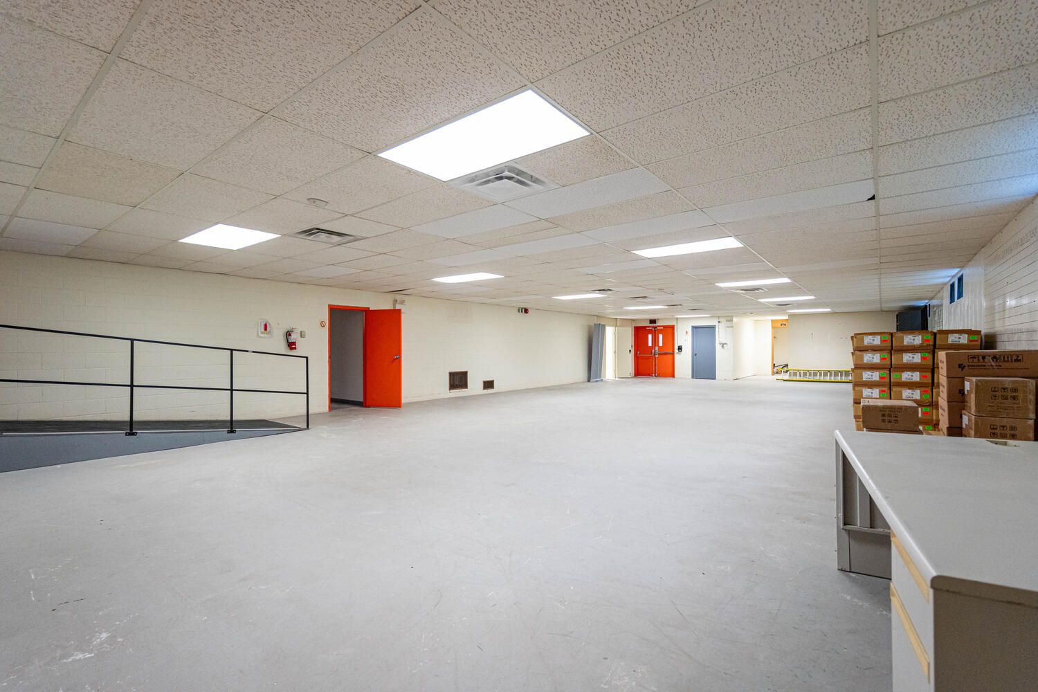 The main floor features a large reception area and lobby, a variety of private and general offices, a board room and 4 washrooms. There is a front and rear entrance. Floors : terrazzo, ceramic tile, carpet walls: painted gyproc ceilings: suspended ceiling tile trim: painted metal. The basement features two large open general office areas, a rear general office, lunch room with a kitchenette and mechanical rooms. Asphalt paved front and rear driveways. Asphalt paved front and rear parking lots. Exterior lighting, landscaped yards, including mature trees total land area is 0. 83 acres.