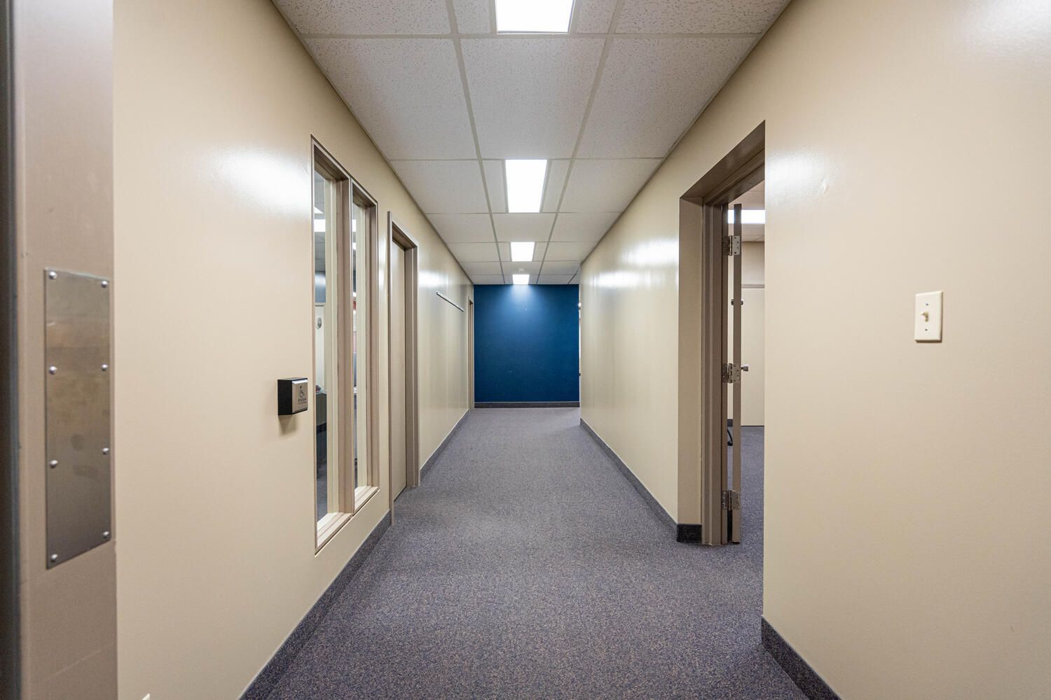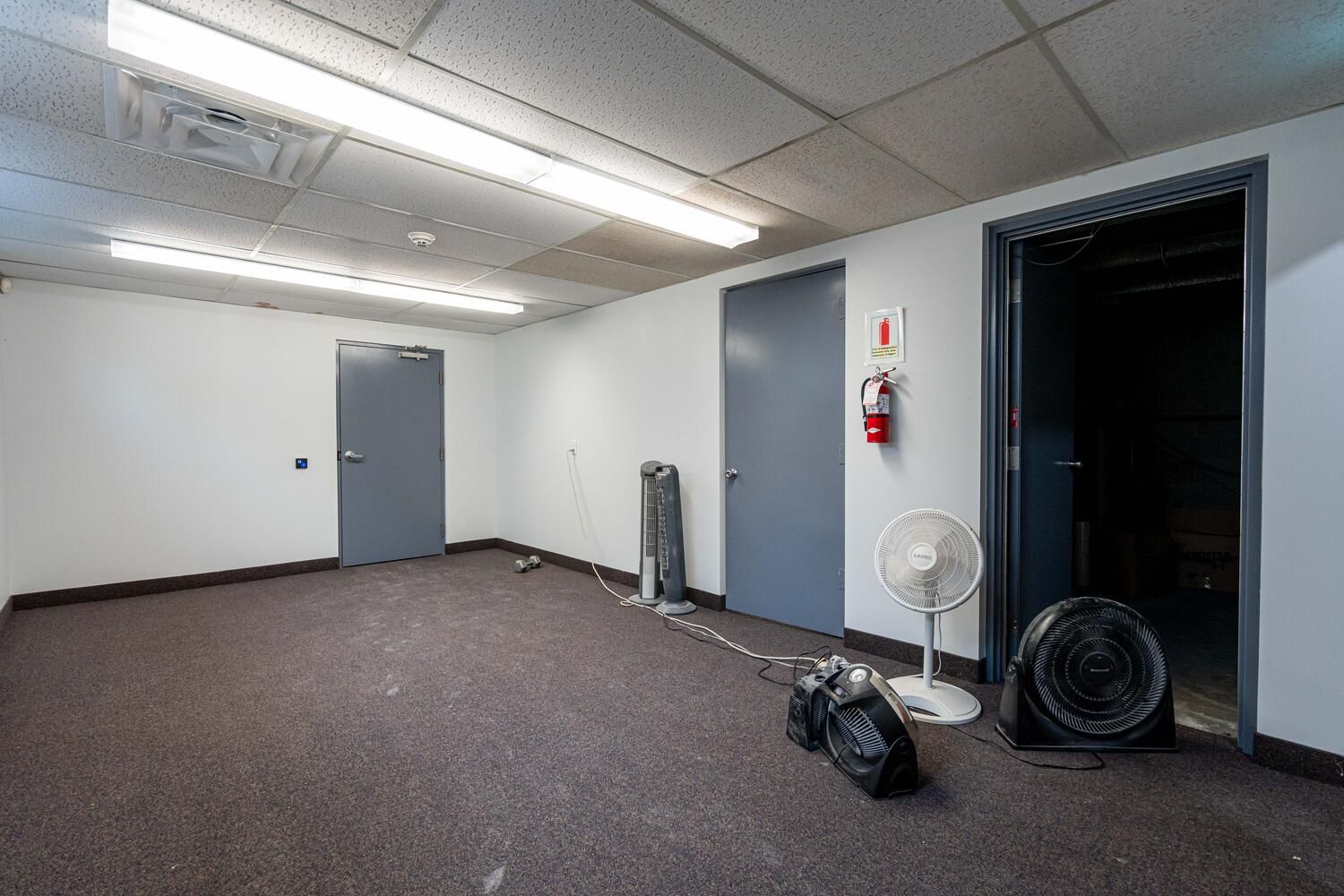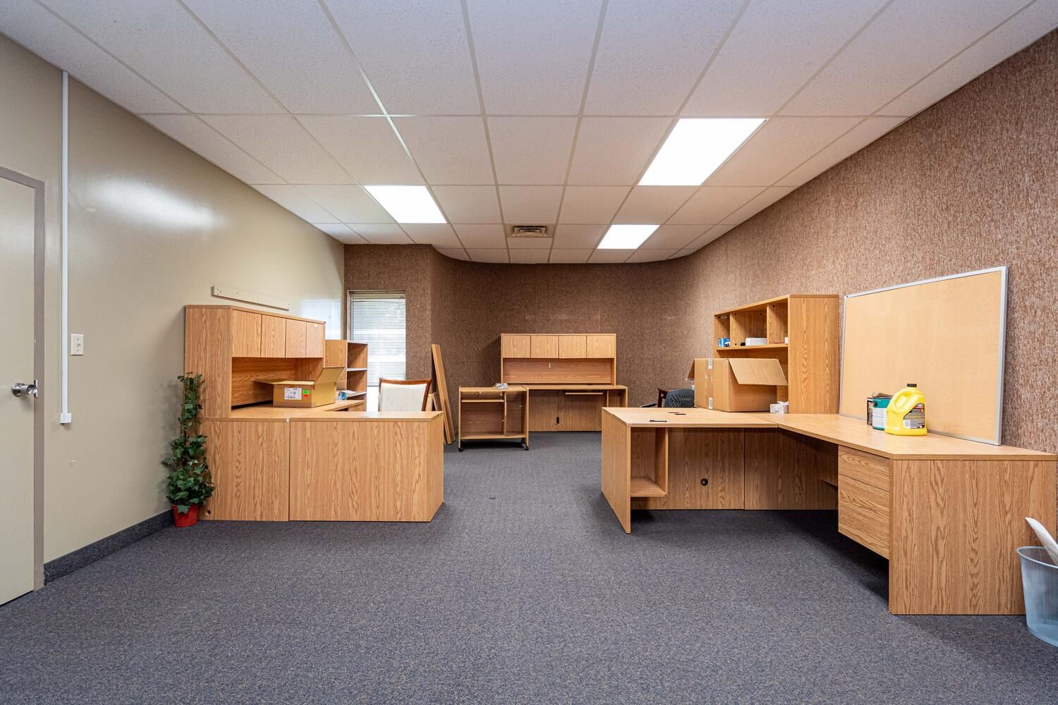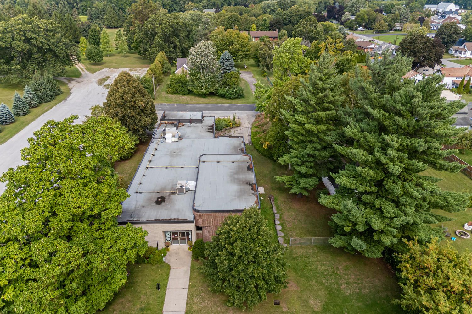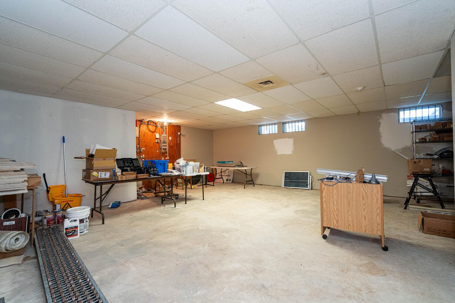 The main floor features a large reception area and lobby, a variety of private and general offices, a board room and 4 washrooms. There is a front and rear entrance. Floors : terrazzo, ceramic tile, carpet walls: painted gyproc ceilings: suspended ceiling tile trim: painted metal. The basement features two large open general office areas, a rear general office, lunch room with a kitchenette and mechanical rooms. Asphalt paved front and rear driveways. Asphalt paved front and rear parking lots. Exterior lighting, landscaped yards, including mature trees total land area is 0. 83 acres.
