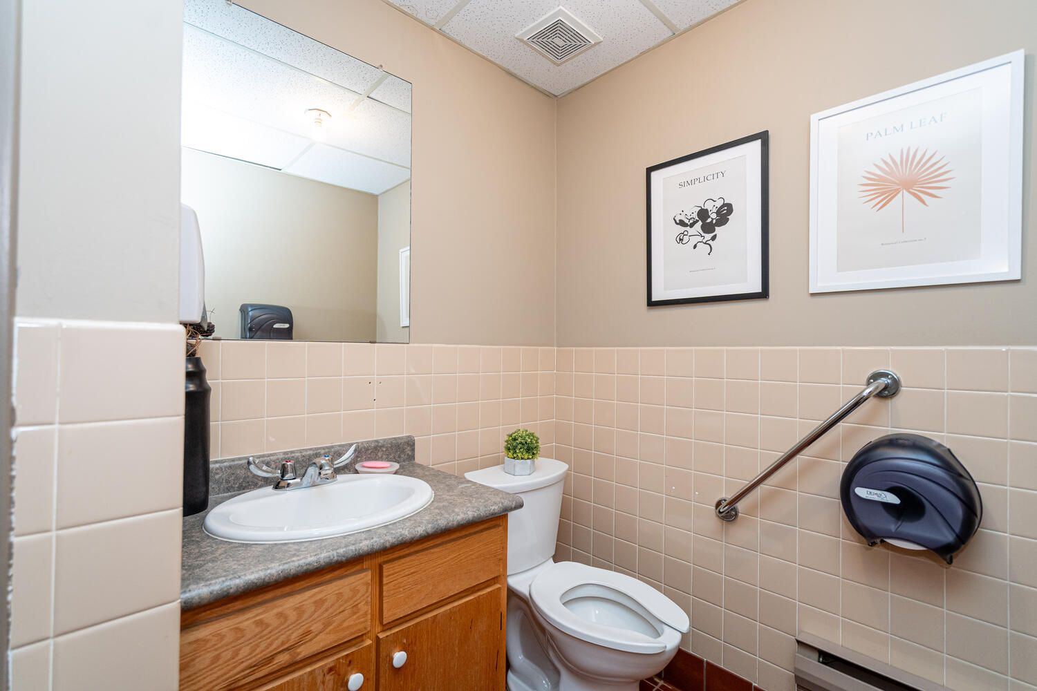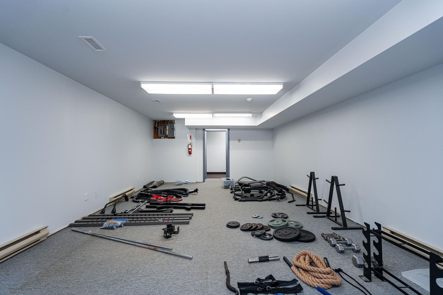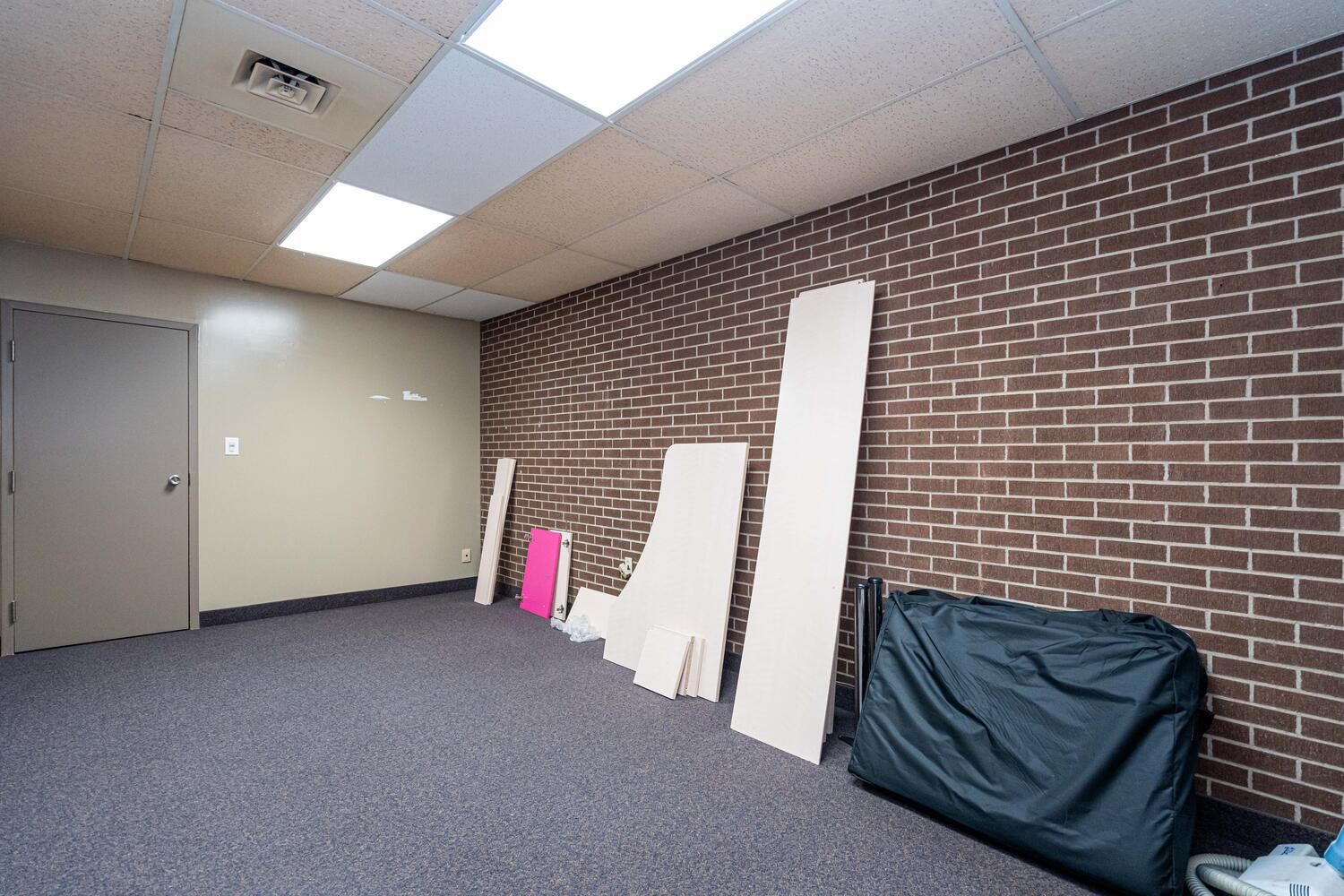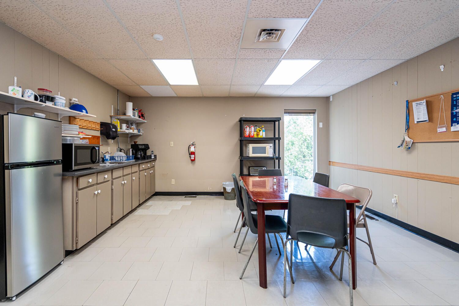 The main floor features a large reception area and lobby, a variety of private and general offices, a board room and 4 washrooms. There is a front and rear entrance. Floors : terrazzo, ceramic tile, carpet walls: painted gyproc ceilings: suspended ceiling tile trim: painted metal. The basement features two large open general office areas, a rear general office, lunch room with a kitchenette and mechanical rooms. Asphalt paved front and rear driveways. Asphalt paved front and rear parking lots. Exterior lighting, landscaped yards, including mature trees total land area is 0. 83 acres.