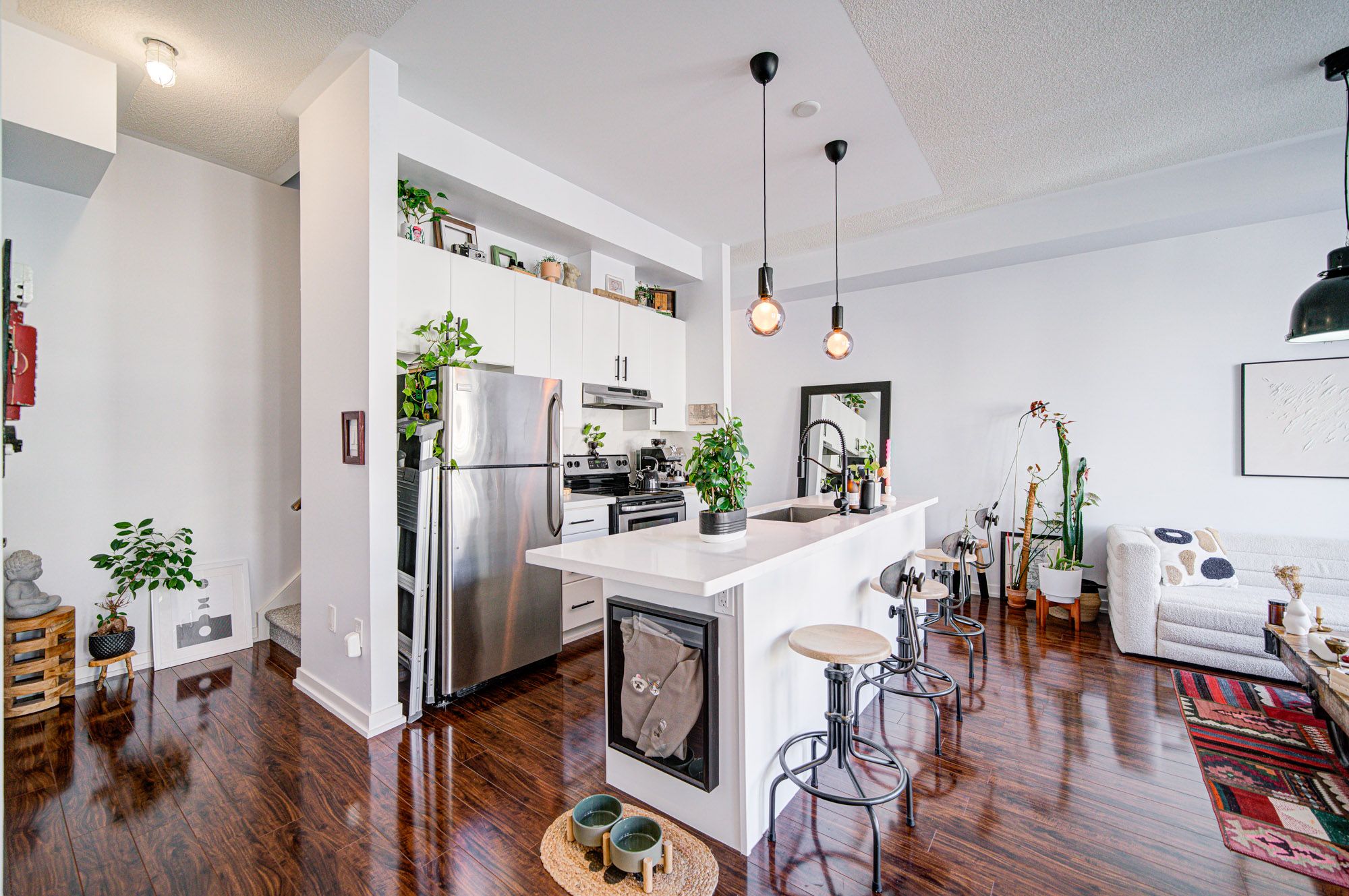 • Upgraded townhome with a bright open-concept layout and modern kitchen.