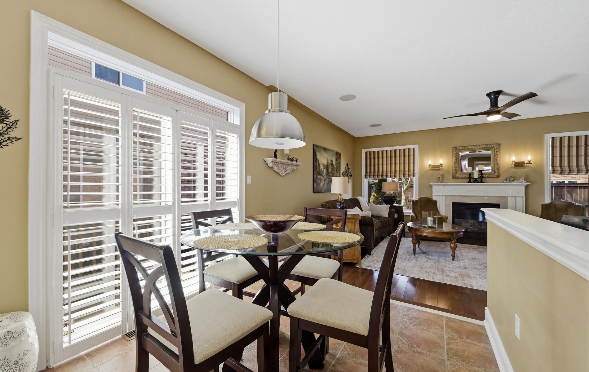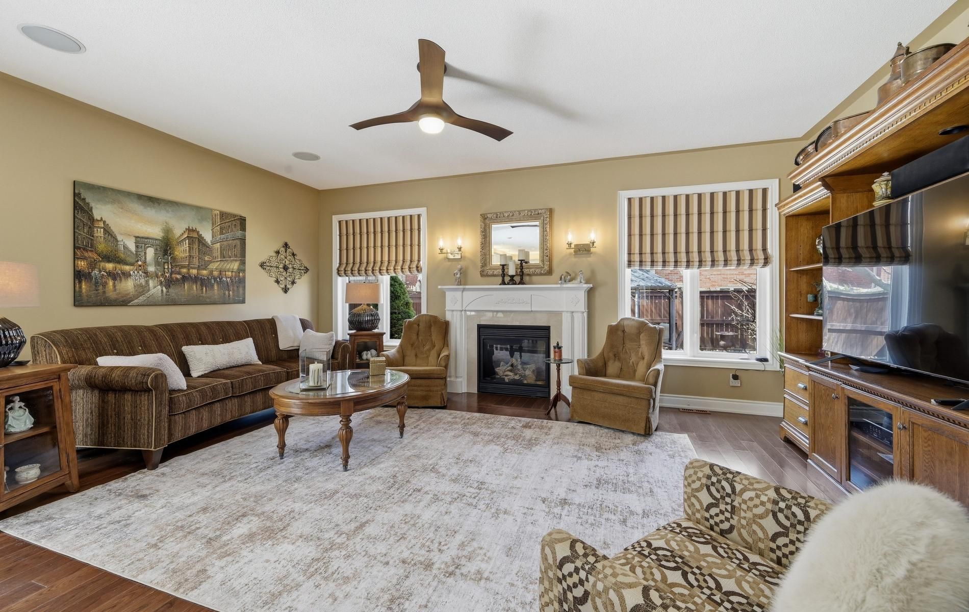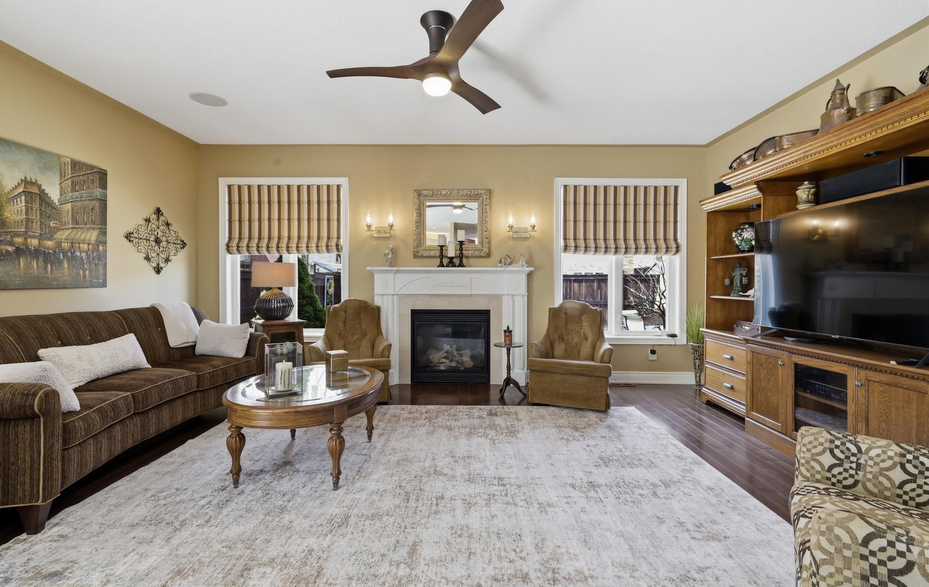 • Spacious living room with a cozy gas fireplace for relaxation.