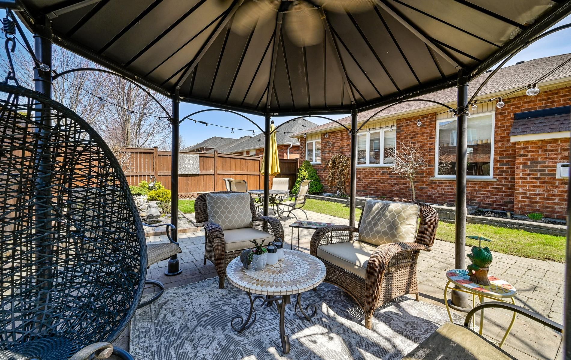 • Beautiful landscaping with a gazebo and pond for outdoor enjoyment.