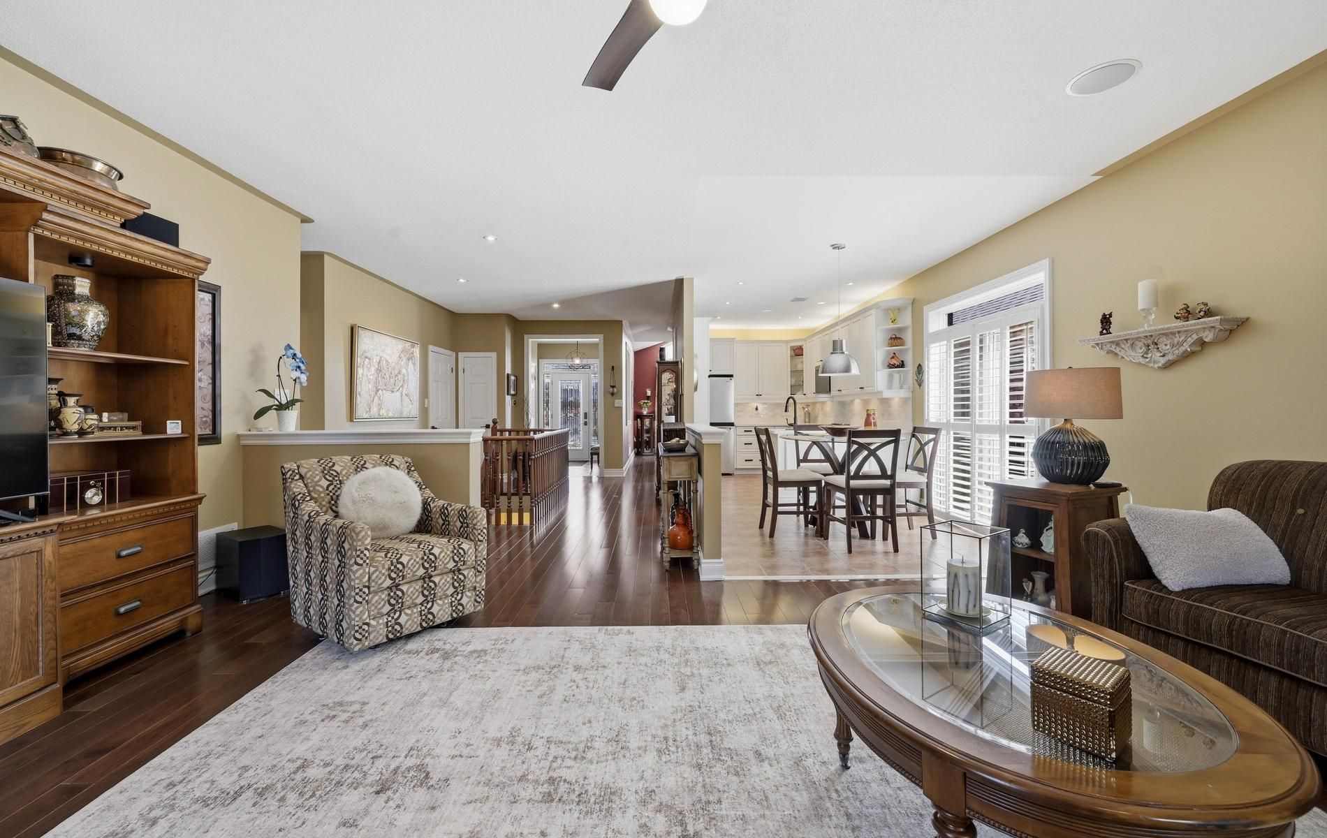 Lovely two plus one bedroom bungalow on quiet street. Tastefully decorated throughout. Large living room with gas fireplace, updated kitchen with high end appliances, large formal dining room has vaulted ceiling. Primary bedroom has five piece ensuite and walk-in closet. Main floor laundry with entrance to full double car garage. Double driveway, no sidewalk. Finished lower level has large family room, bedroom, office and storage. Three piece washroom. Lovely landscaping with gazebo and pond. Newer insulated garage door, phantom screen on front door. Original owners, smoke and pet free home.