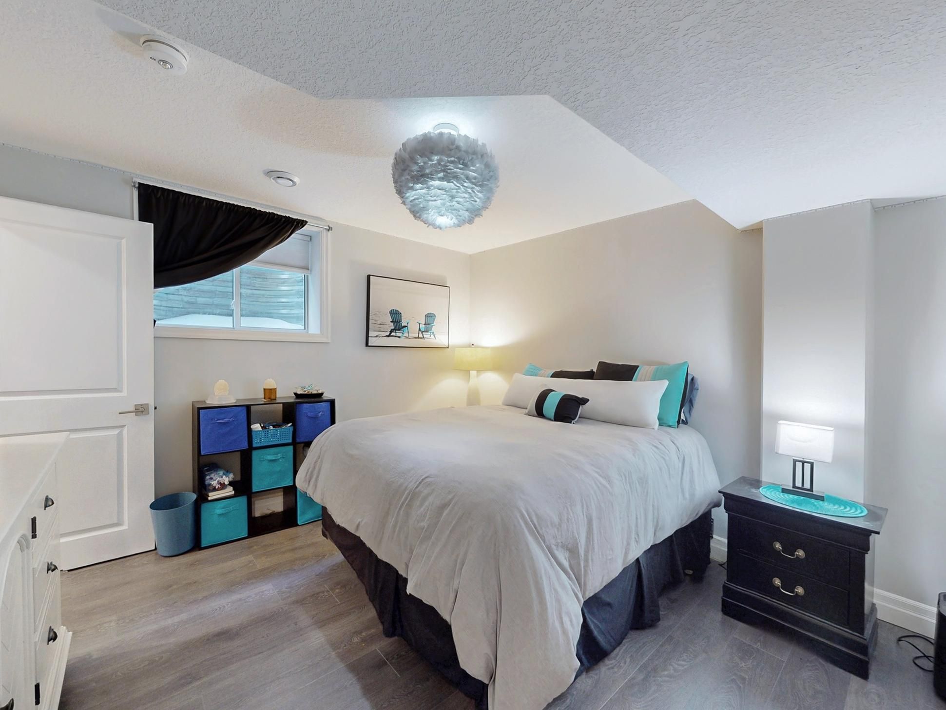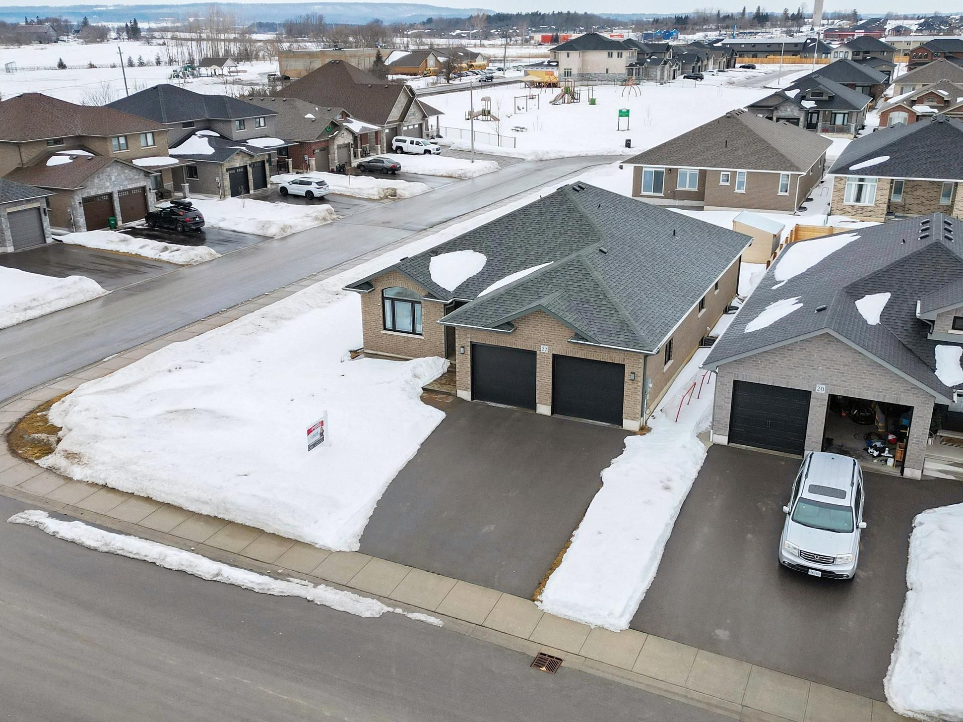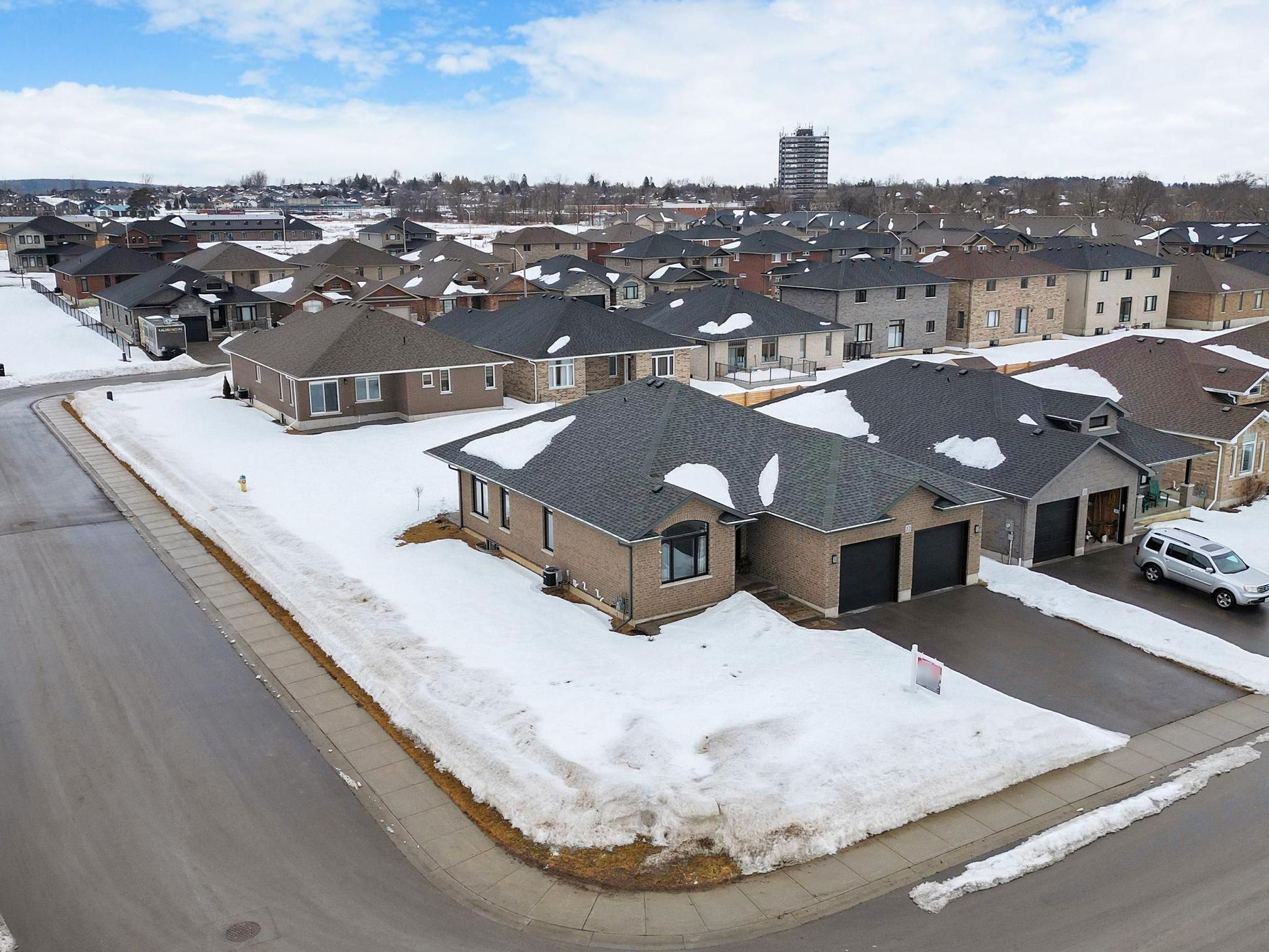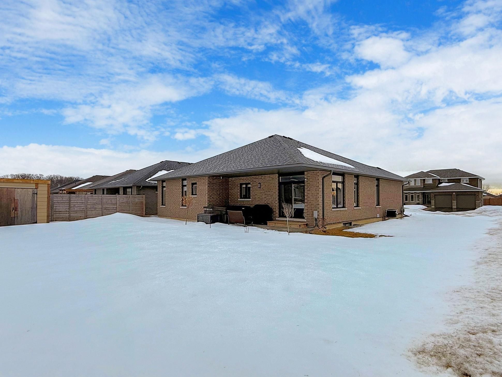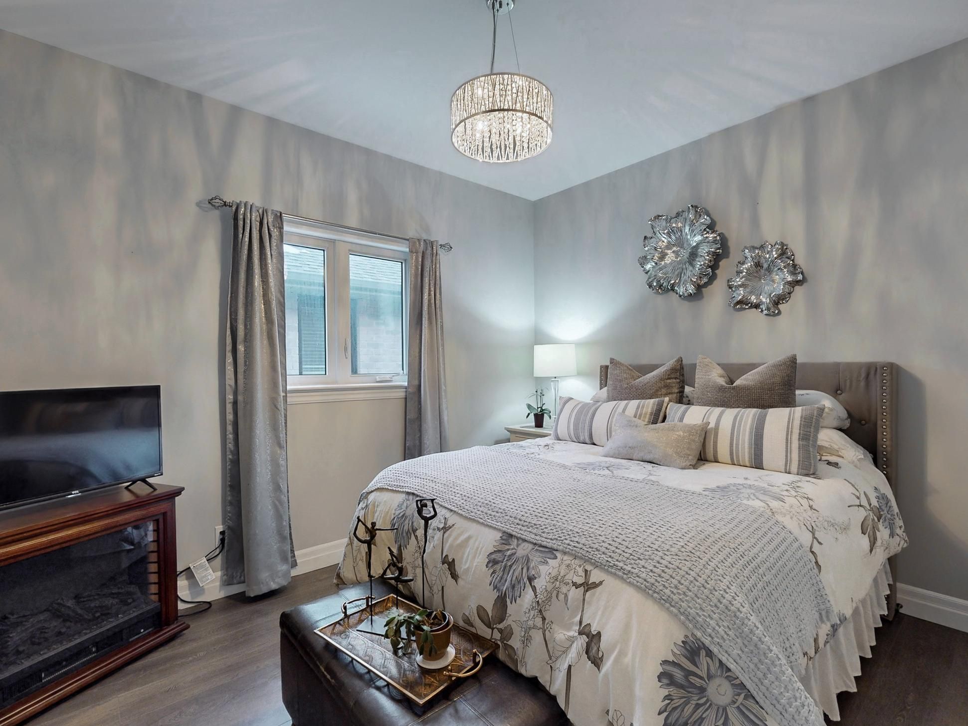 Built by staikos homes (2020), this exceptional bungalow offers over 3,000 sq ft of professionally finished living space on a premium corner lot in desirable appledene park estates. Featuring five spacious bedrooms, this home is ideal for families seeking both function and style. The main level showcases a stunning kitchen complete with stainless steel appliances, quartz countertops, tile backsplash, and a convenient pot filler - all designed with a luxury feel and high-end finishes throughout. The fully finished lower level is built for entertaining and everyday living, offering a custom bar, expansive recreation area, dedicated exercise room, and abundant storage space. Step outside to enjoy the large yard with a stamped concrete patio and new hot tub - perfect for relaxing or hosting. Located just steps from the park and very lightly lived in, this home shows beautifully and offers turnkey comfort in a sought-after community.