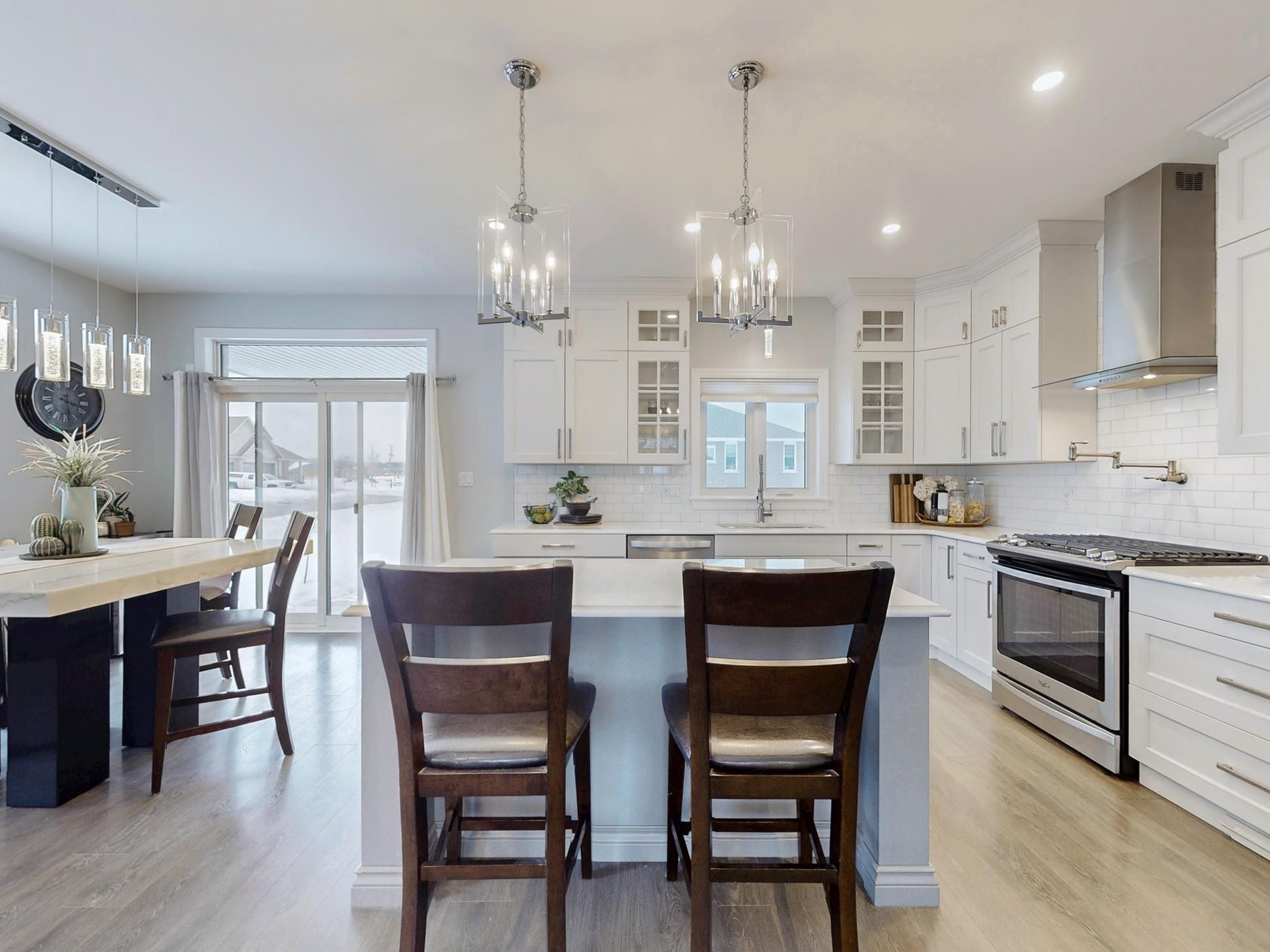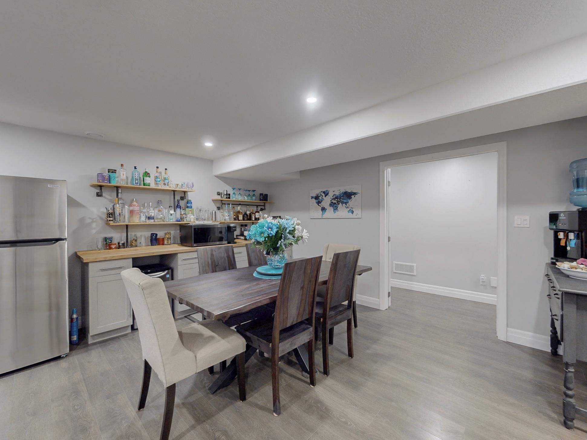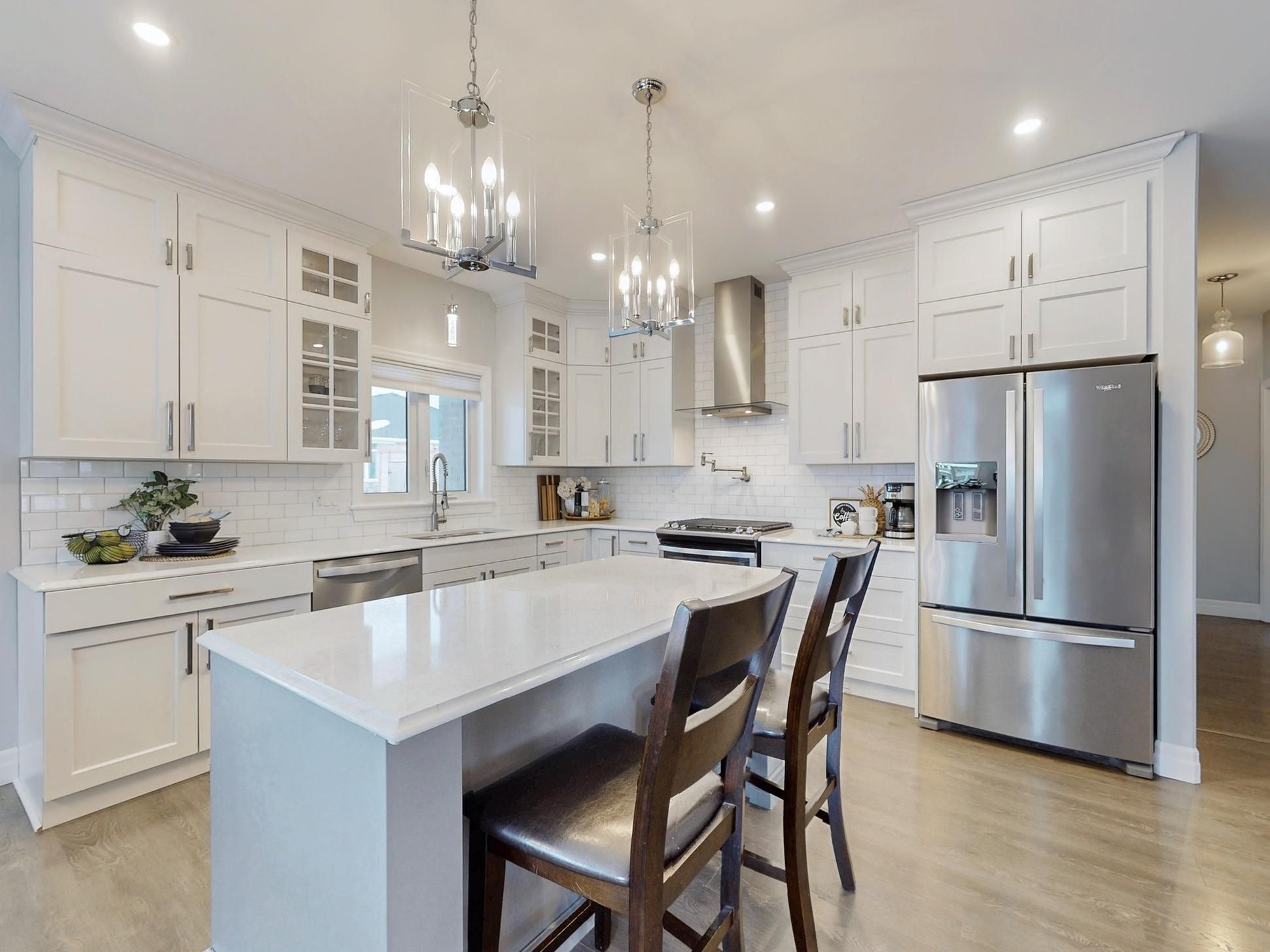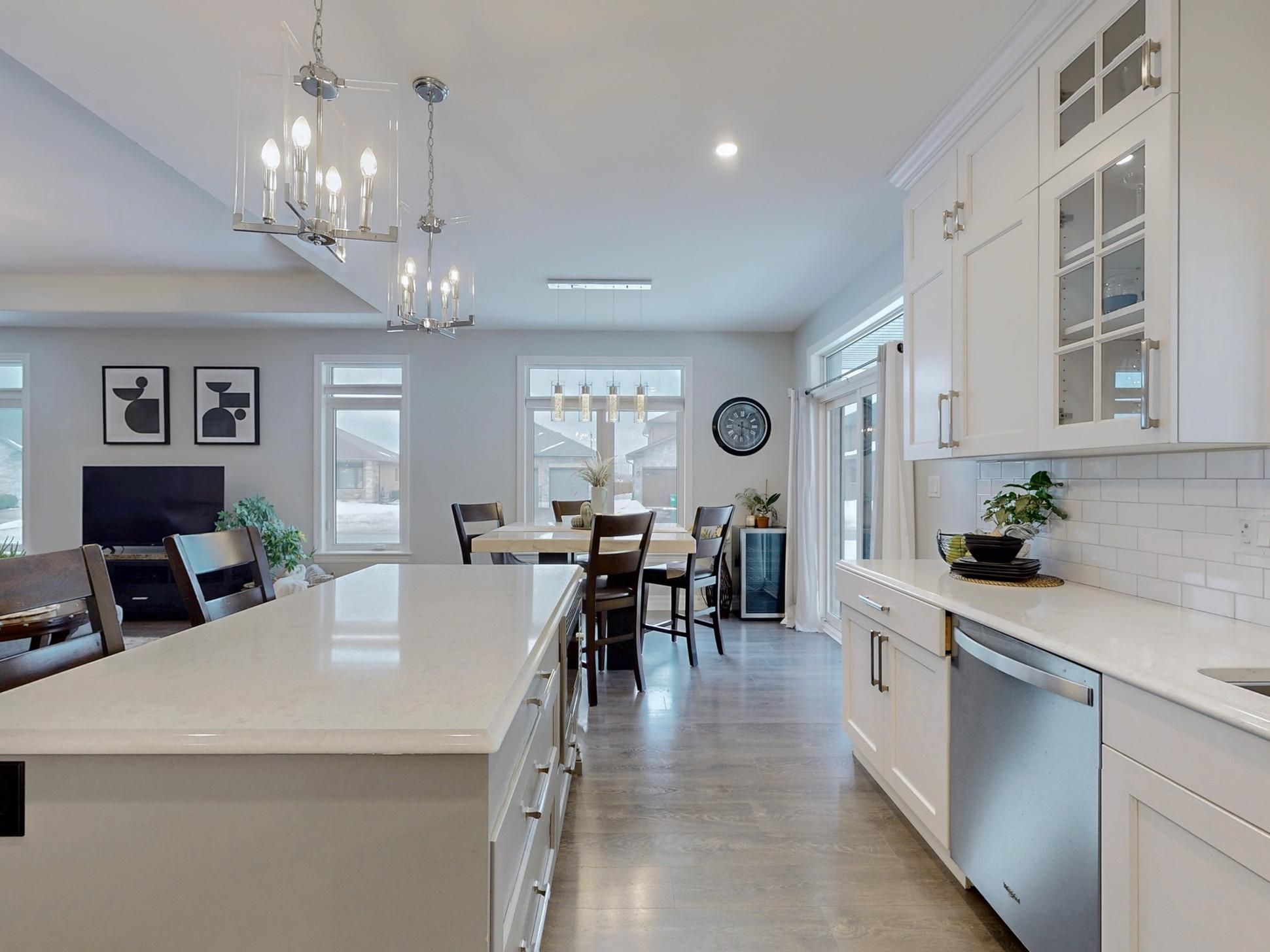 Built by staikos homes (2020), this exceptional bungalow offers over 3,000 sq ft of professionally finished living space on a premium corner lot in desirable appledene park estates. Featuring five spacious bedrooms, this home is ideal for families seeking both function and style. The main level showcases a stunning kitchen complete with stainless steel appliances, quartz countertops, tile backsplash, and a convenient pot filler - all designed with a luxury feel and high-end finishes throughout. The fully finished lower level is built for entertaining and everyday living, offering a custom bar, expansive recreation area, dedicated exercise room, and abundant storage space. Step outside to enjoy the large yard with a stamped concrete patio and new hot tub - perfect for relaxing or hosting. Located just steps from the park and very lightly lived in, this home shows beautifully and offers turnkey comfort in a sought-after community.