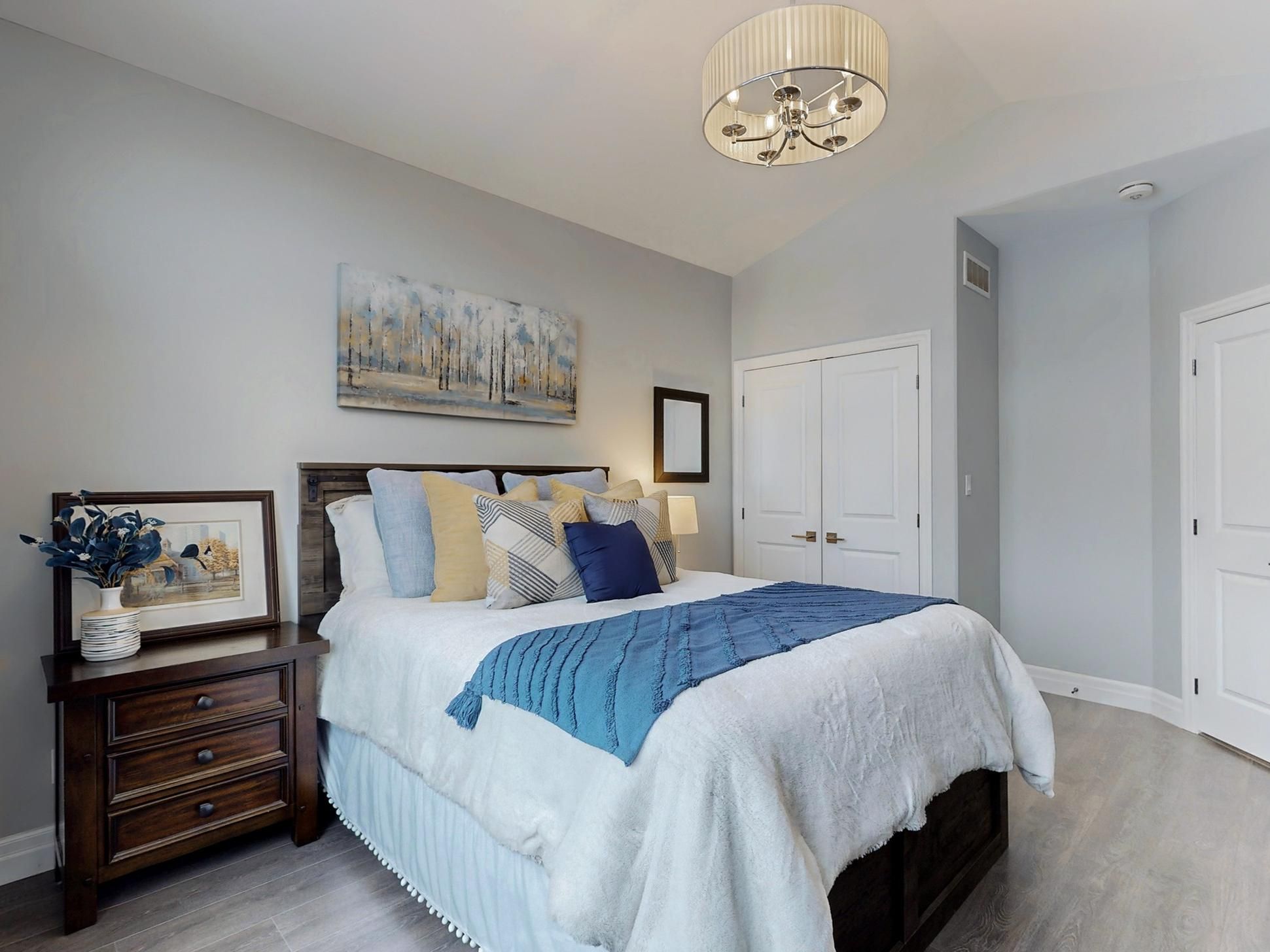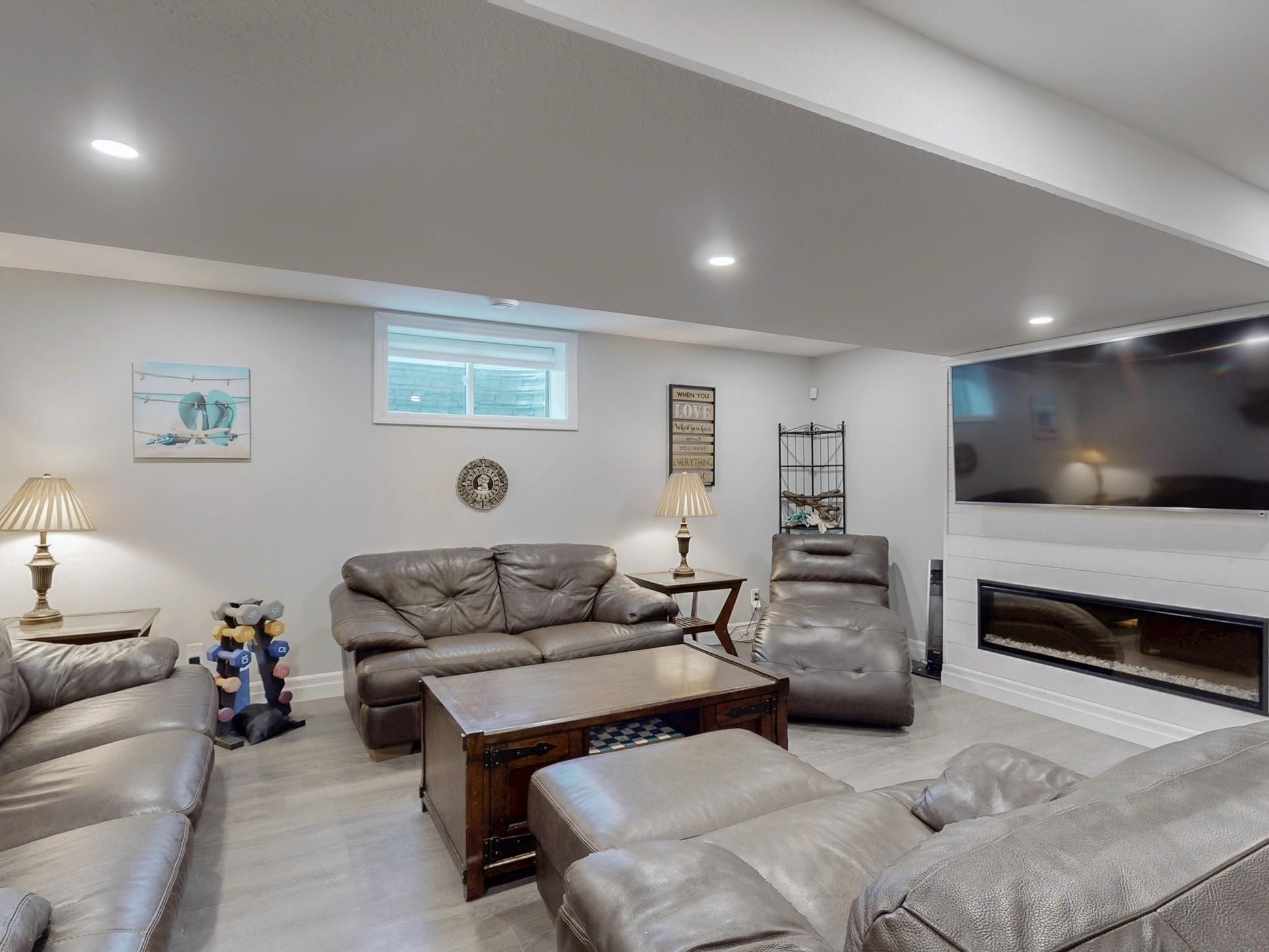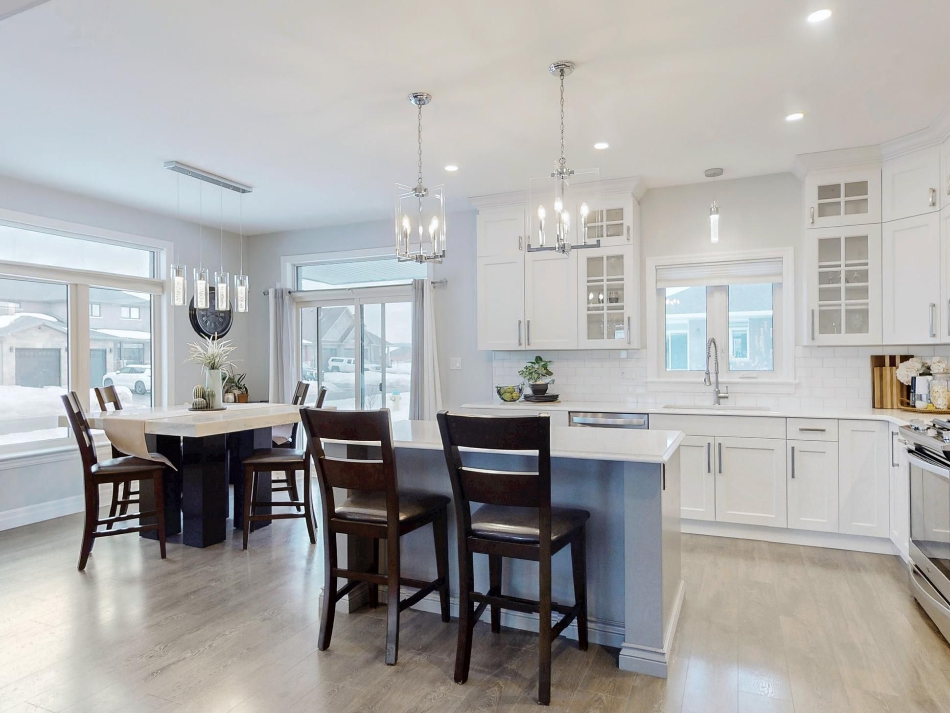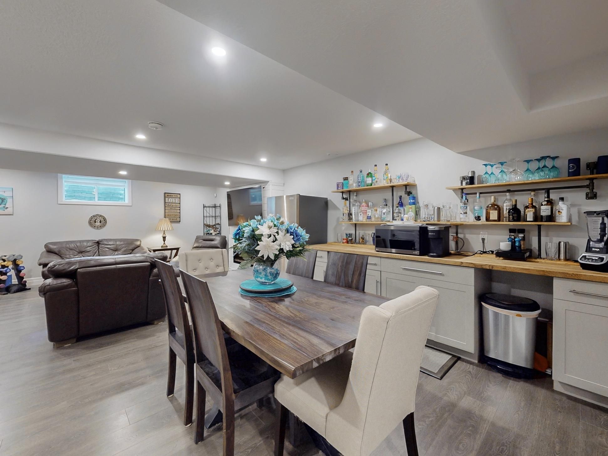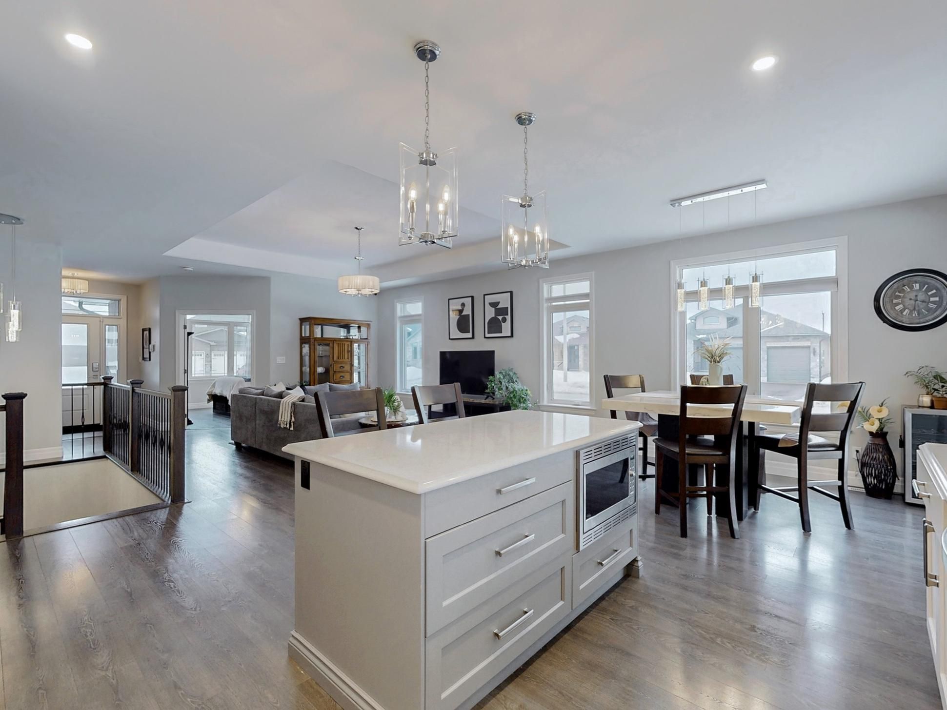 Built by staikos homes (2020), this exceptional bungalow offers over 3,000 sq ft of professionally finished living space on a premium corner lot in desirable appledene park estates. Featuring five spacious bedrooms, this home is ideal for families seeking both function and style. The main level showcases a stunning kitchen complete with stainless steel appliances, quartz countertops, tile backsplash, and a convenient pot filler - all designed with a luxury feel and high-end finishes throughout. The fully finished lower level is built for entertaining and everyday living, offering a custom bar, expansive recreation area, dedicated exercise room, and abundant storage space. Step outside to enjoy the large yard with a stamped concrete patio and new hot tub - perfect for relaxing or hosting. Located just steps from the park and very lightly lived in, this home shows beautifully and offers turnkey comfort in a sought-after community.
