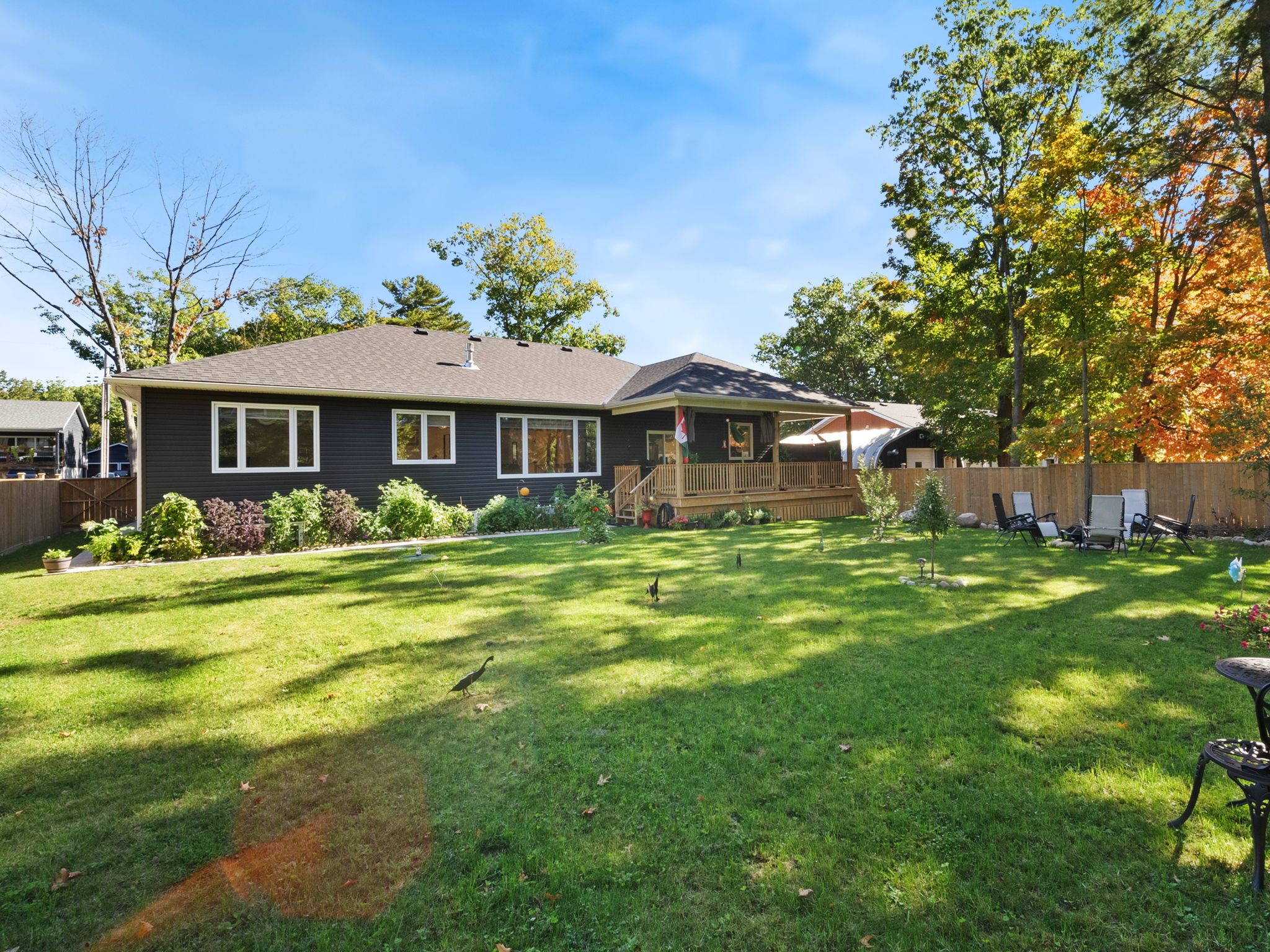 Welcome to this stunning, sprawling bungalow nestled in the heart of tiny township, where serenity meets lifestyle. Offering 1,971sqft of main floor living, this home is perfect for those seeking the ease and comfort of single floor living with minimal stairs, making it an ideal fit for downsizers and those looking to simplify without sacrificing space. Yet with room to spare, it equally suits a growing or large family looking for room to breathe. The open-concept kitchen, dining, and living area is filled with an abundance of natural light and flows seamlessly through sliding doors to a very generously sized covered porch, perfect for morning coffee or evening entertaining. The kitchen is a true showpiece, featuring stunning countertops, a beautiful backsplash, and a walk-in pantry that makes both everyday living and entertaining a pleasure. The main floor features 3 bedrooms and 2. 5 bathrooms, including a primary retreat complete with a walk-in closet and luxurious 5-piece ensuite. Main floor laundry and an attached 2-car garage keep everyday living effortless through every season. Step outside to a fully fenced yard, ideal for kids, pets, and privacy. The fully finished basement of approximately 1,460sqft expands your options beautifully. A massive rec room and family room anchors the space, alongside a flex room ideal for a home office or home gym, a 3-piece bathroom, and an additional prep and entertaining area that makes hosting large gatherings a breeze. All of this is set in the coveted tiny township lifestyle, steps to walking trails, sandy beaches, and the sparkling shores of georgian bay. Whether you are a downsizer, a growing family, or simply someone who appreciates the good life, this one delivers.