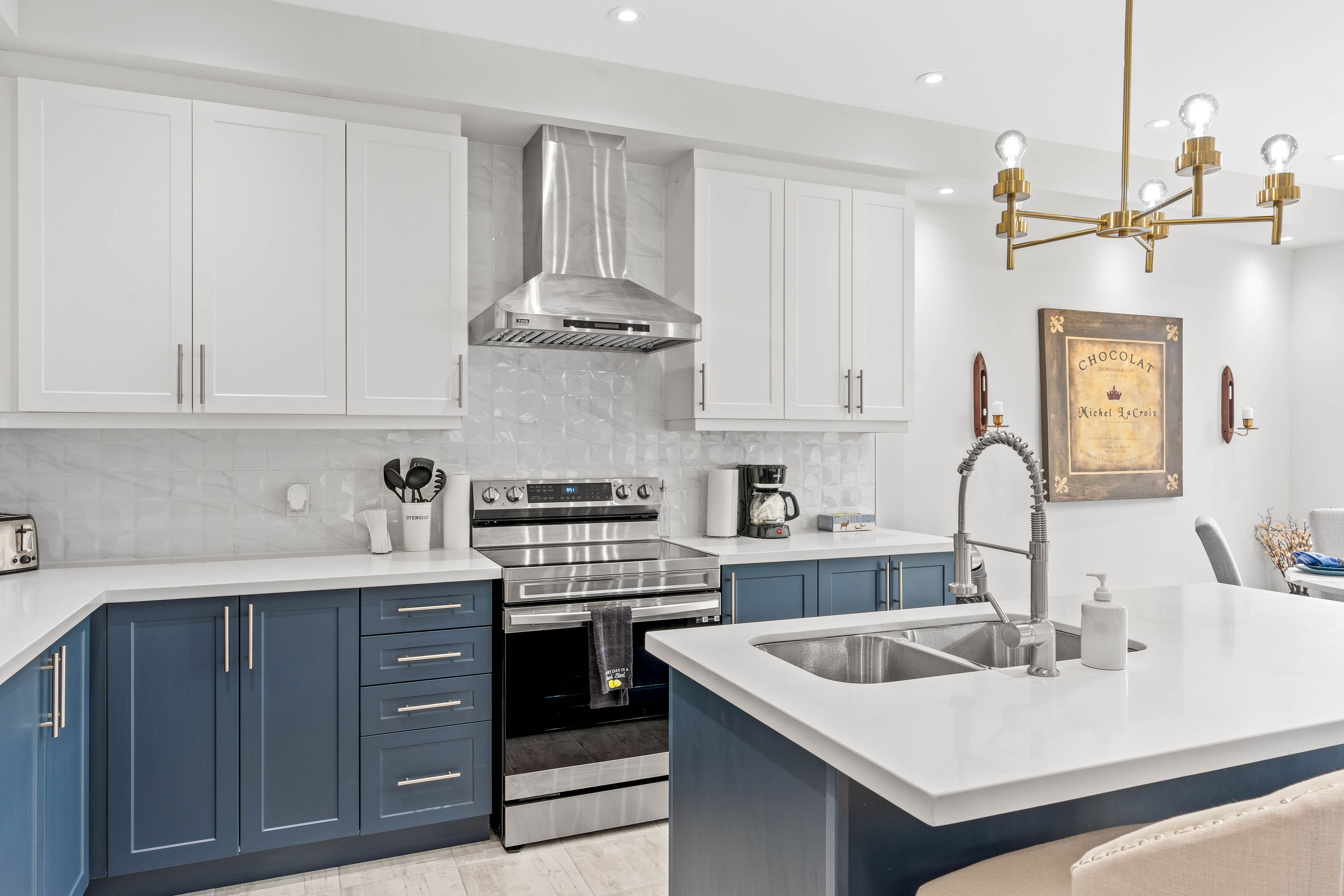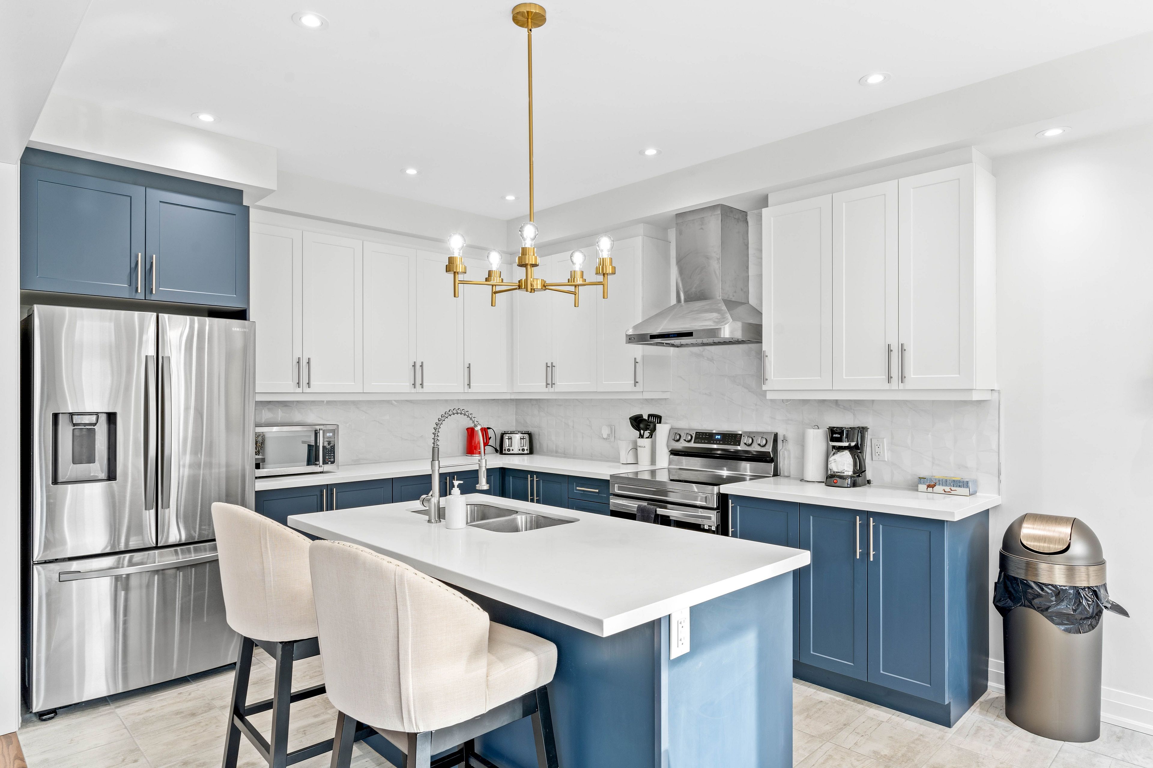• Upgraded kitchen featuring stainless steel appliances and breakfast seating.