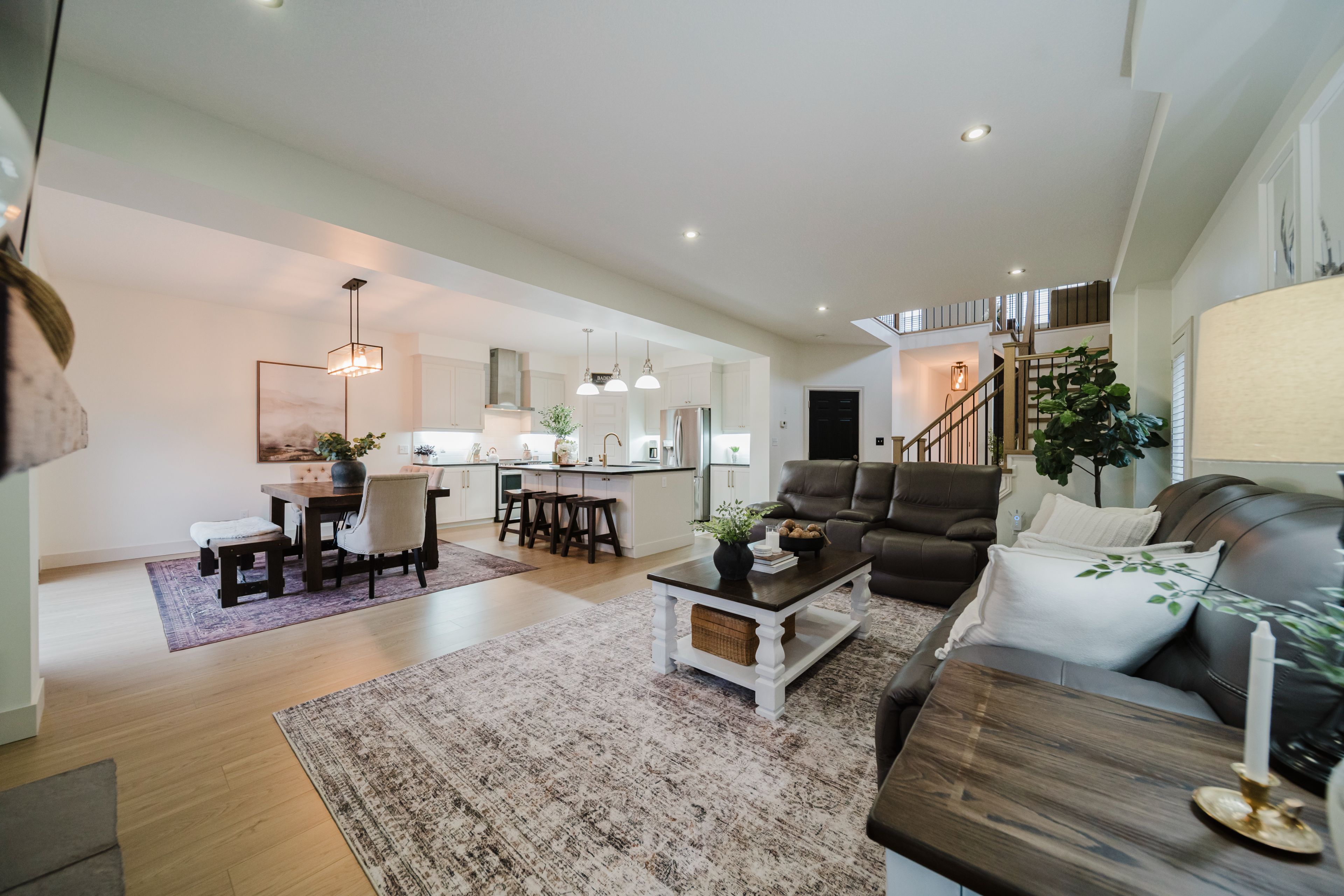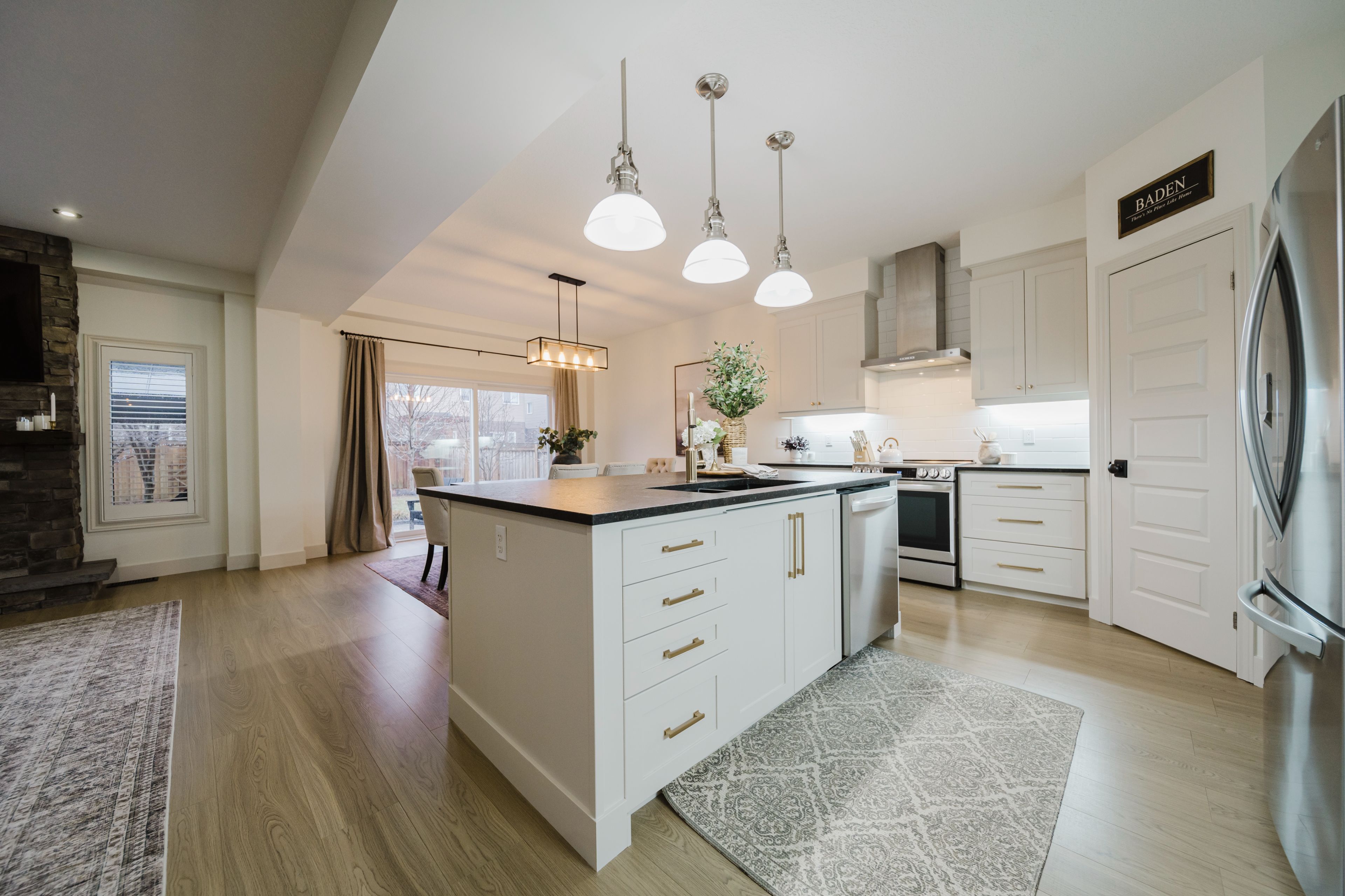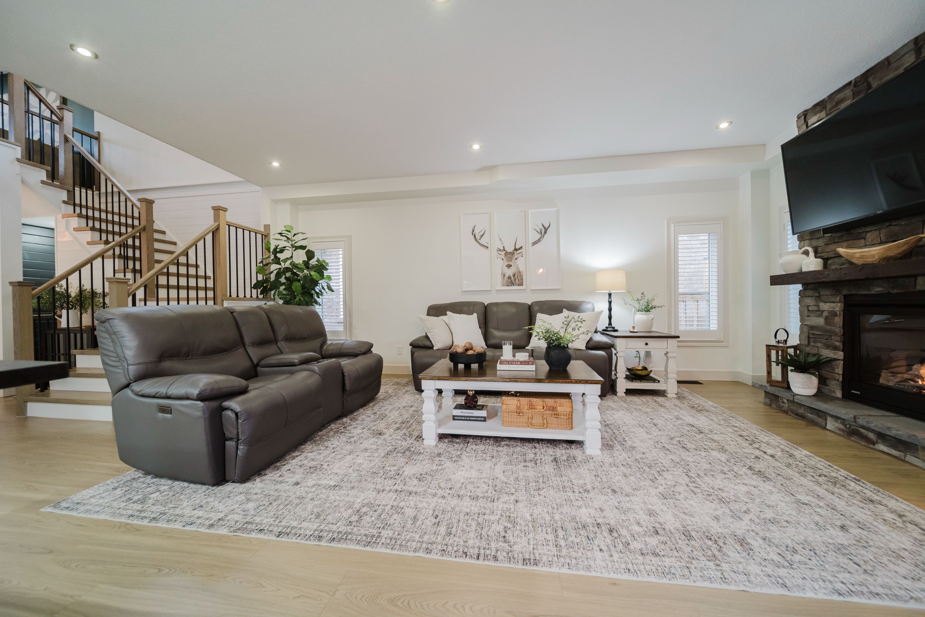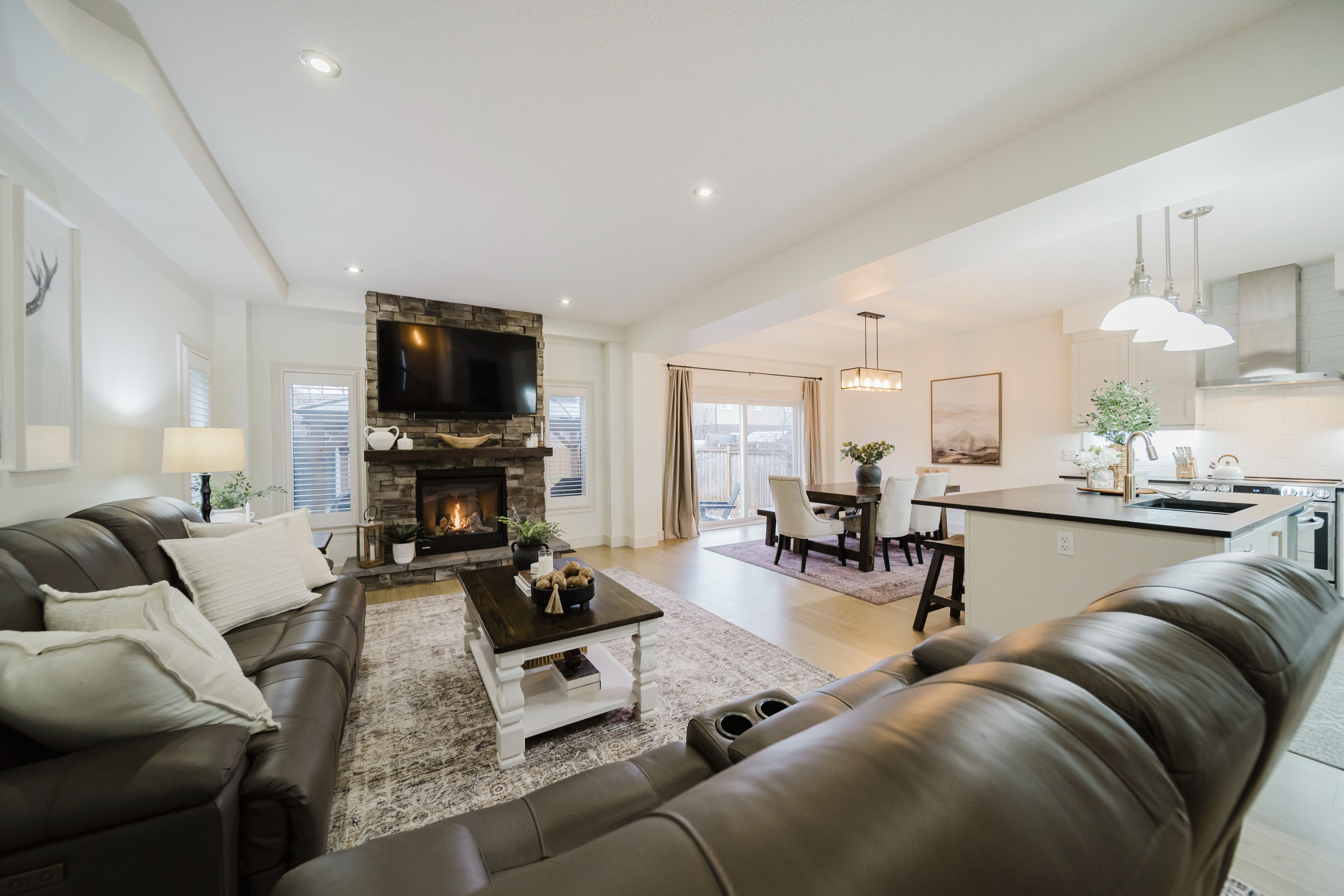 Step into this stunning, designer-inspired home where exceptional craftsmanship and thoughtful design come together to create a warm and inviting aesthetic. From the moment you enter, you'll be captivated by the unparalleled finishes and cohesive style throughout. The living room is anchored by a striking stone gas fireplace, offering both comfort and a beautiful focal point for everyday living and entertaining. The fully renovated kitchen is equally impressive, featuring an oversized island and a custom walk-in pantry-perfect for both functionality and style. A true standout feature of the home is the modern railing, a showstopping architectural element that can be admired from multiple vantage points, adding to the home's open and airy feel. Sleek, contemporary flooring flows seamlessly throughout the entire home, offering a completely carpet-free living experience. With 2,260 sq ft of well-designed living space, this home offers 3 spacious bedrooms with the potential for a 4th (via a converted upper-level living area), 3 bathrooms, and the convenience of second-floor laundry. Two separate living areas provide flexibility for families of all sizes, while california shutters throughout add both elegance and privacy. The unfinished basement is already fully studded and insulated, complete with oversized windows and a bathroom rough-in-offering endless potential to customize and expand your living space. Set on a 40' frontage lot, the exterior is equally impressive, featuring an oversized rear sliding door, a widened driveway with parking for four vehicles, and a 2-car garage with soaring 12' ceilings. Located in a quiet, family-friendly neighbourhood, this home offers the perfect balance of peaceful small-town living with convenient access to nearby city amenities. This home is truly a work of art-one that must be experienced in person to fully appreciate its design, quality, and attention to detail.